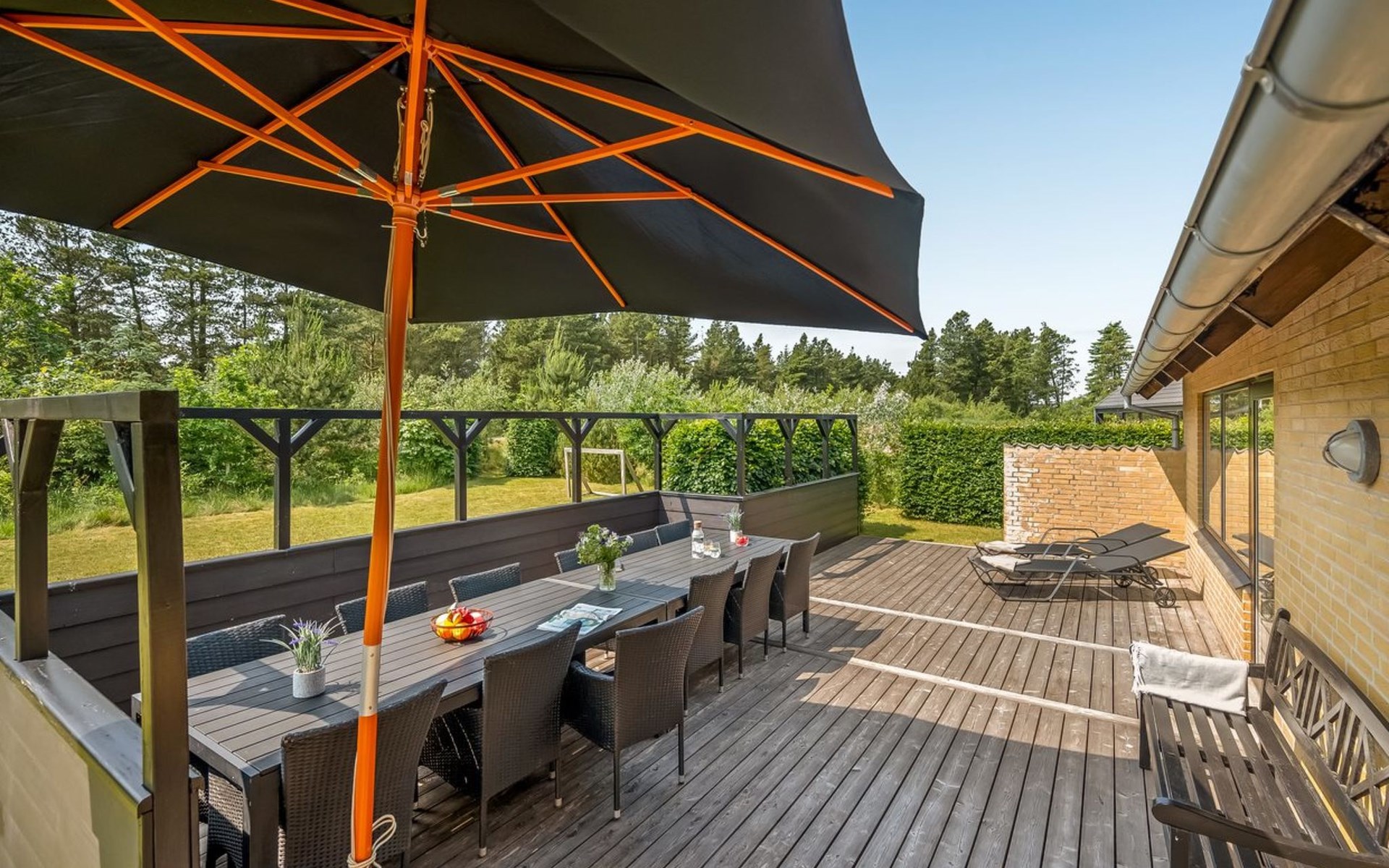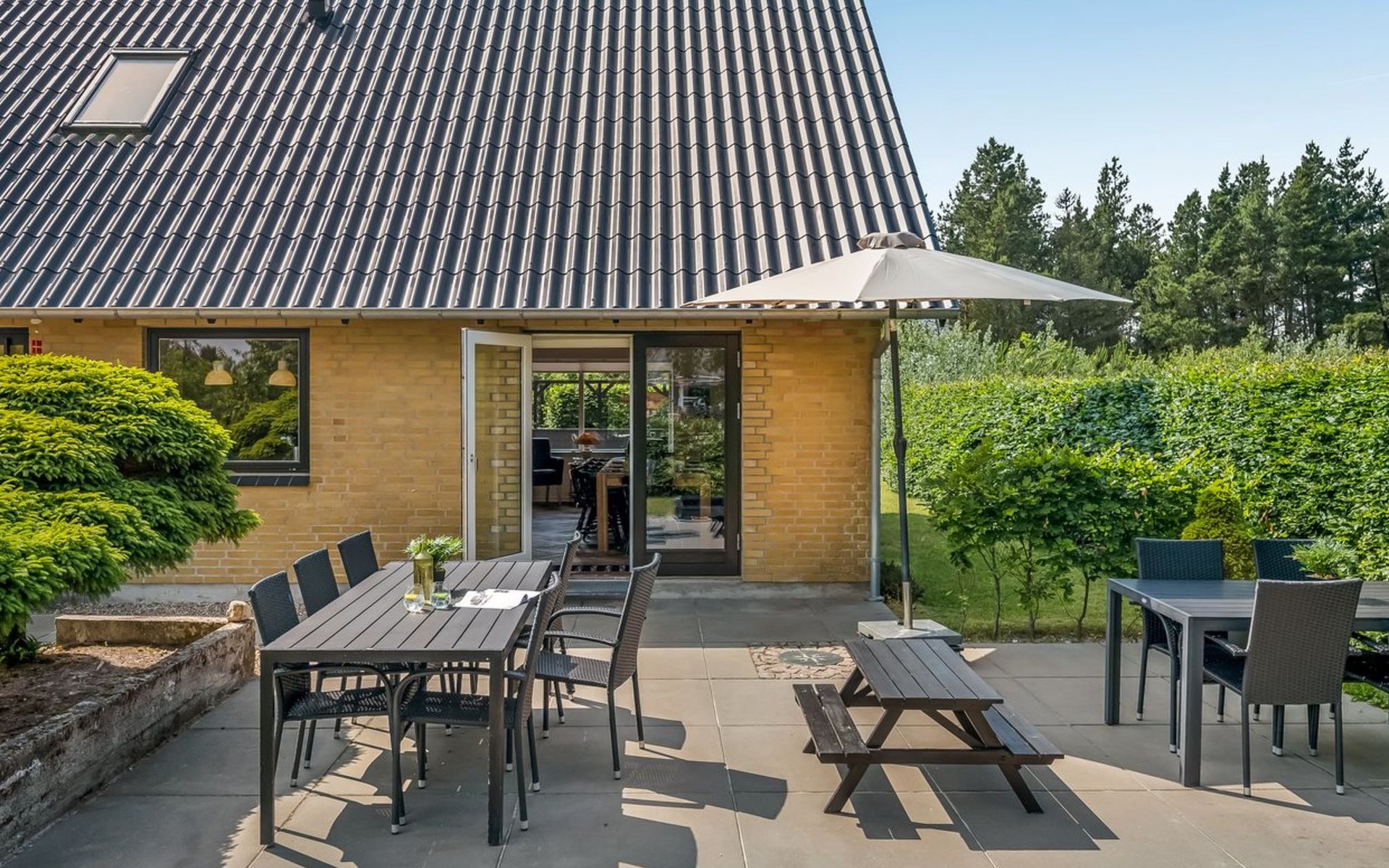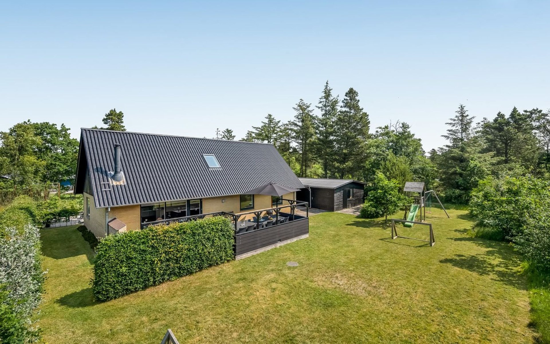Single-family house, built in 1974. 2.5 km from the sea. Private: natural state property 1'500 m2. Terrace (40 m2). In the house: washing machine, tumble dryer. Parking at the house. E-charging station. Grocery 2 km. Golf course 1.5 km. The owner does not accept any youth groups.