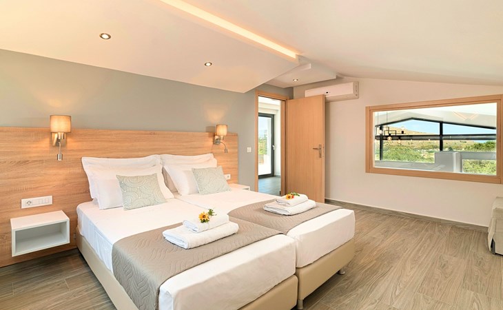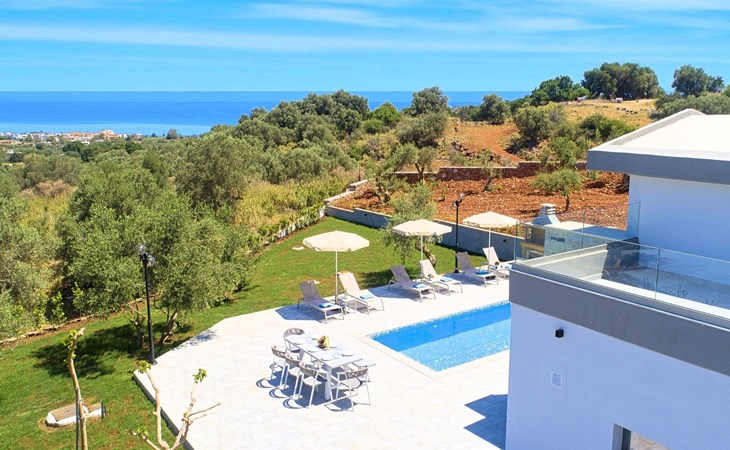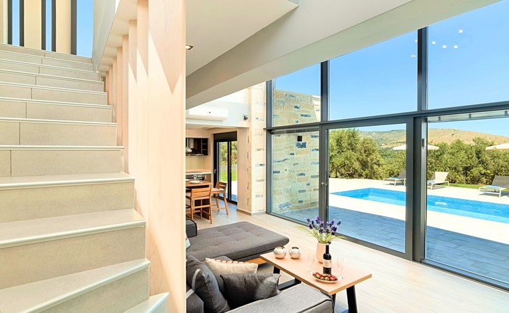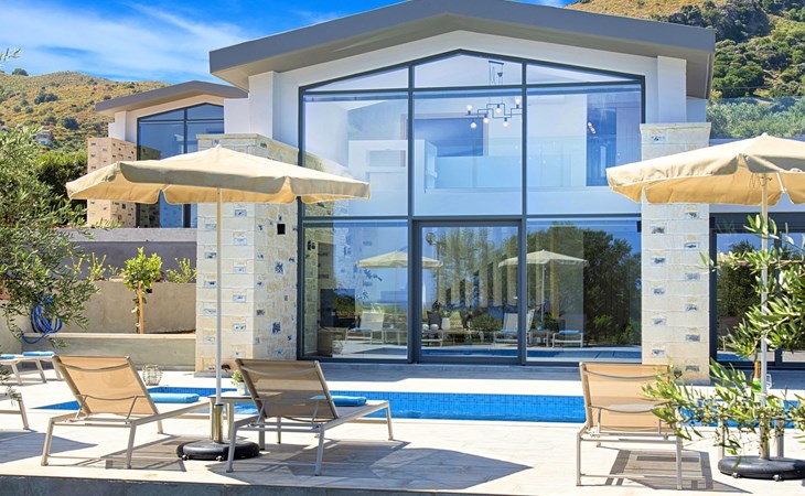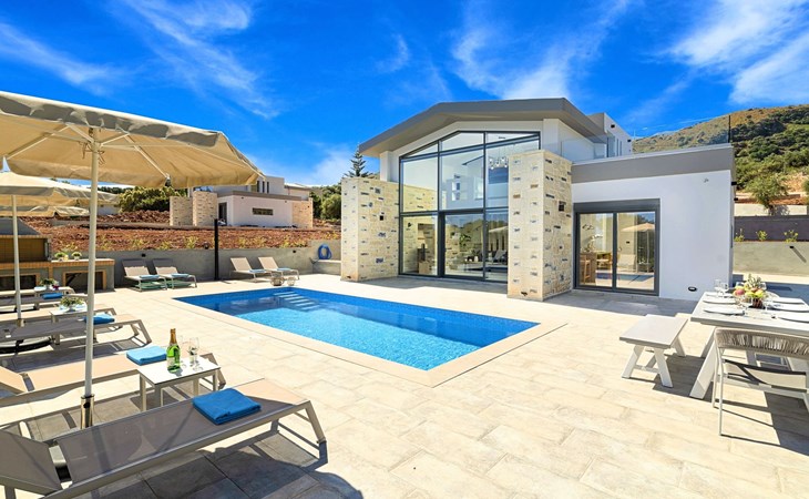 Each of the three villas offers:Facilities:Ground floor● A spacious living room with direct access to the terraces and the pool area.● Kitchen with an oven, a dishwasher, a fridge, a coffee maker, tea facilities, a juicer, a toaster, a dish set and a deep freezer● Dining area for 6 persons● A bedroom with a Queen size double bed, air-condition● Bathroom with shower● Terrace with outdoor seating / dining area and unlimited views● Smart TV at the Living Room● Spacious Garden with outdoor furnitures and sunbeds● Large swimming poolA staircase leads to theUpper floor - Loft● A Large Loft bedroom with two single beds (pushed together), air-condition and large terrace.● A large bathroom with shower and a hairdryer.Lower floor● A large living room with three sofa beds, TV set, In a closet washing/dryer machine.● An independent sitting area with two sofa beds● A bedroom with twin push together beds, air-condition with private bathroom with shower.● A second bedroom with a Queen size double bed, a sofa bed, air-condition.● A large bathroom with shower and a hairdryer.● Air-condition in all areas● Free Wi-Fi internet access● Outdoor Dinning Set (table with chairs)● Washing / Dryer machine● An iron and an ironing board● Safe deposit box● Hair dryers● Fine linens and towels● Toiletries● Pool towels● Baby cot (two)● High chair● Towels / bed linen, Cleaning- Every 3 or 4 days● Solar system for hot water● Fire extinguisher● First Aid Box