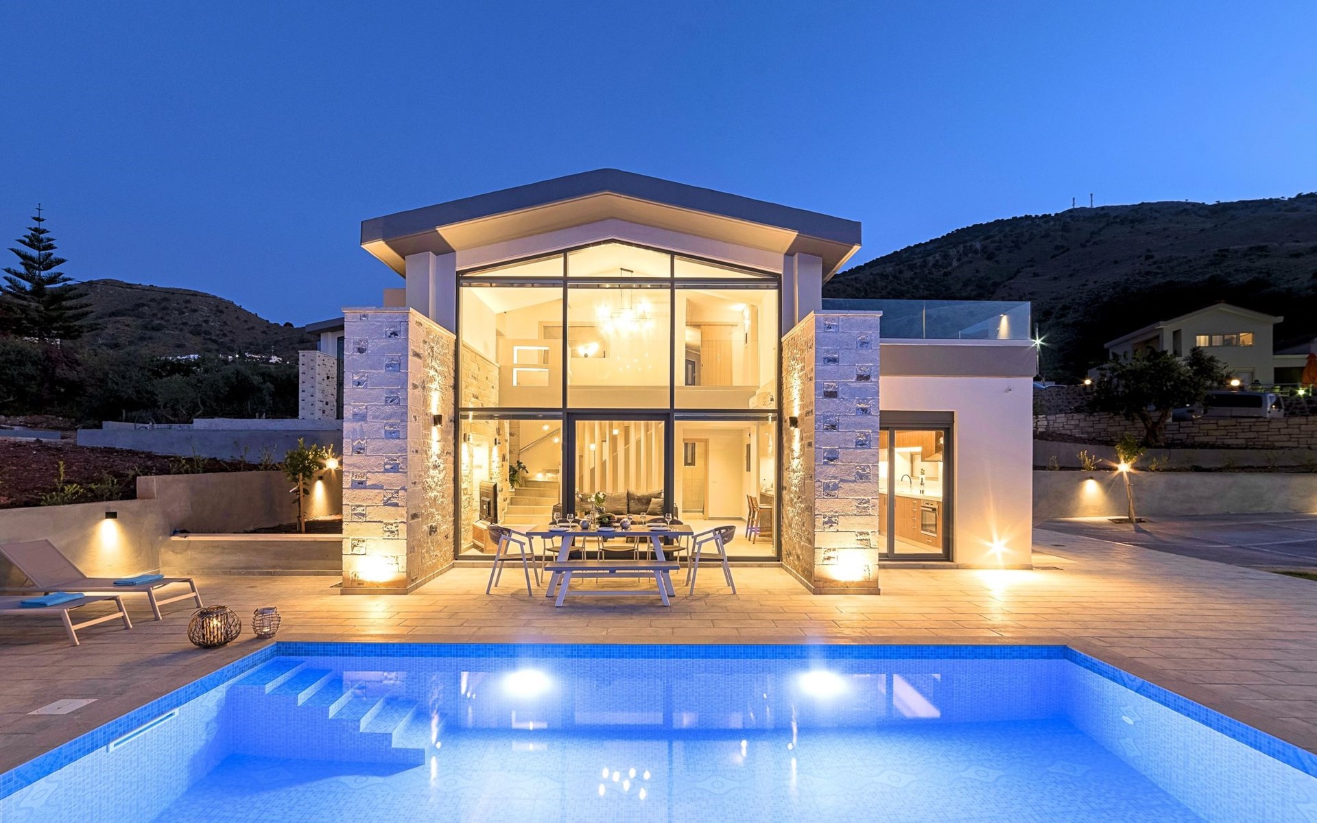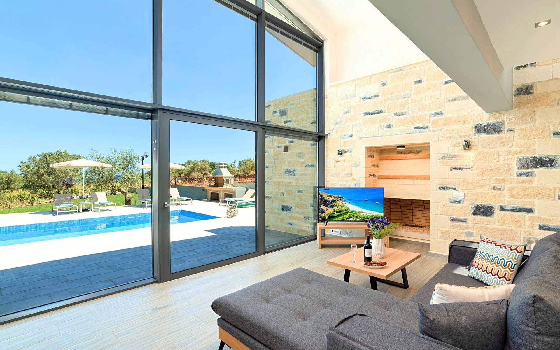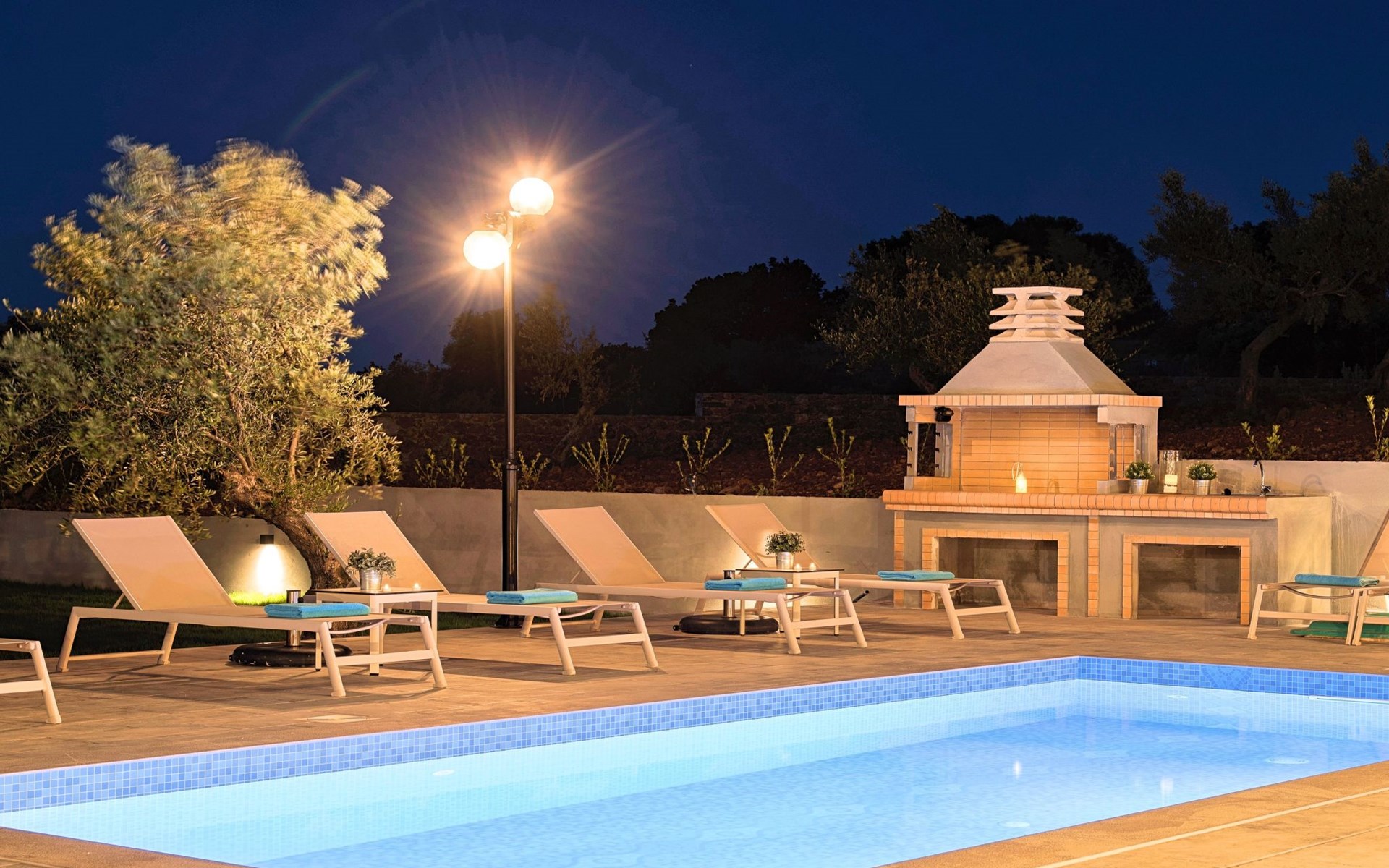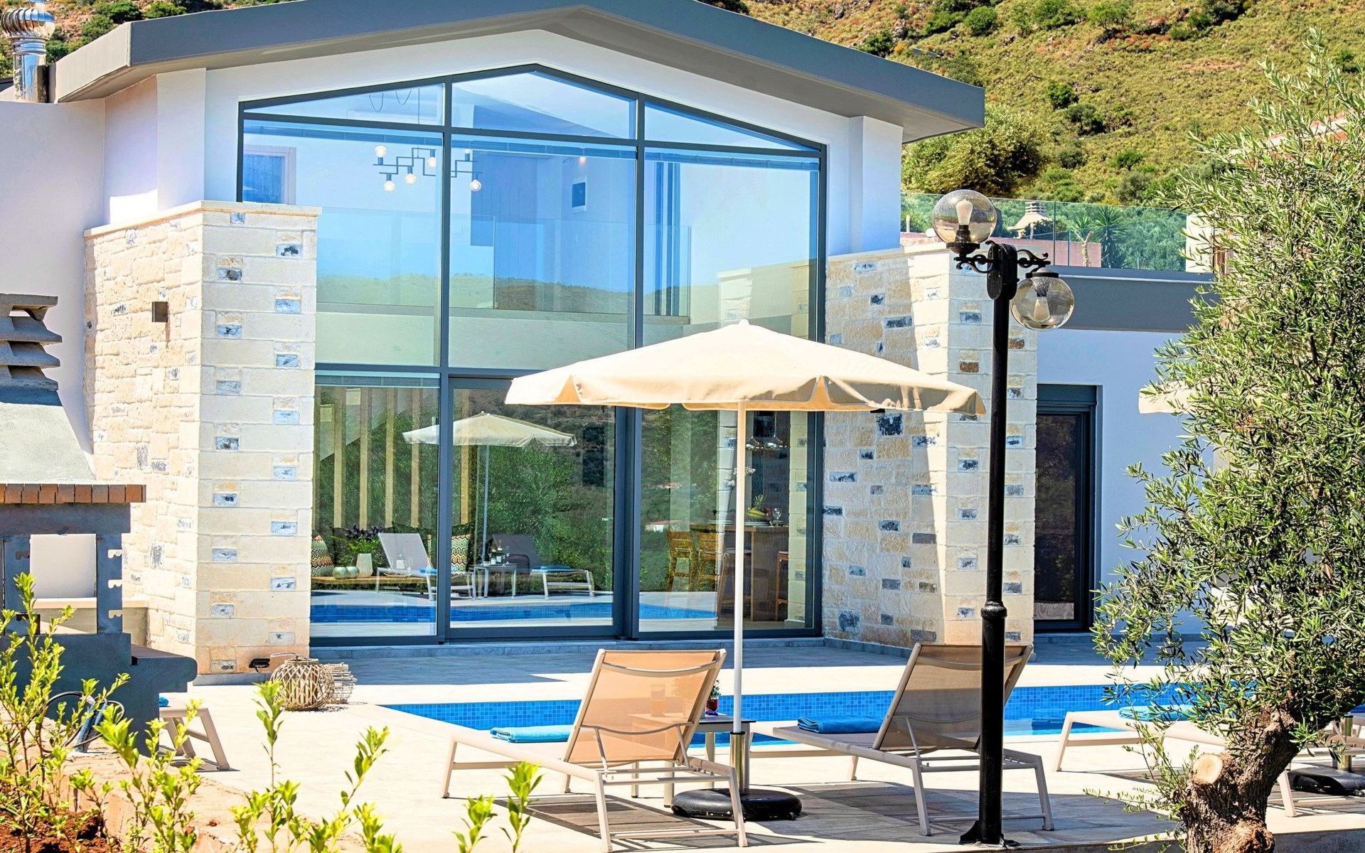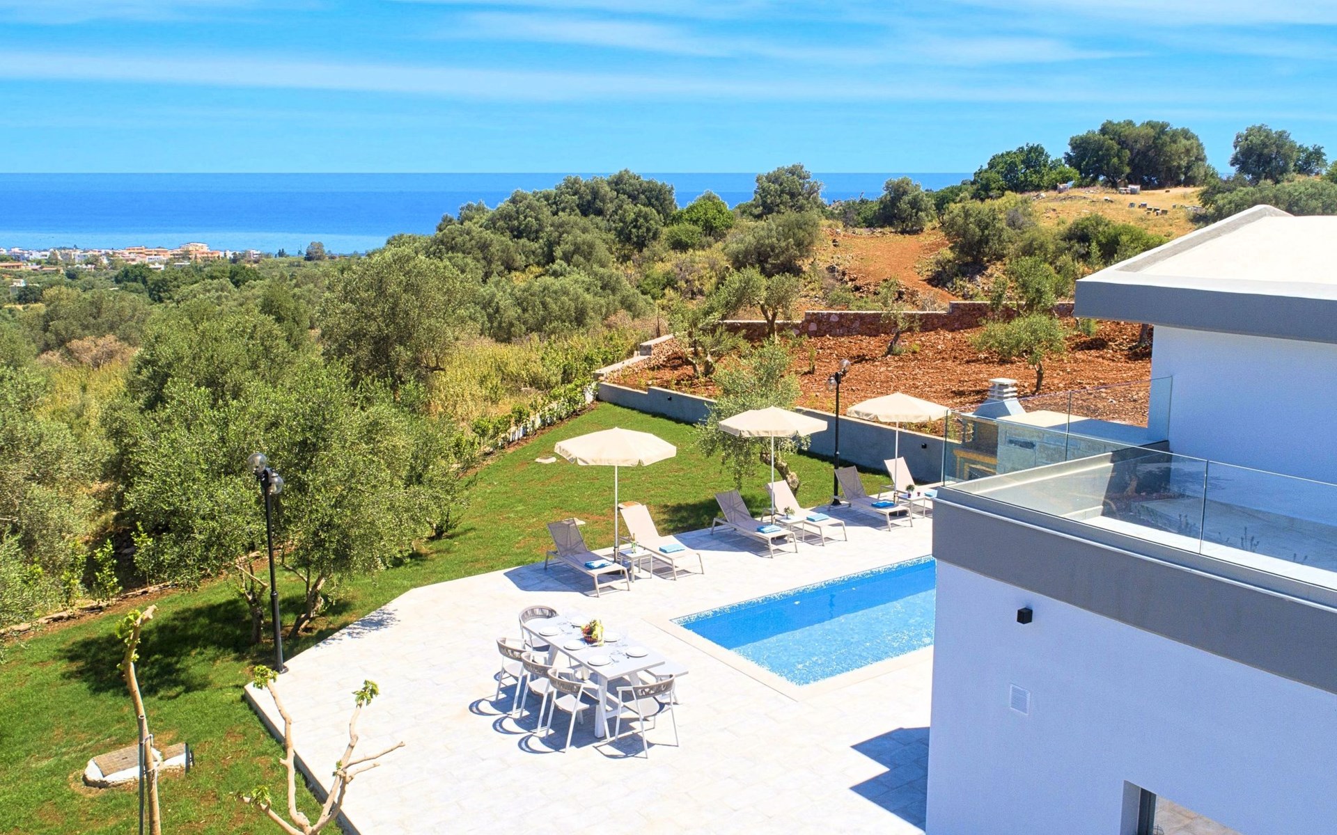 ● Parking area● BBQ with dining area● Private Pool The outdoor pool is heated and can reach 6 to 8 degrees more that the 24 h average air temperature with maximum value of 29°C● Sun lounge area with sun beds