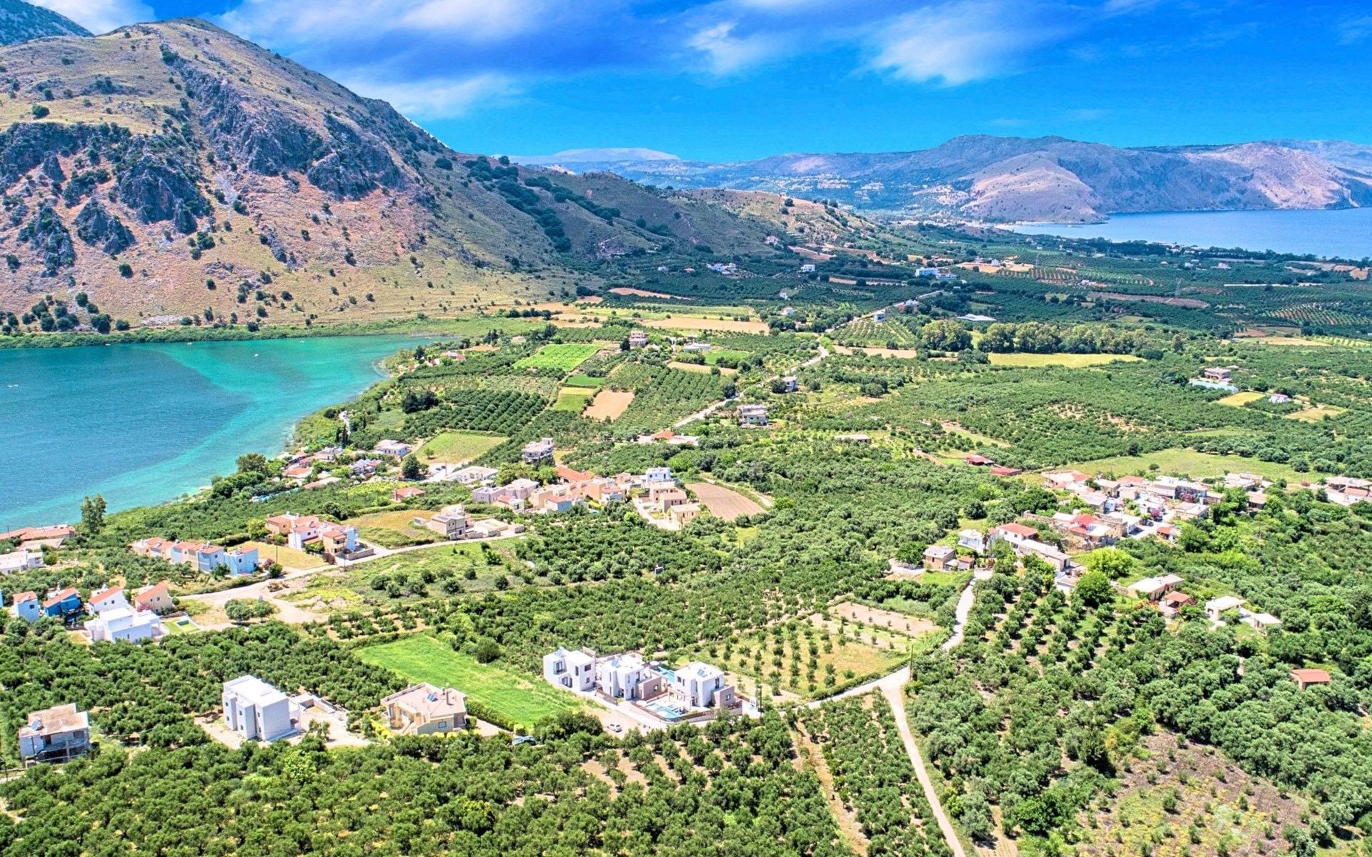 Georgioupolis is a small seaside town in Chania Prefecture, approximately 38 km southeast of Chania, in West Crete.Georgioupolis is set in a green countryside with a large beach stretching about 1.5 km eastwards.Georgioupolis is on the border between Rethymno Prefecture to the east and Chania Prefecture to the west, although it belongs to the latter. The area around Georgioupolis is Apokoronas, with its picturesque villages and verdant landscape.The River Almyros meets the sea at Georgioupolis. Just before the town, it forms a little lake that is home to many birds and animals. The lake is visible from the National Road, as you approach Georgioupolis from Chania.On entering the town you see many eucalyptus trees, both along the road and in the main square, and a row of cypress trees forming a pretty picture.