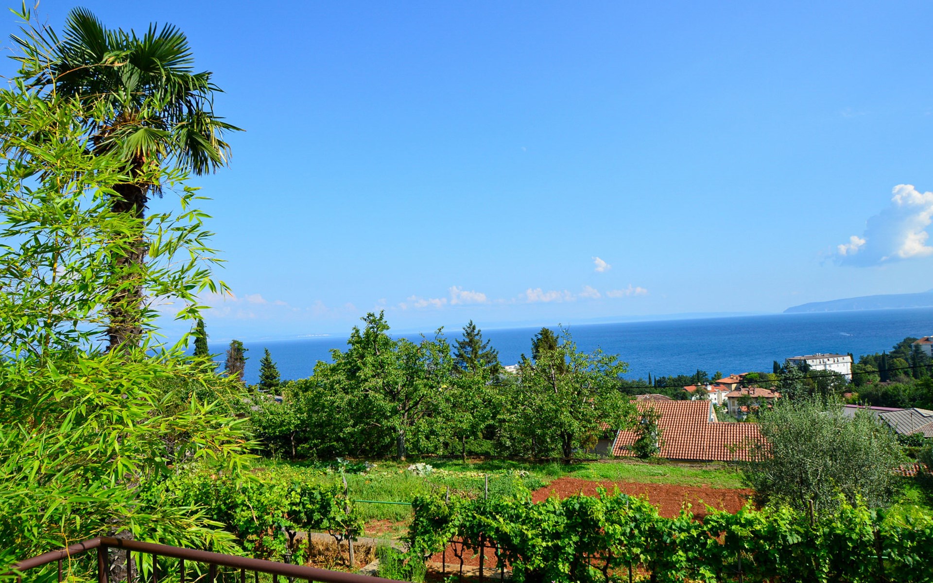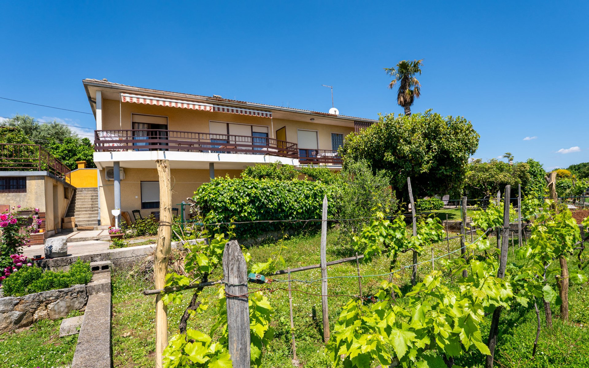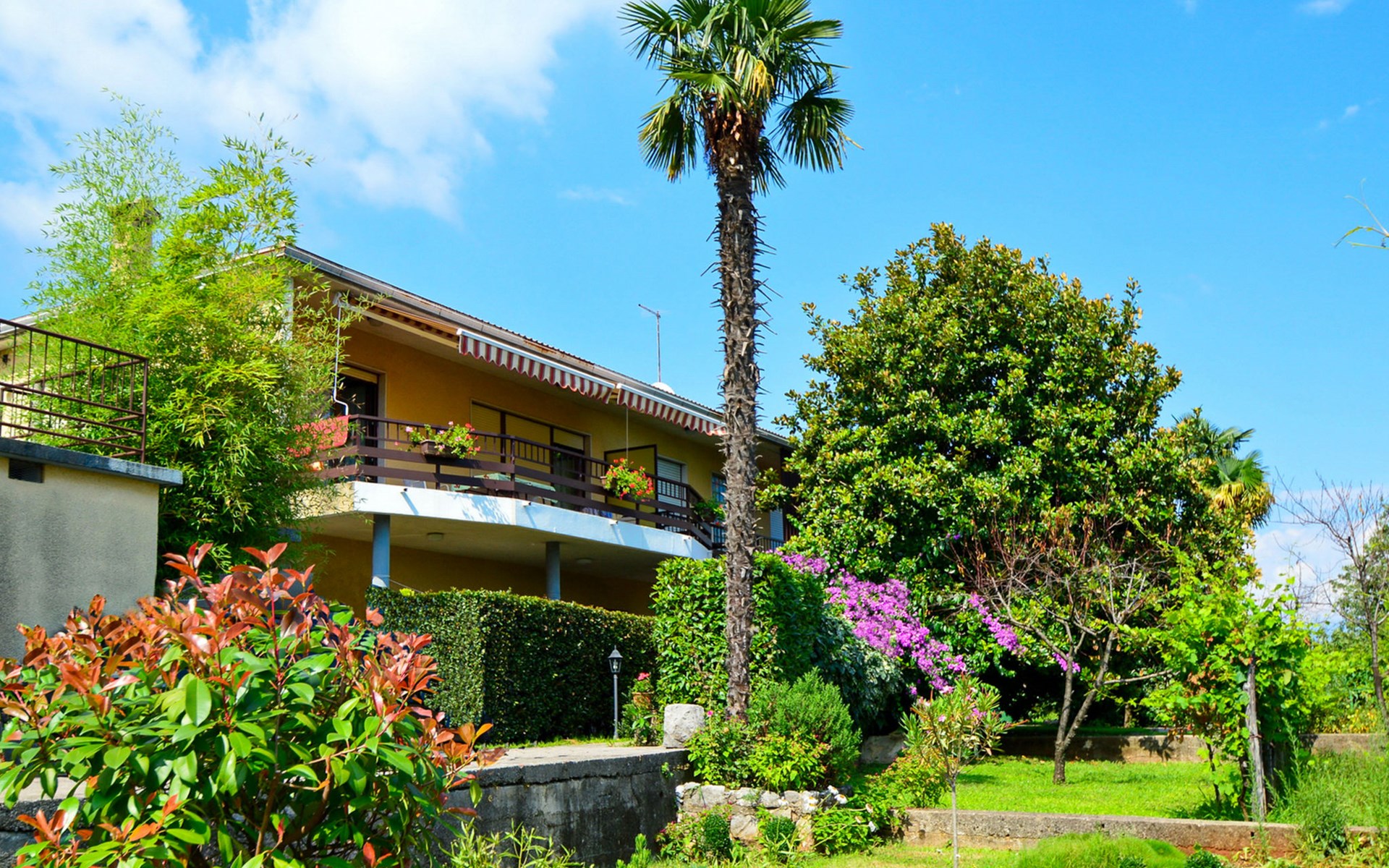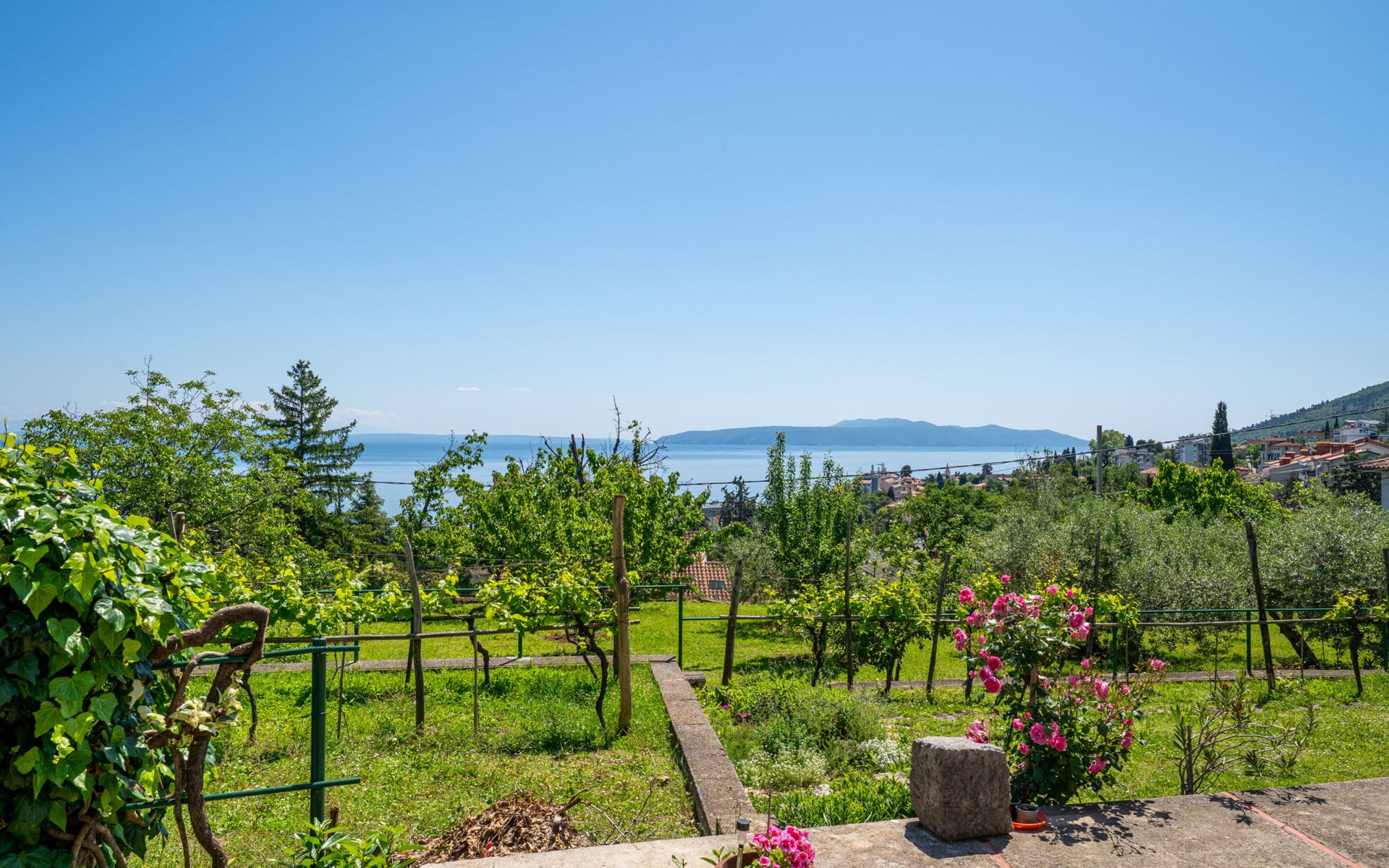 Apartment house "Marija". 900 m from the centre, in a quiet, sunny position on a slope, 650 m from the sea, 650 m from the beach, in the countryside. For shared use: garden lawn 60 m2, plants. Barbecue. In the house: internet access, central heating system. Narrow motor access. Parking at the house on the premises. Shop 350 m, supermarket 1 km, restaurant, café, bus stop 500 m, pebble beach, rocky beach, public bathing area 650 m. Tennis 550 m.