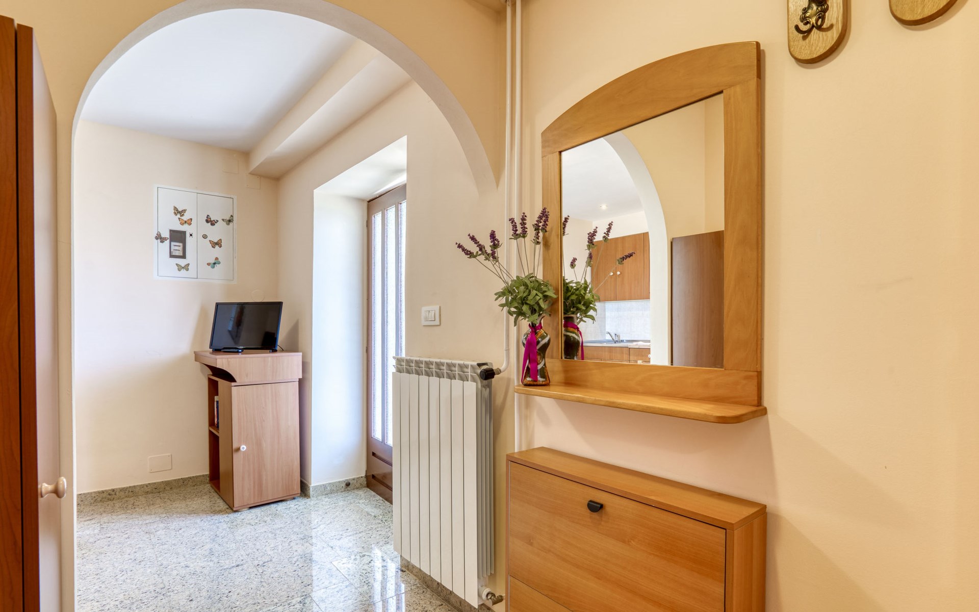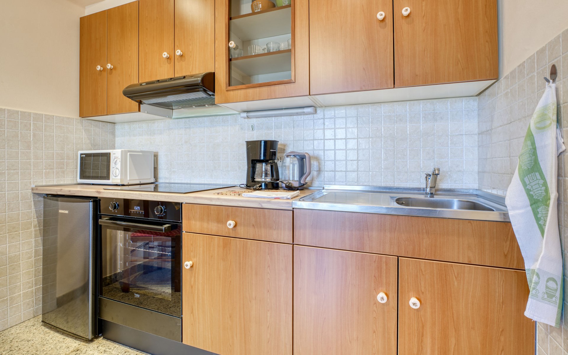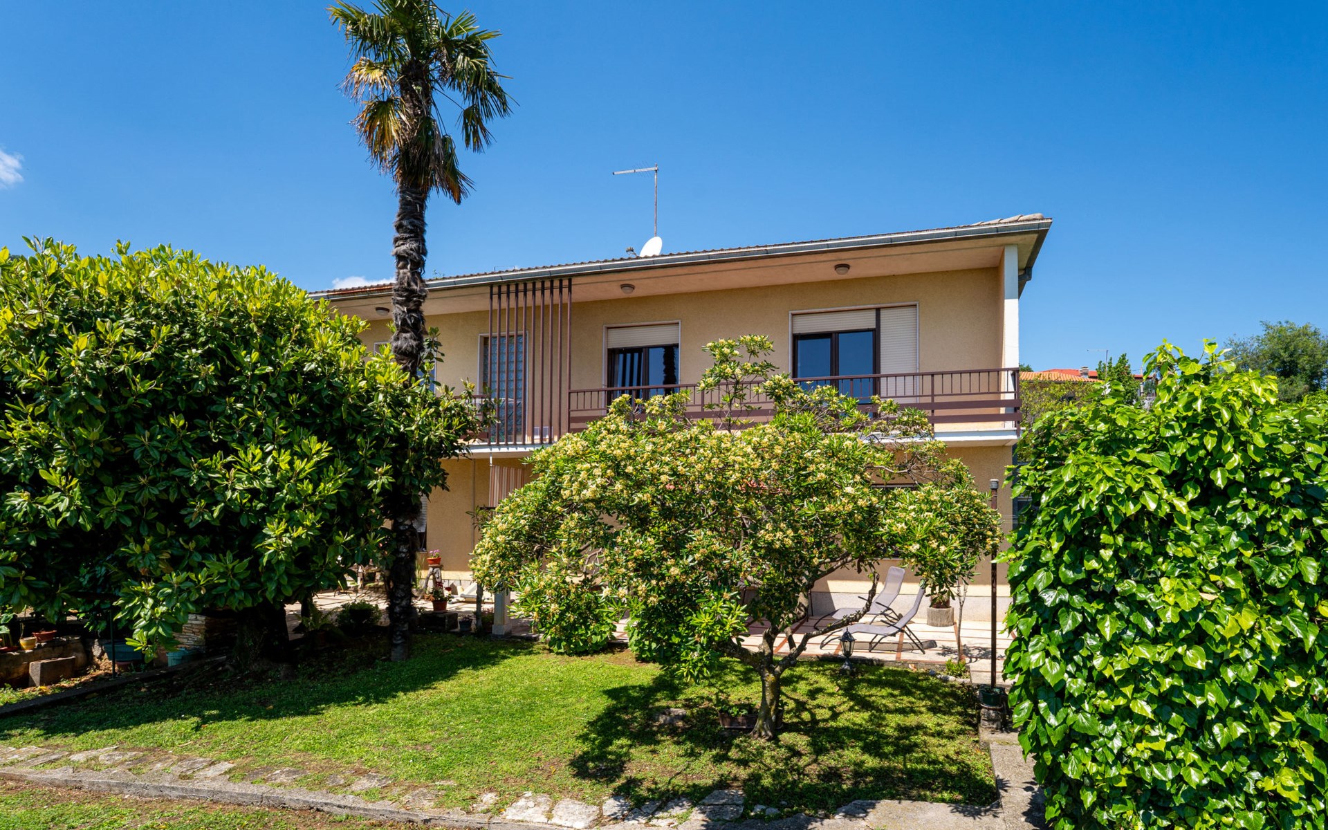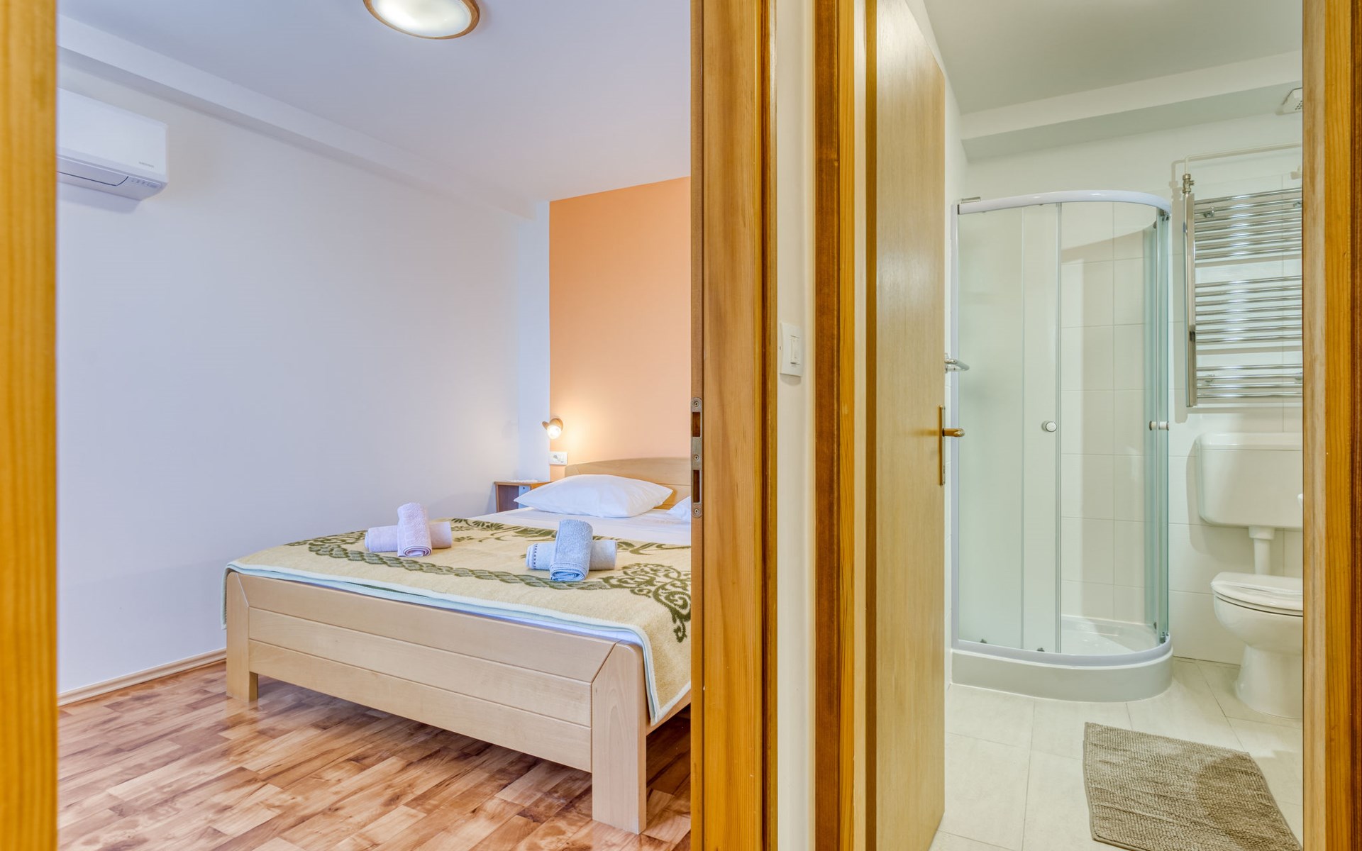 Apartment house "Marija". 900 m from the centre, in a quiet, sunny position on a slope, 650 m from the sea, 650 m from the beach, in the countryside. For shared use: garden lawn 60 m2, plants. Barbecue. In the house: internet access, central heating system. Narrow motor access. Parking at the house on the premises. Shop 350 m, supermarket 1 km, restaurant, café, bus stop 500 m, pebble beach, rocky beach, public bathing area 650 m. Tennis 550 m.