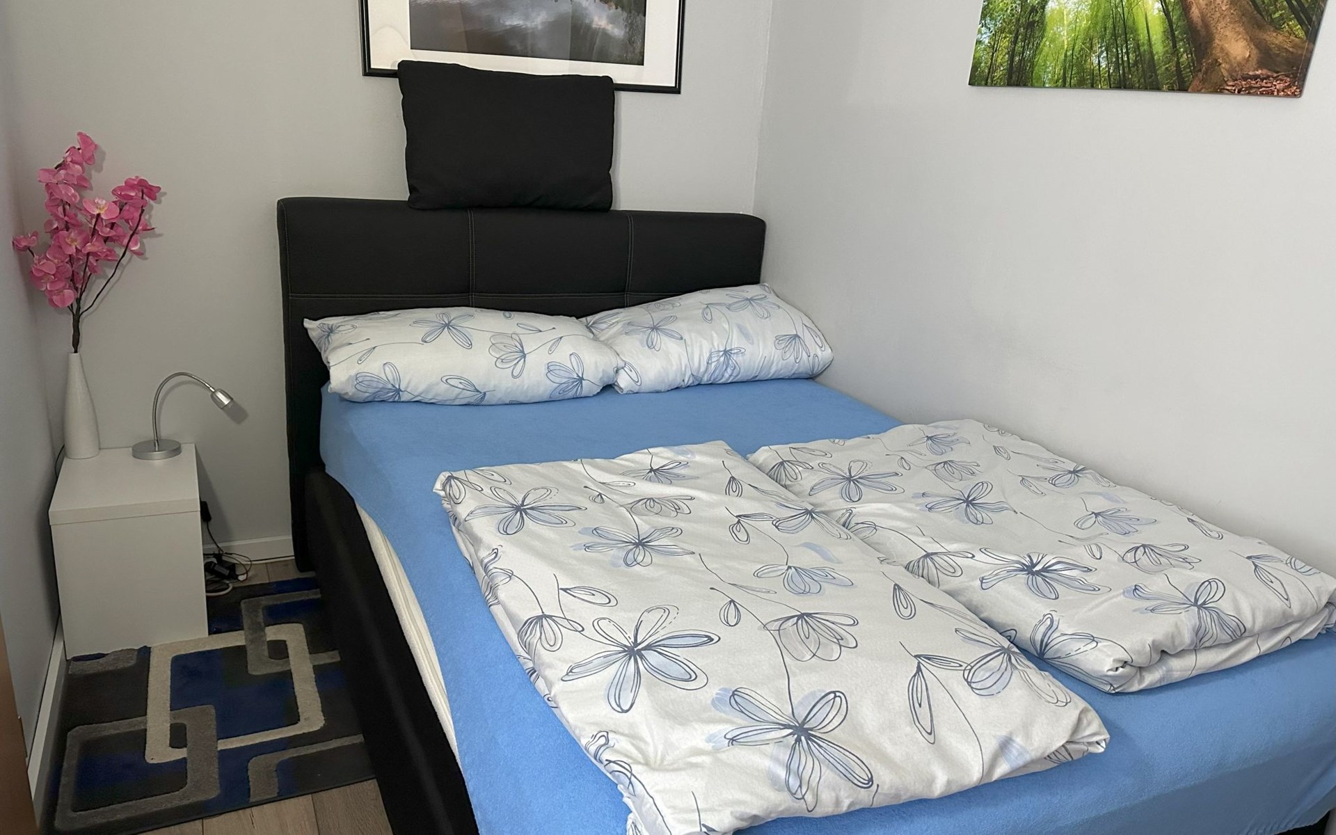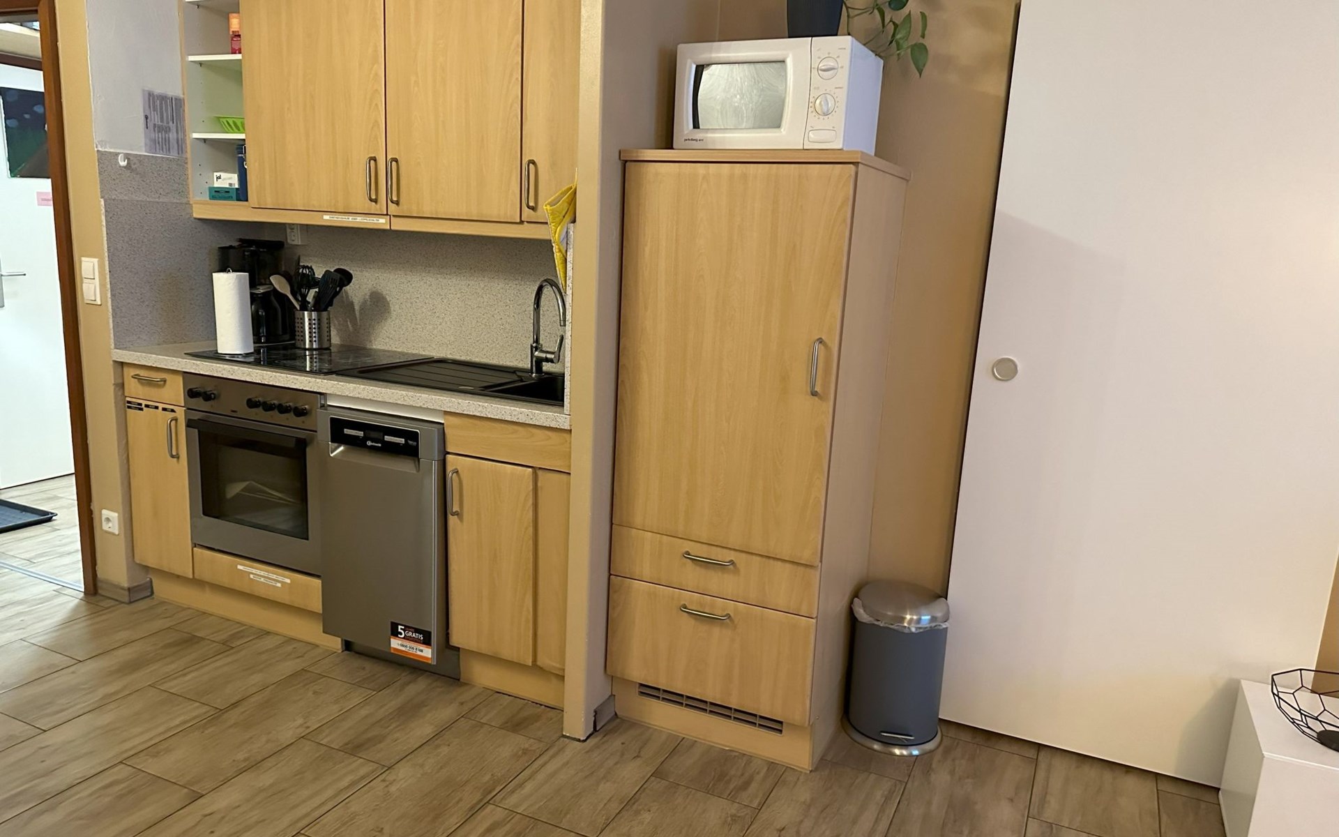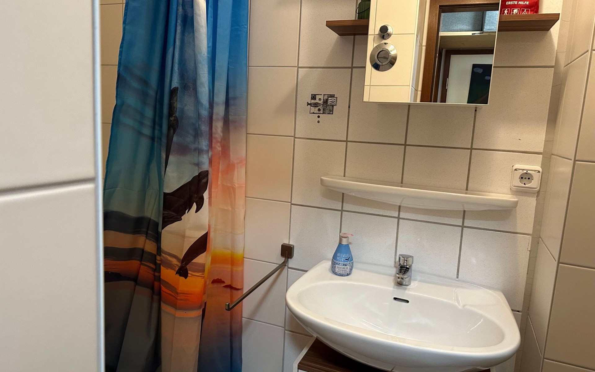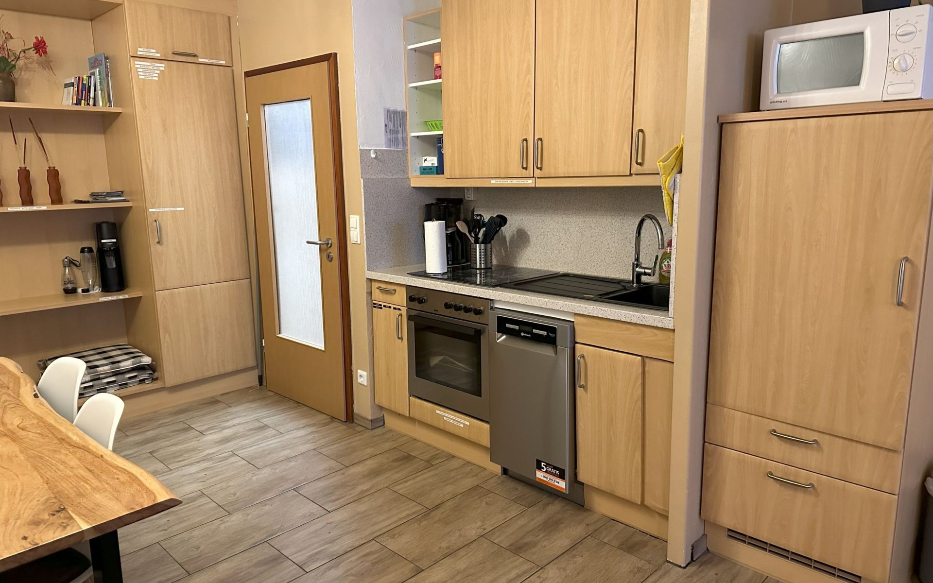 Inside, the flat impresses with its modern and high-quality furnishings. The combined living/dining room with open-plan kitchen leaves nothing to be desired: A leather sofa, a large dining table for 5 and a fully equipped kitchenette guarantee a pleasant stay. Two bedrooms with box-spring beds, including a double bed and two single beds, offer excellent sleeping comfort. The interior is complemented by two newly tiled bathrooms, one with a walk-in shower, and free high-speed WiFi as well as a GIGA TV box from Vodafone including Netflix for entertainment in the evening.
