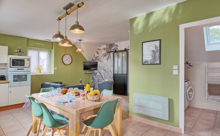 Country house. 5 apartments in the residence. 5 km from the centre of Plouhinec, 800 m from the centre of Magoüero, 900 m from the sea, 900 m from the beach. For shared use: property 800 m2 (fenced) with lawn and trees. Terrace, garden furniture, parking on the premises. Shop 4 km, restaurant 4 km, bus stop 5 km, sandy beach "Kervégant et Magoüero" 900 m. Surf school 1 km. Nearby attractions: Ria d'Etel 1 km, Gâvres 13 km, Auray 20 km.