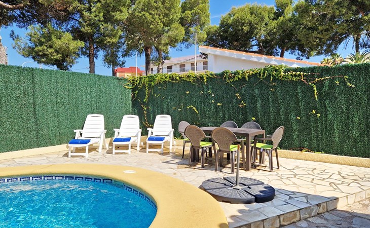 Beautiful holiday home for 6 people in Denia, Costa Blanca, Spain, with private pool and only 200 meters from the sandy beach of Las Brisas.