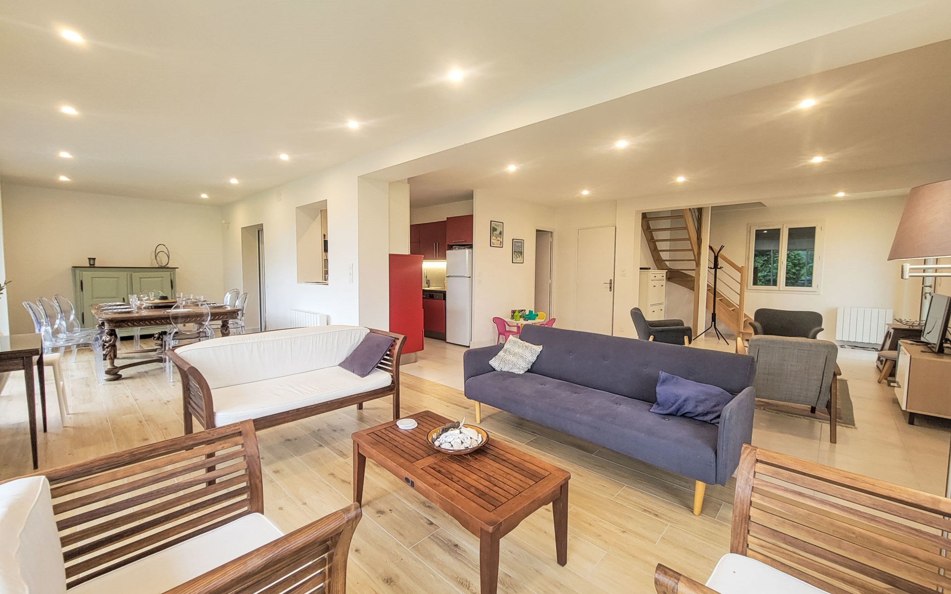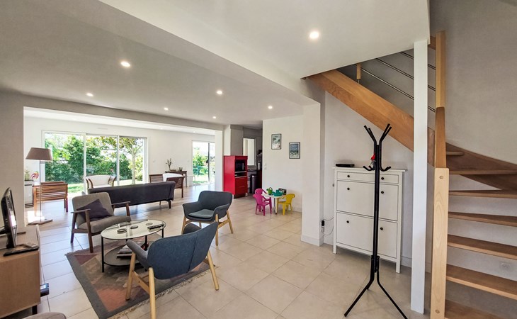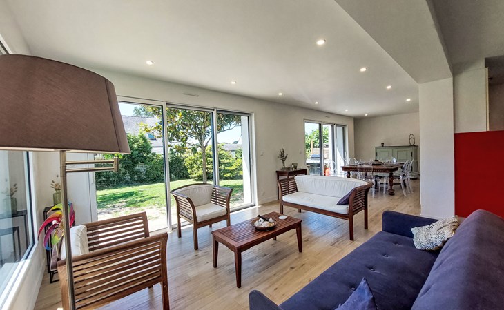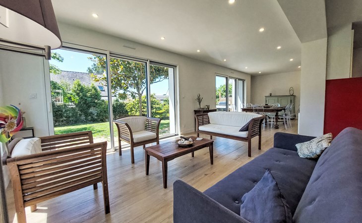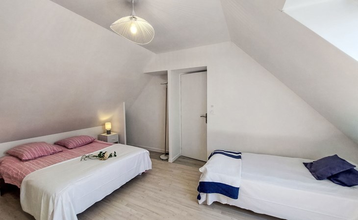 Single-family house "Bon Port", 2 storeys. On the outskirts, 700 m from the centre of Saint Philibert, 600 m from the sea, 1.9 km from the lake, 2 km from the beach. Private: property 500 m2, well-kept garden (not fenced), parking on the premises. Grocery 700 m, supermarket 4 km, restaurant, bakery 700 m, café, sandy beach "Plage de Men Er Belleg" 2 km, thermal baths "Thalassothérapie de Carnac" 9 km, lake Etang de Kercadoret 1.9 km. Golf course (18 hole) 15 km, surf school 15 km, sailing school 2 km. Nearby attractions: Port Deun 600 m, Carnac et ses aligenements 8 km, Quiberon 15 km, Vannes 30 km, La Trinité sur Mer 4 km, Belle Ile en Mer. Hiking paths: Golfe du Morbihan.