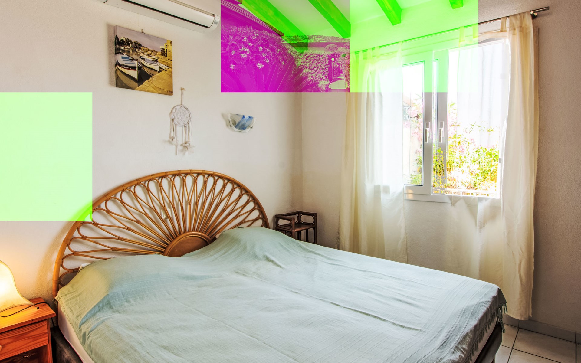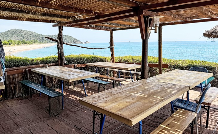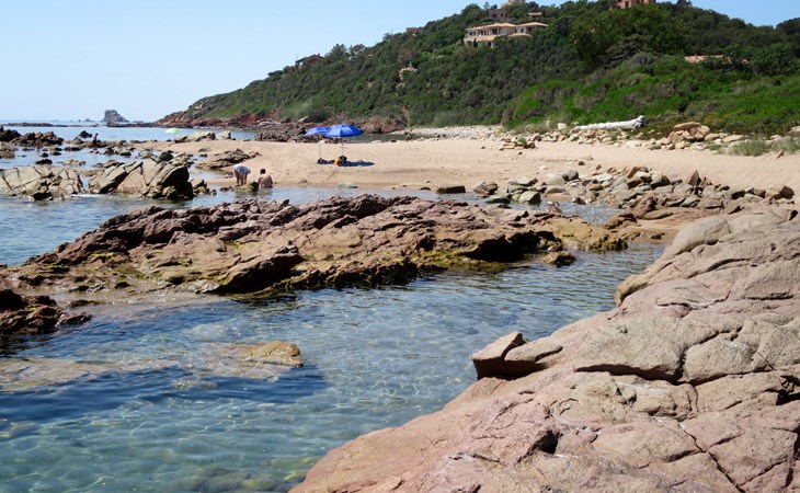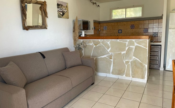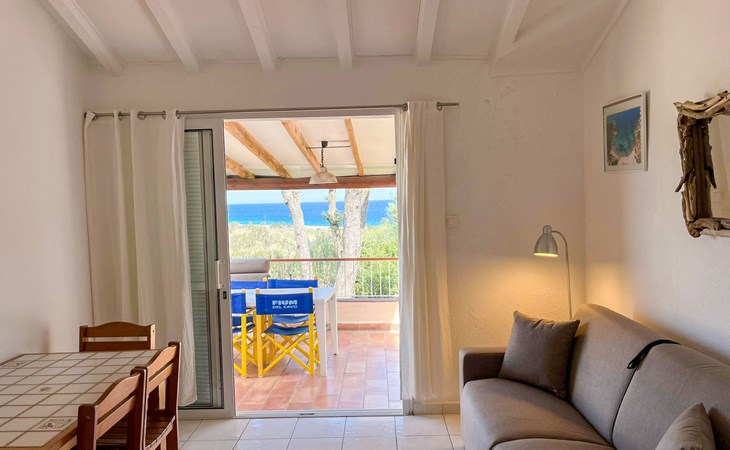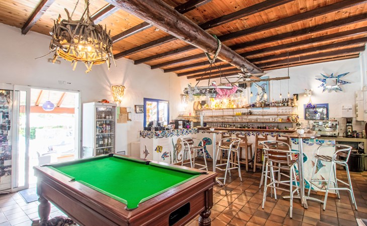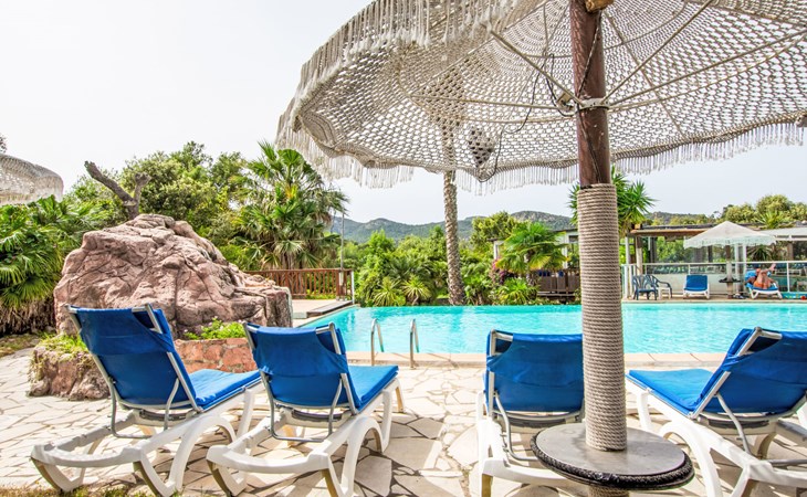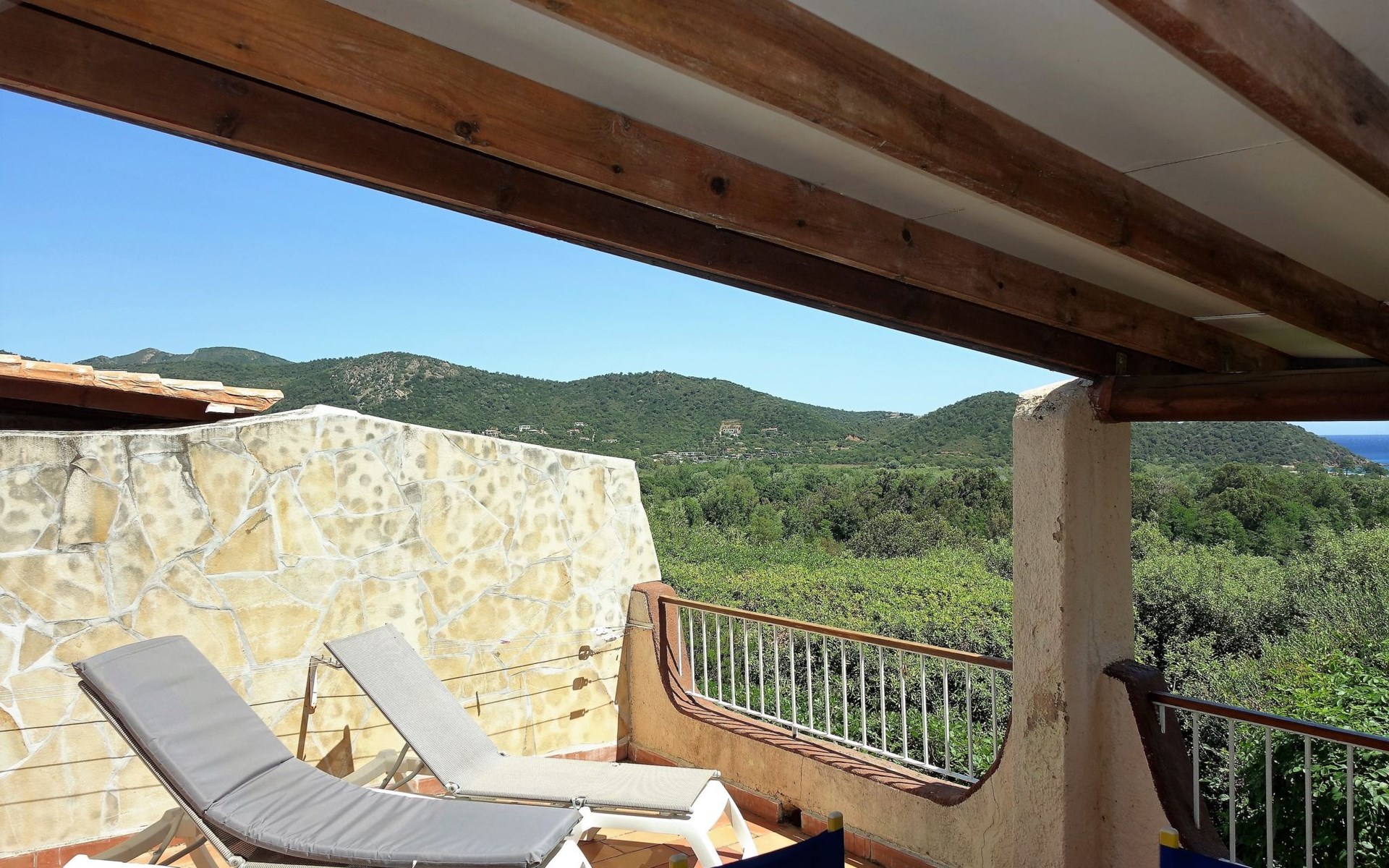 Olmucciu 8 km from Pinarellu: Small, cosy resort "Fium del Cavu". 25 houses in the residence. In the district of Olmucciu 8 km from the centre of Pinarellu, 16 km from the centre of Porto Vecchio, 131 km from the centre of Bastia, in a sunny position on a slope, 500 m from the sea, 500 m from the beach, 500 m from the river, in a cul-de-sac, in the countryside. For shared use: beautiful terraced garden with plants and trees, meadow, swimming pool fenced (16 x 8 m, seasonal availability: 14.May. - 28.Oct.). Outdoor shower, terrace. In the complex: reception, restaurant, bar, WiFi, billiard table. Parking on the premises. Shop 5 km, supermarket 16 km, bus stop 5 km, sandy beach "Plage de l'Ovu Santu" 500 m. Tennis 250 m. Please note: car recommended. The photograph shows a typical example. Wifi only at the reception.