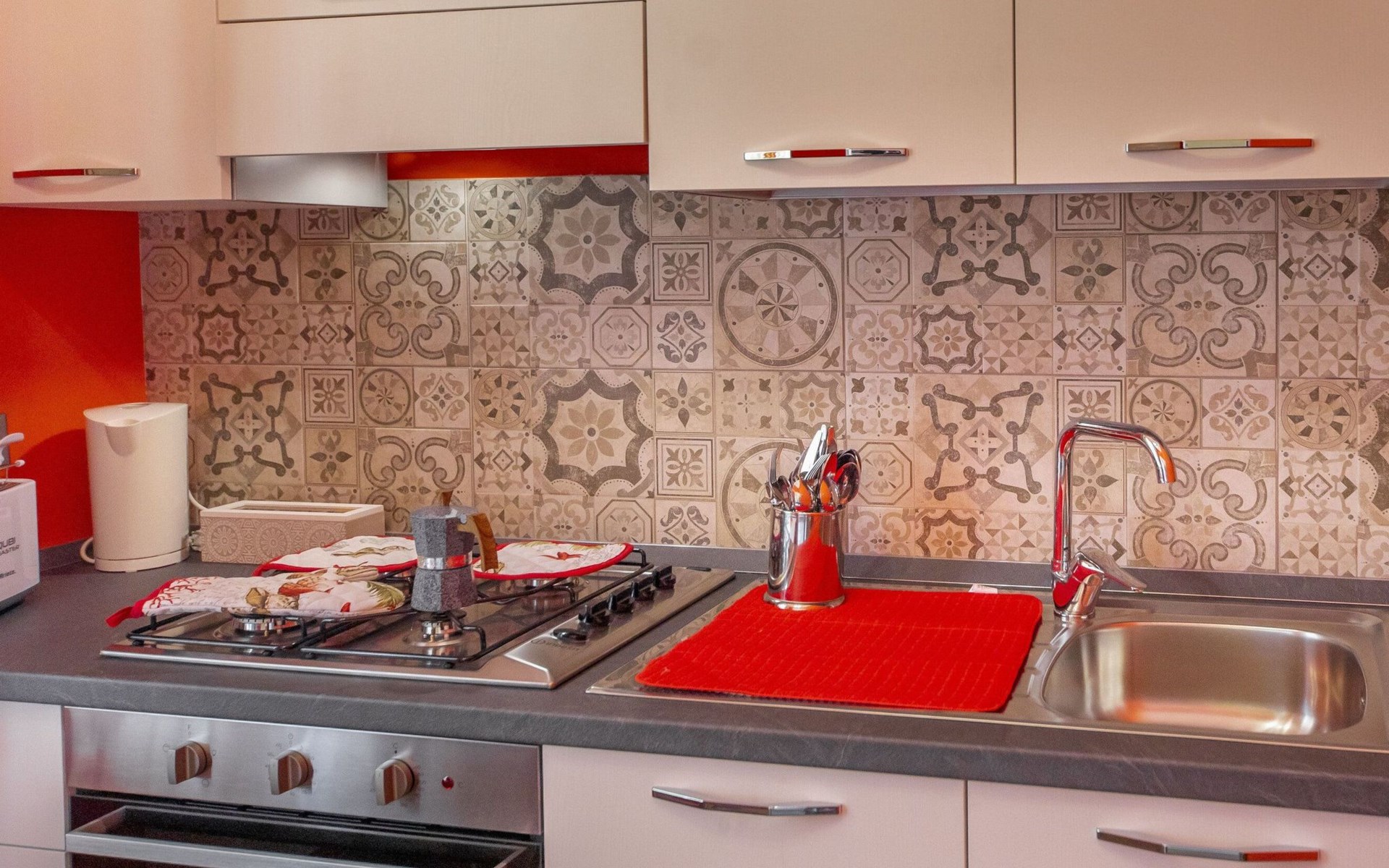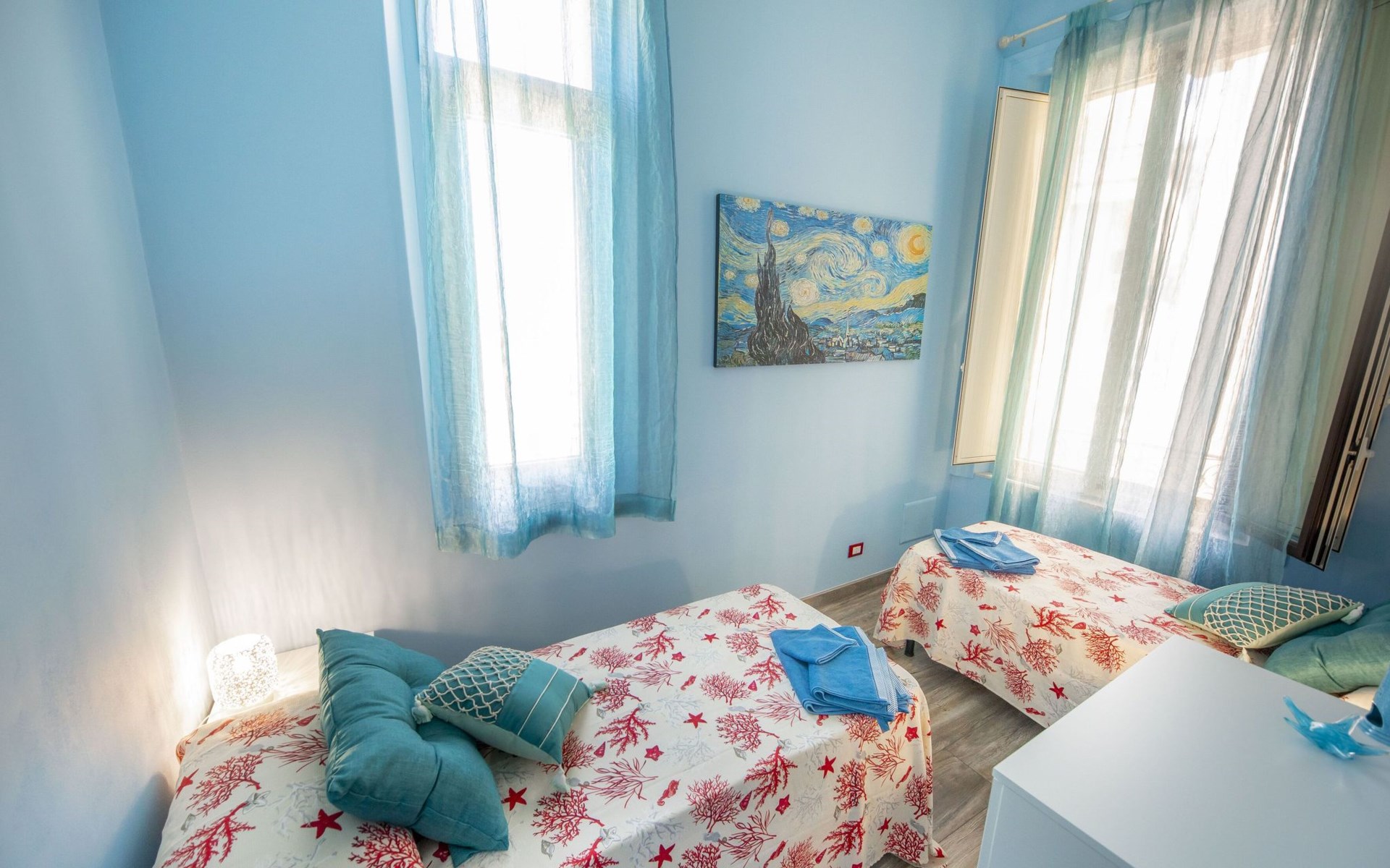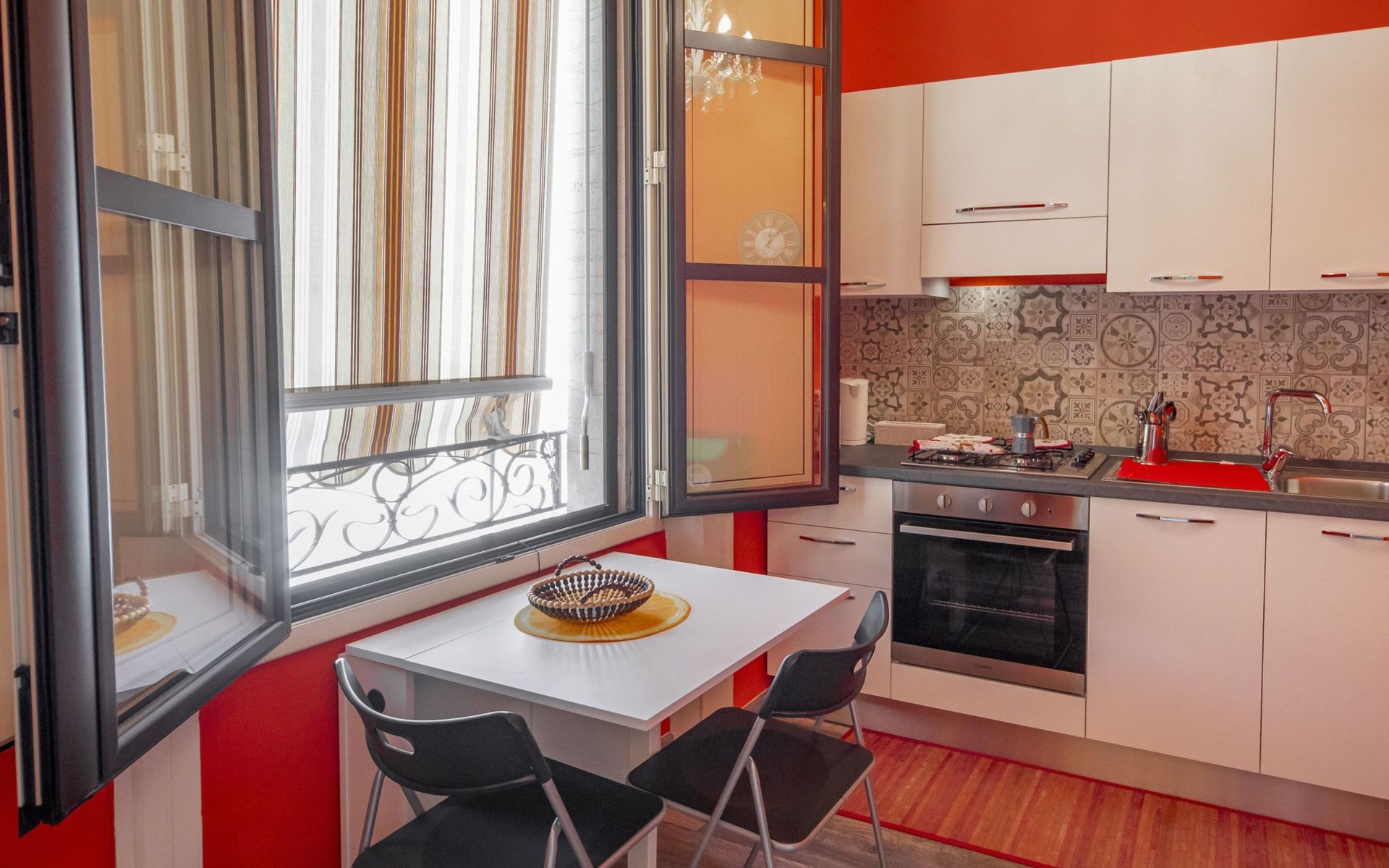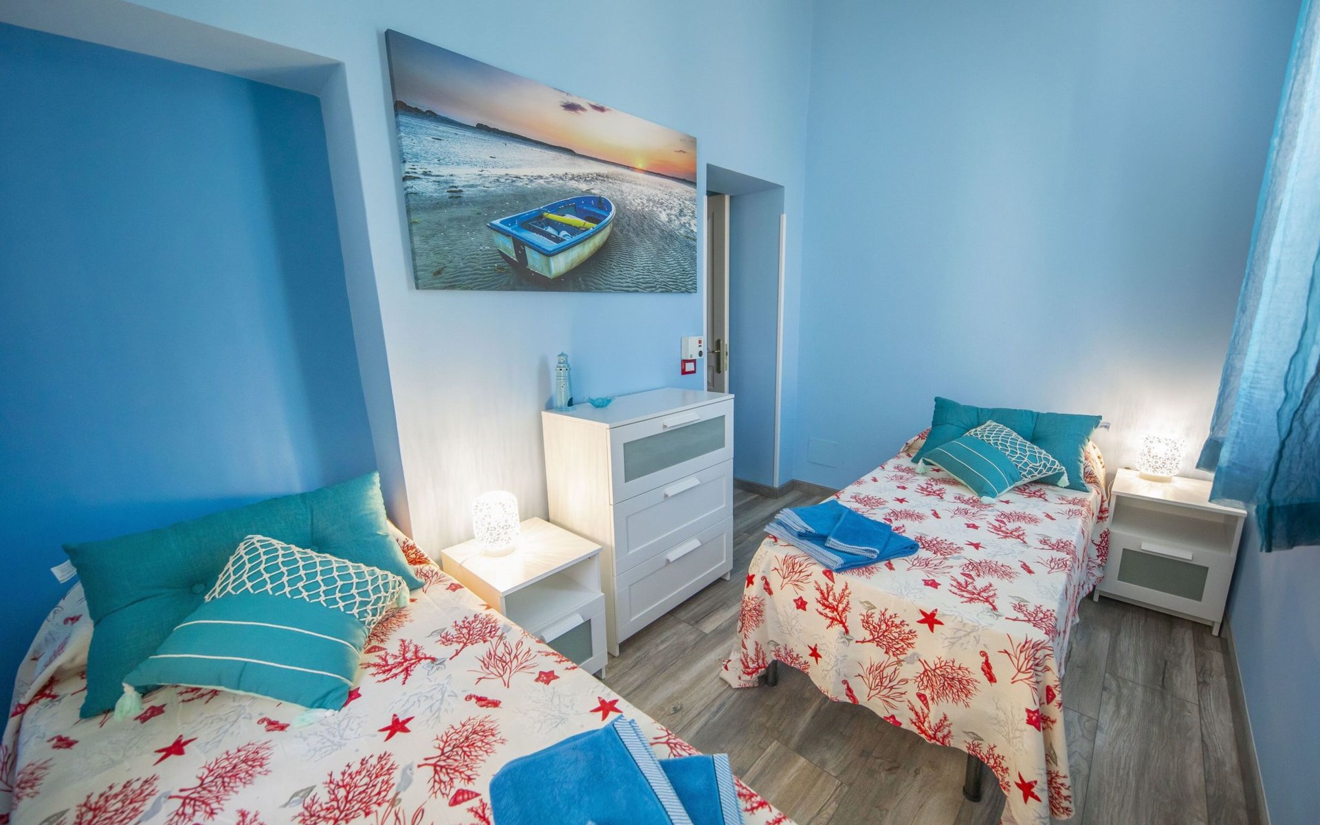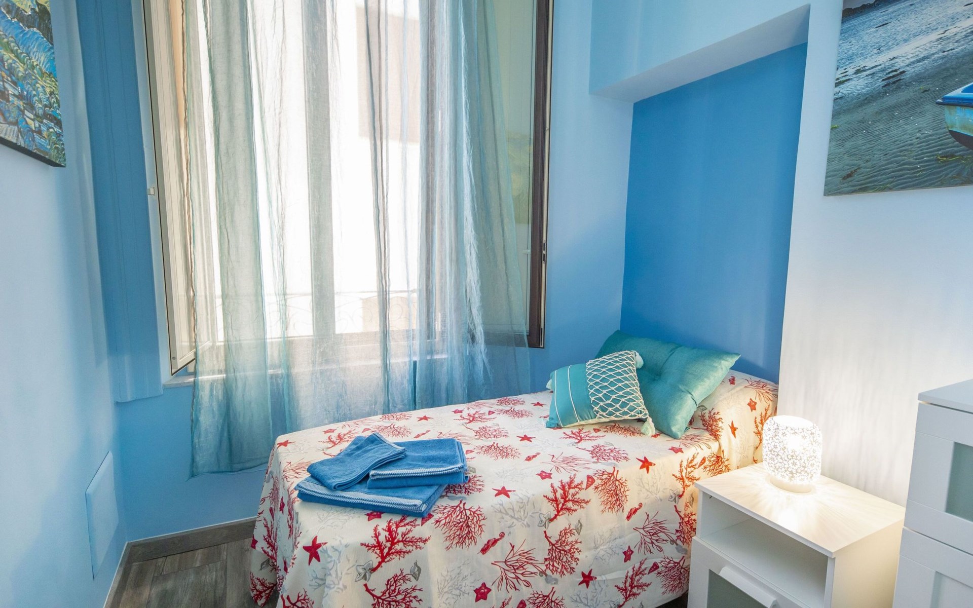 The interior of Liberty House is distinguished by its functionality and attention to detail, designed to ensure maximum comfort during your stay. The flat is partly air-conditioned, creating a pleasant environment in the warmer months. The spacious and bright living room is the perfect place to relax after a day exploring Cefalu. The exclusive use of a washing machine will allow you to make the most of your stay, while the gas cooker and the appliances provided, such as the electric coffee machine and kettle, will allow you to prepare meals and drinks as if you were at home.