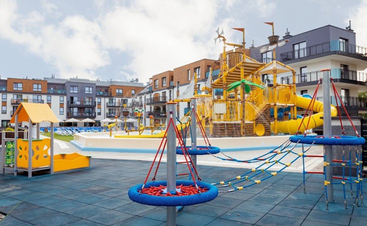 The area of the hotel resort, the new centre of Międzyzdroje. Within the resort area construction works are being carried out inside the newly erected buildings, connected with the construction of the AQUA PARK , this may involve nuisance.