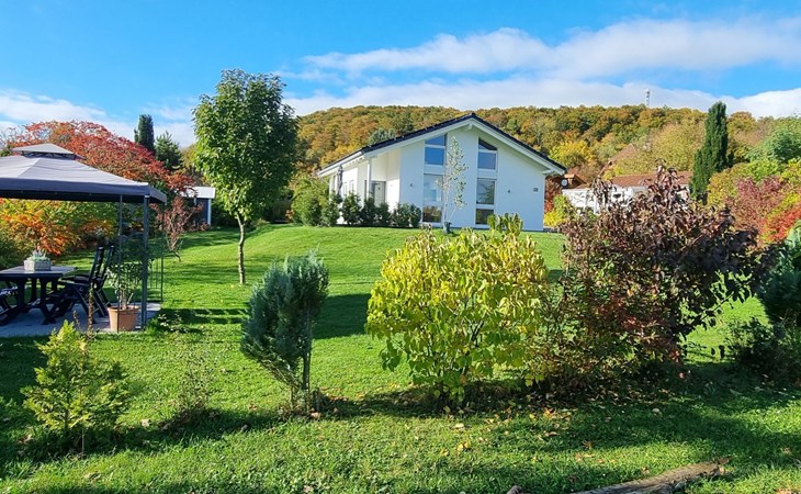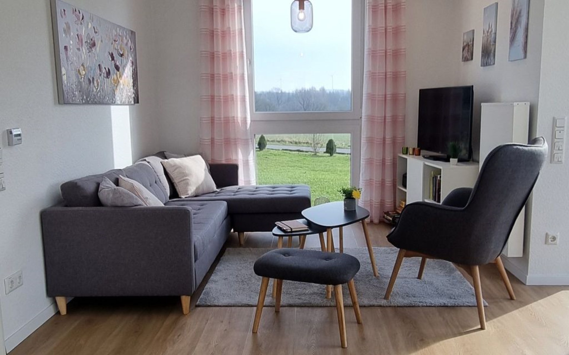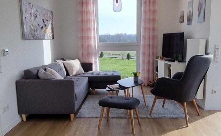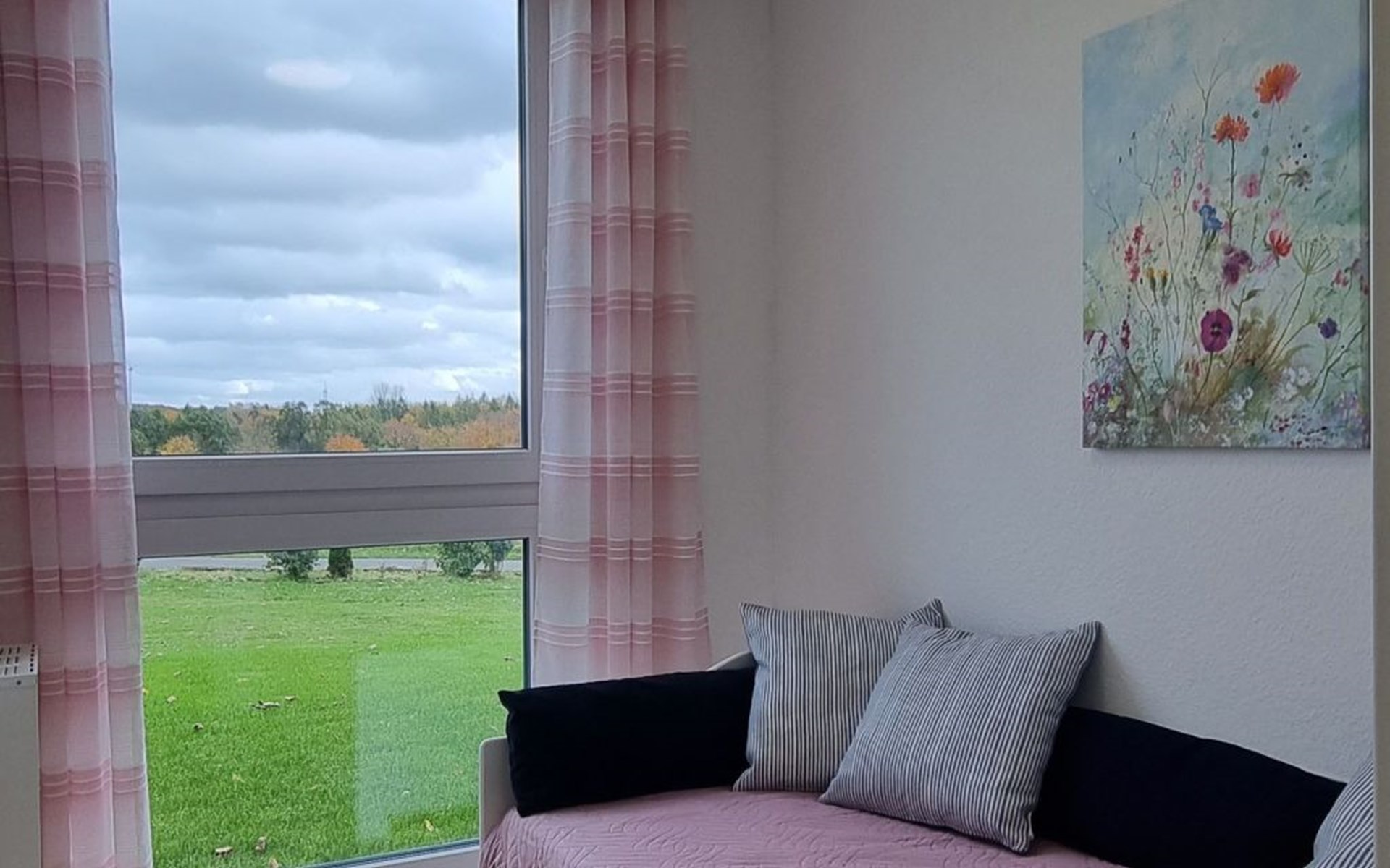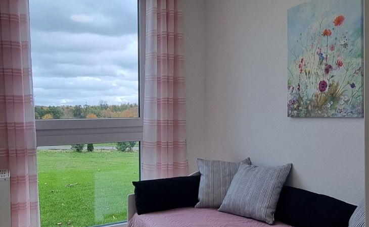The house is located in the climatic health resort of Vörden on the southern slope of the Hungerberg in western Weserbergland, not far from the former Benedictine abbey of Marienmünster. It offers space for three adults plus one child. We are happy to provide an additional travel cot for babies/toddlers.