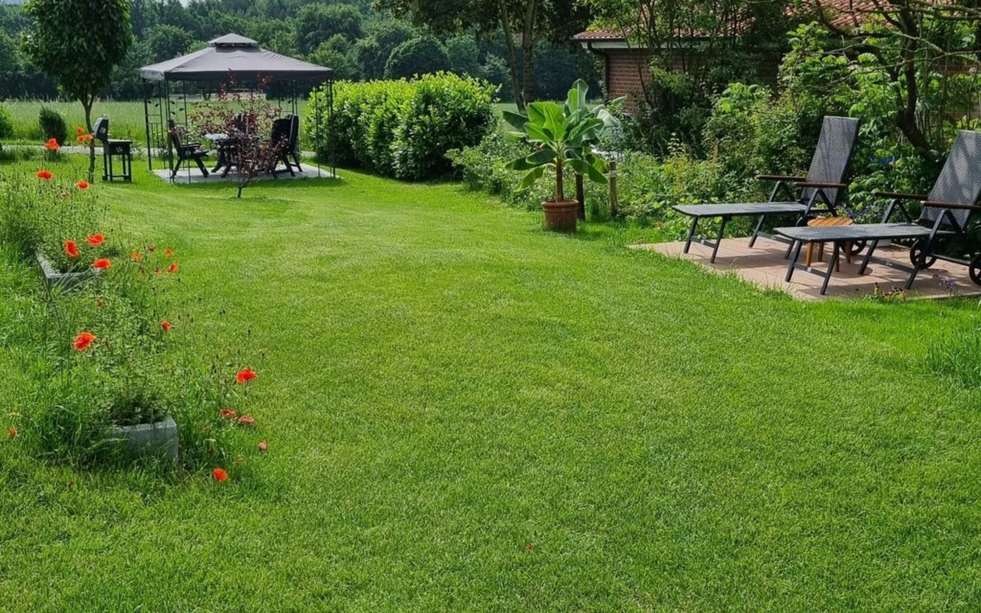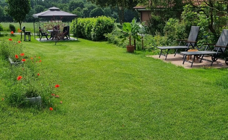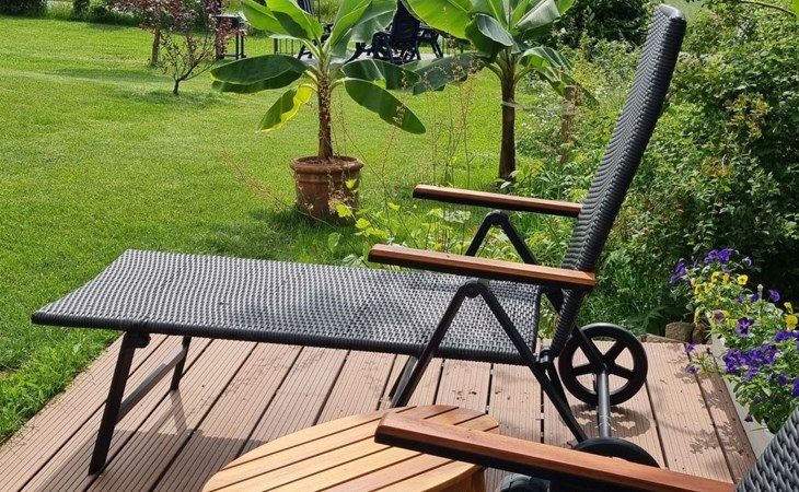 In the large private garden, you can use two terraces with garden furniture, a terrace with two sun loungers, the shady area under the pavilion and the large sunbathing lawn as you wish.