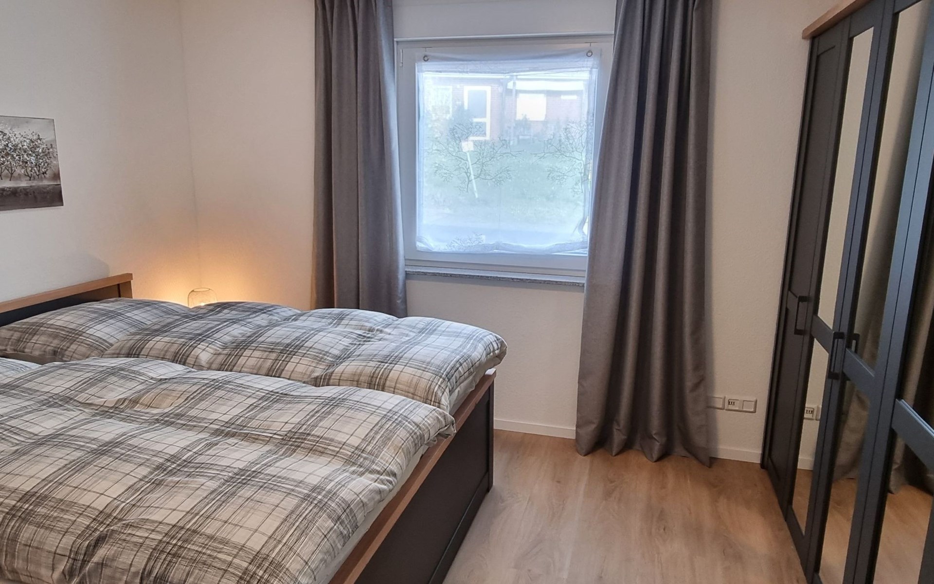 The small bedroom is furnished with: Single bed 0.90m x 2.00m with the possibility of another pull-out bed, which is only suitable for children, 0.90m x 2.00m see photos, a small wardrobe see photo. So 2 children or one adult can sleep in the room. Please orientate yourself by the photos.