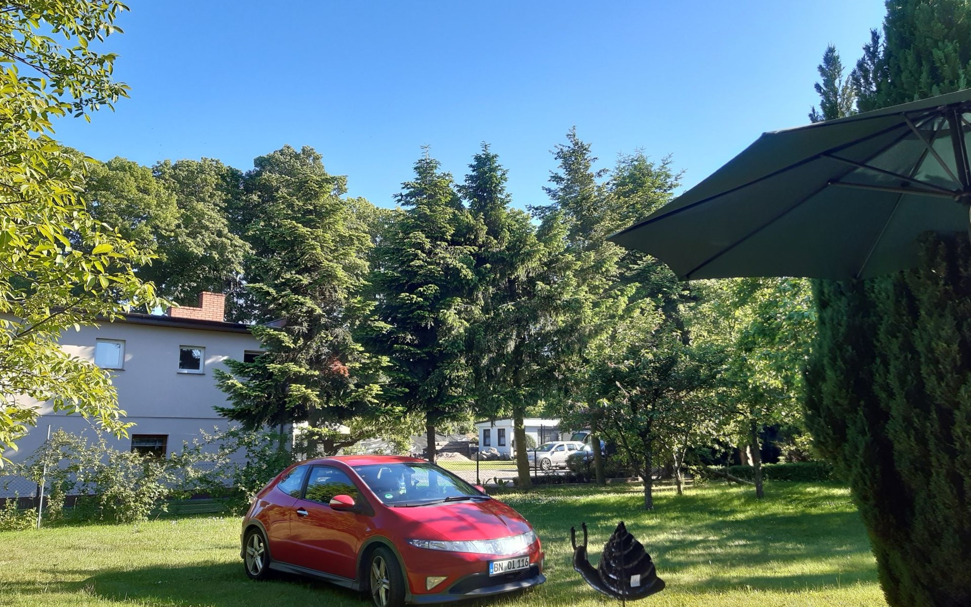 The outdoor area of our house presents itself with a 1000 m² fenced garden, which offers space for relaxation and fun and games - ideal for families with children or guests with pets. The terrace is the perfect place for cosy barbecues, while the garden furniture provided will sweeten sunny days outdoors. Another convenience is the private car park directly in front of the house.