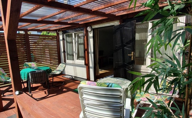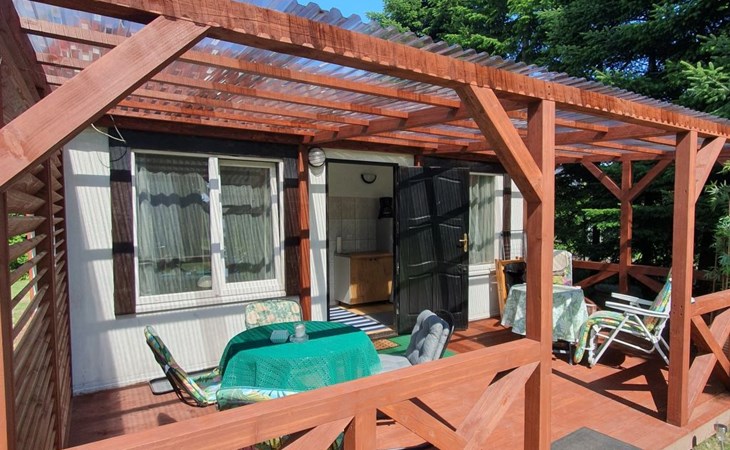 The interior of our house exudes a cosy and comfortable atmosphere for up to three guests. A separate bedroom ensures peaceful nights, while the living room with a sofa bed is ideal for relaxing evenings. The bathroom with shower and washing machine as well as a fully equipped kitchen fulfil all needs and desires for comfort and culinary pleasure. Partial air conditioning and two fans ensure a pleasant temperature and provide refreshment even on hot days.