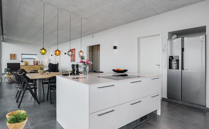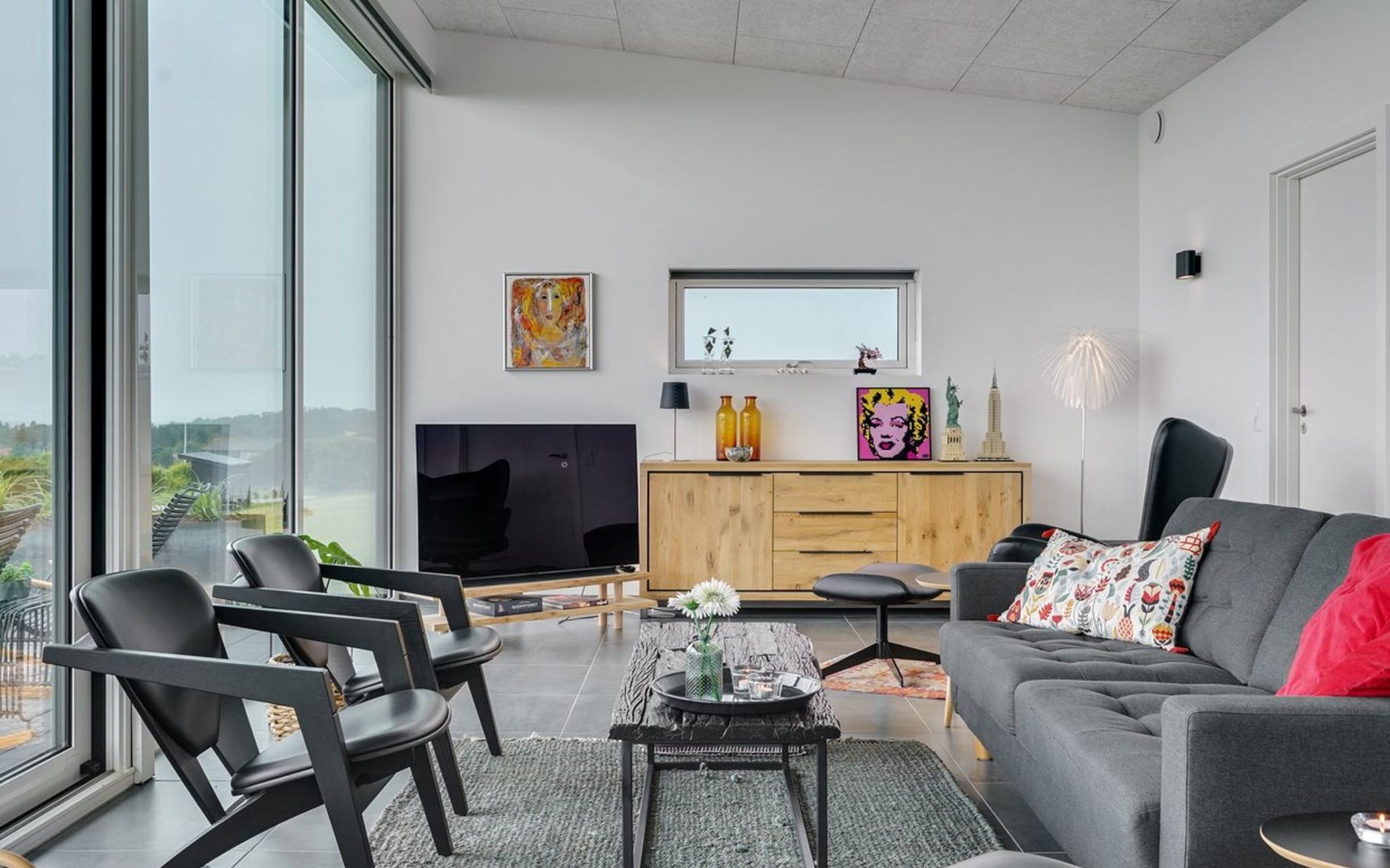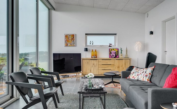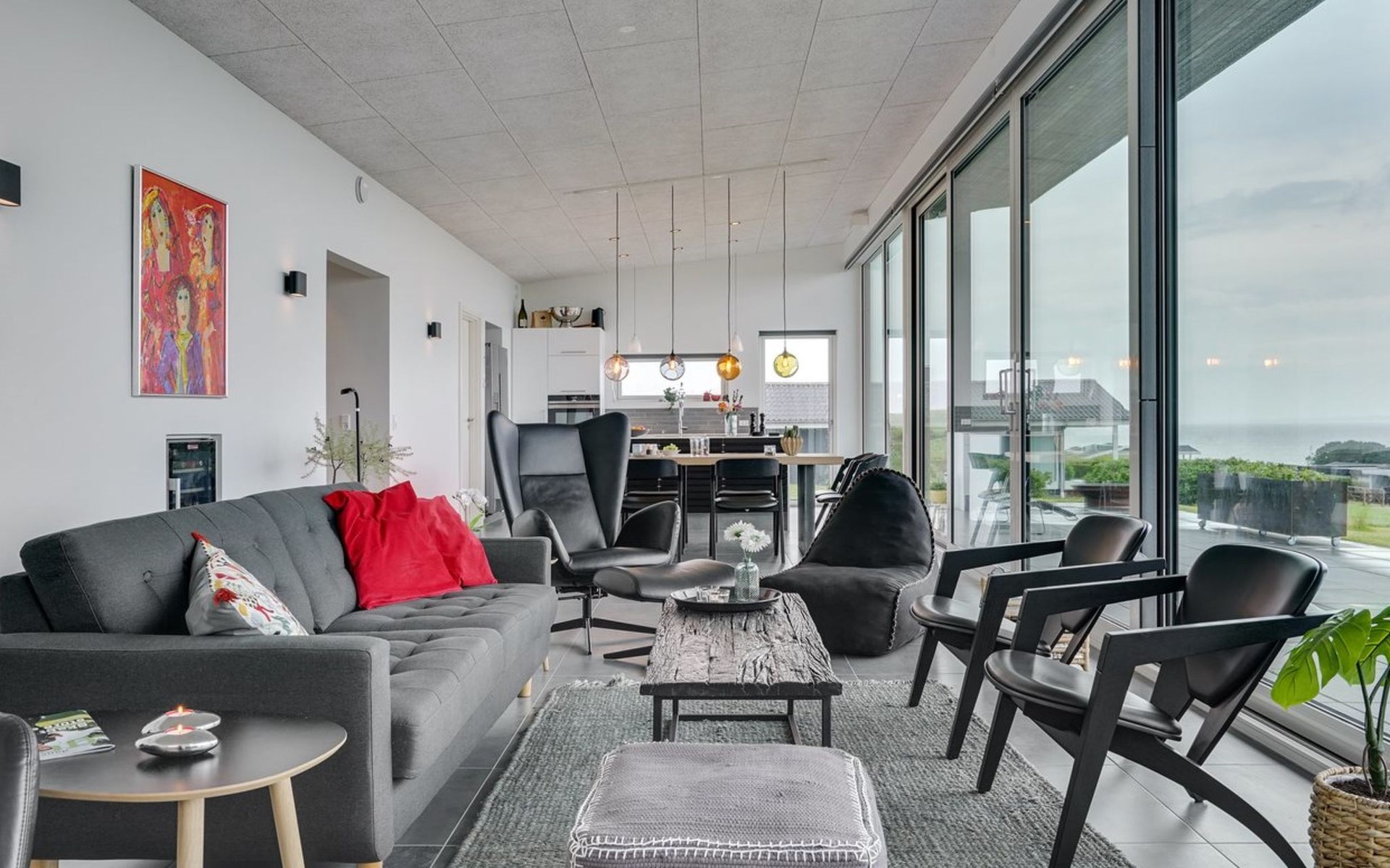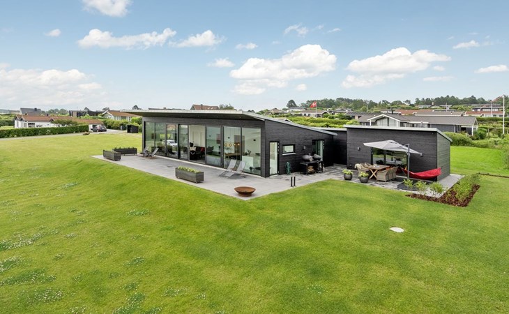 Single-family house, built in 2020. 200 m from the sea. Private: property 1'455 m2, well-kept garden. Terrace (90 m2), barbecue, fireplace. In the house: washing machine, tumble dryer. Parking at the house. E-charging station. Grocery 5 km. Golf course 26.4 km. The owner does not accept any youth groups.