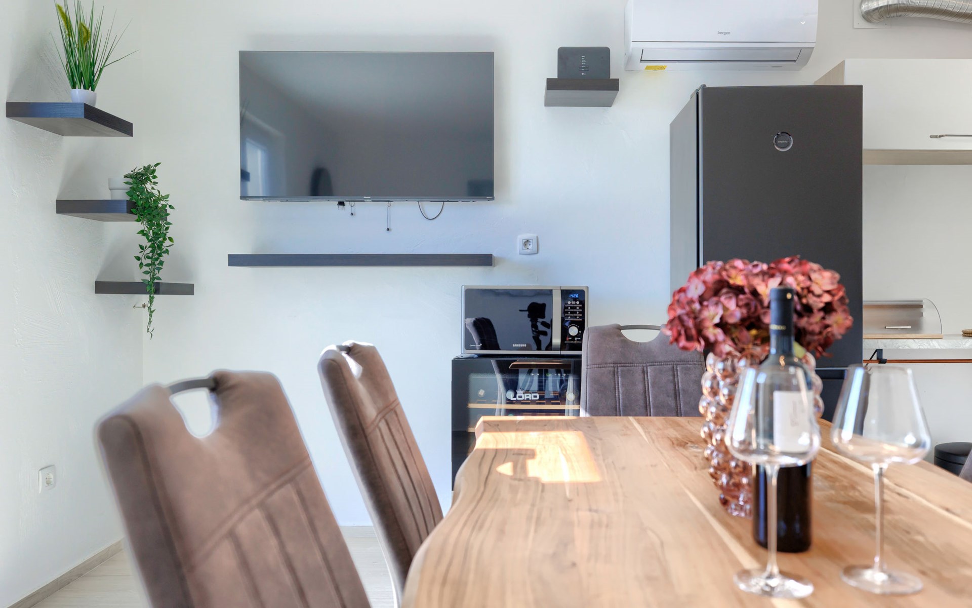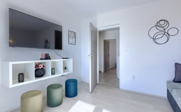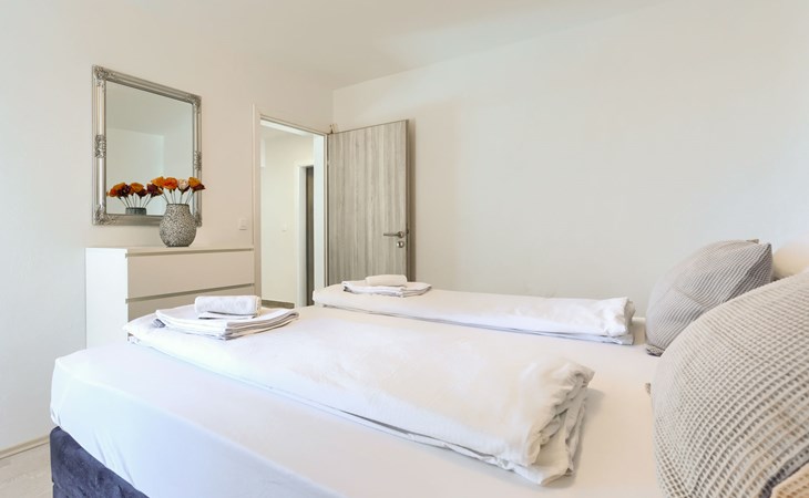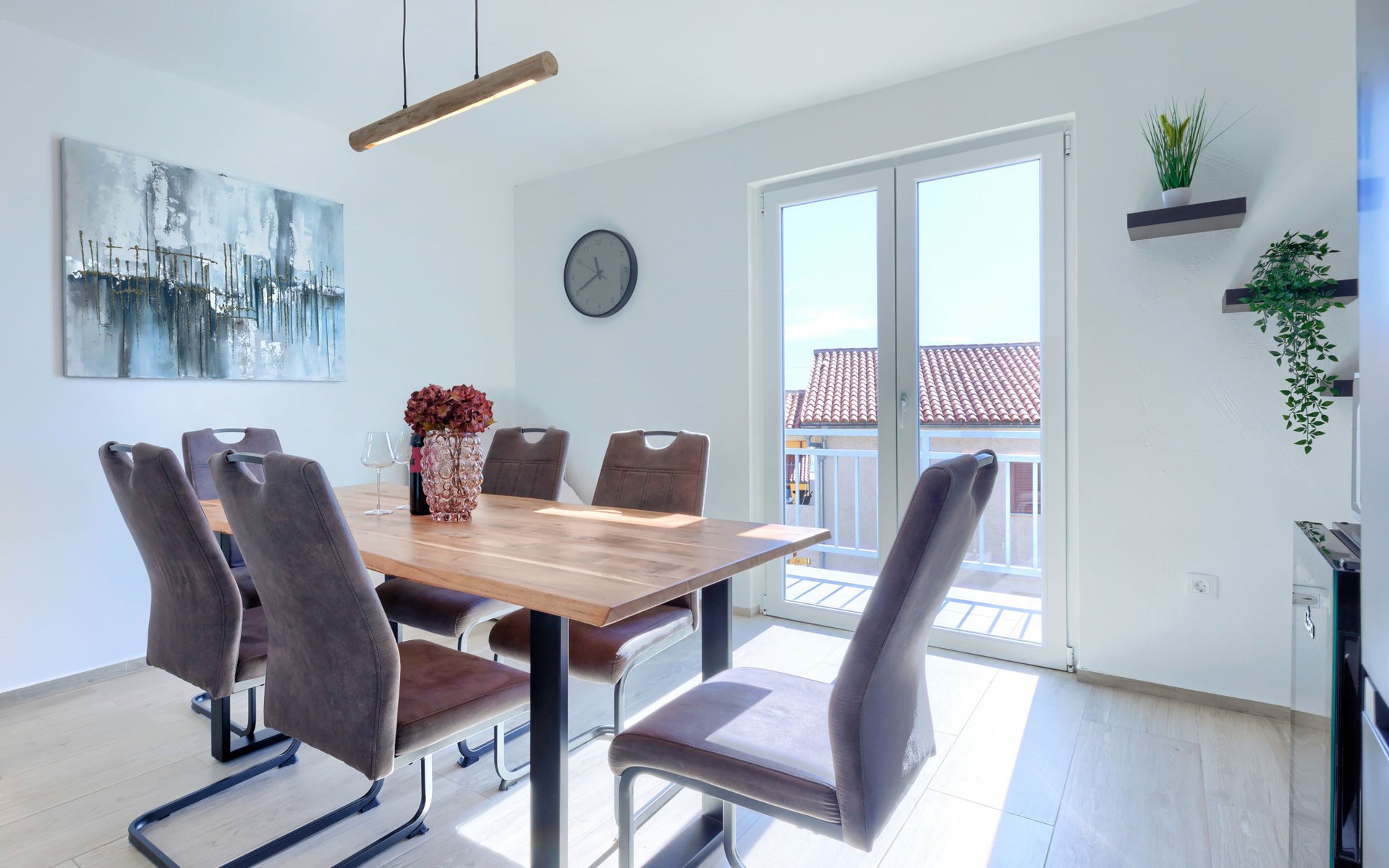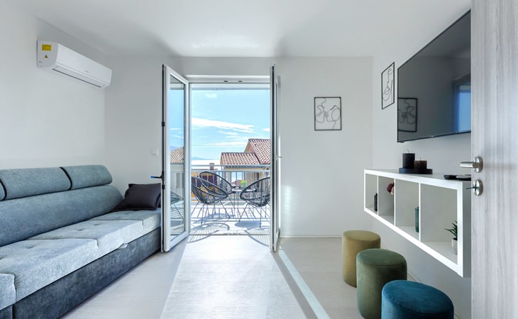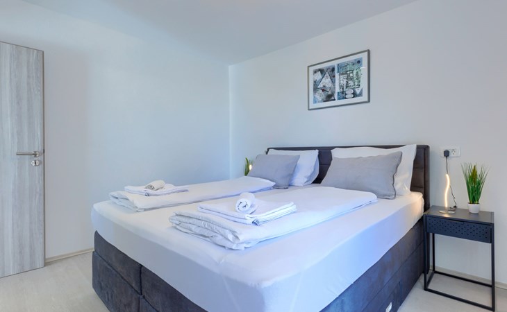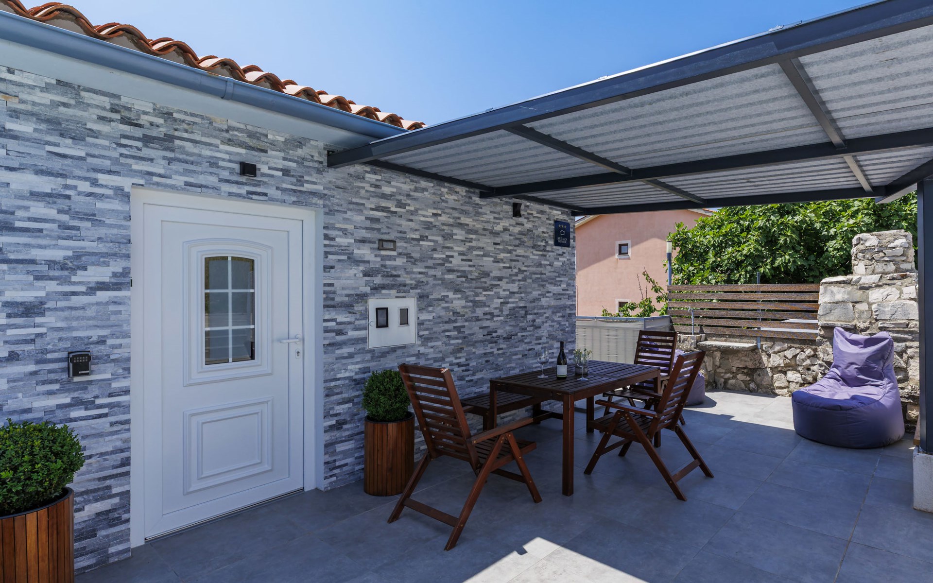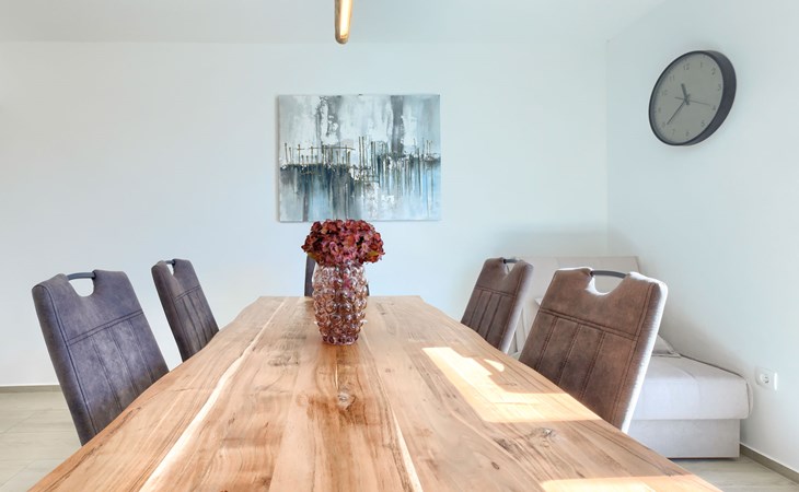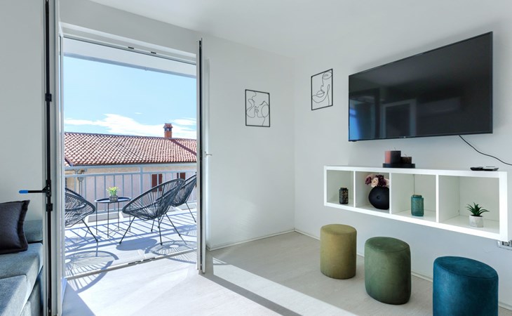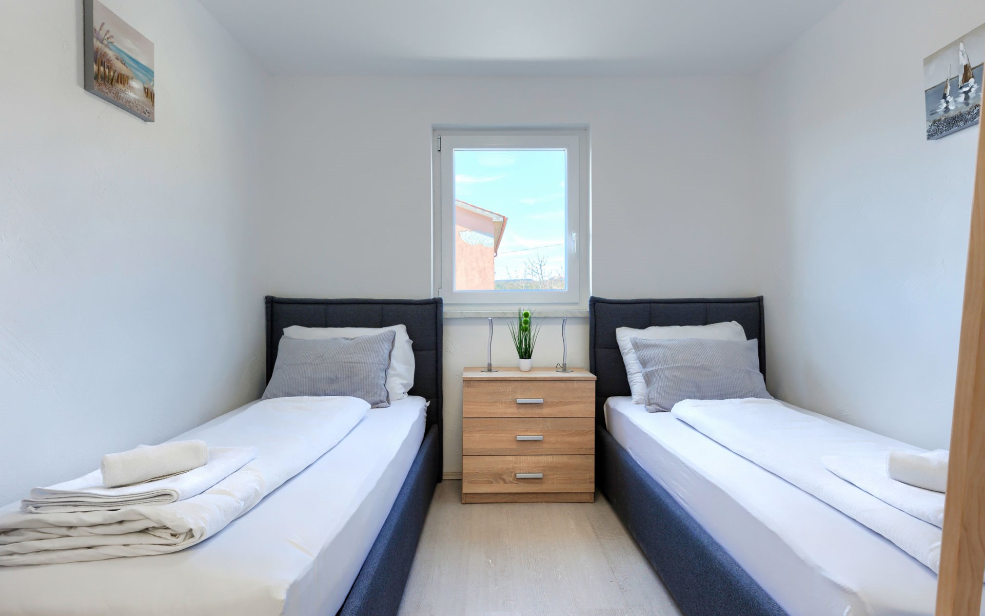 2-family house "Tatiana". 1.7 km from the centre of Rabac, 6 km from the centre of Labin, in a sunny position on a slope, 1.7 km from the sea, 1.7 km from the beach. Private: swimming pool angular (5 x 3 m, depth 140 cm, seasonal availability: 01.Jun. - 12.Oct.) with salt-electrolysis pool-cleaning system. Outdoor shower, terrace (20 m2), garden furniture, barbecue, pool maintenance by the owner/gardener. In the house: internet access. Parking (for 2 cars) at the house on the premises. Shop 1 km, supermarket 7 km, restaurant 1 km, bus stop 1.8 km, pebble beach 1.7 km. Please note: airfield 45 km from the property.
