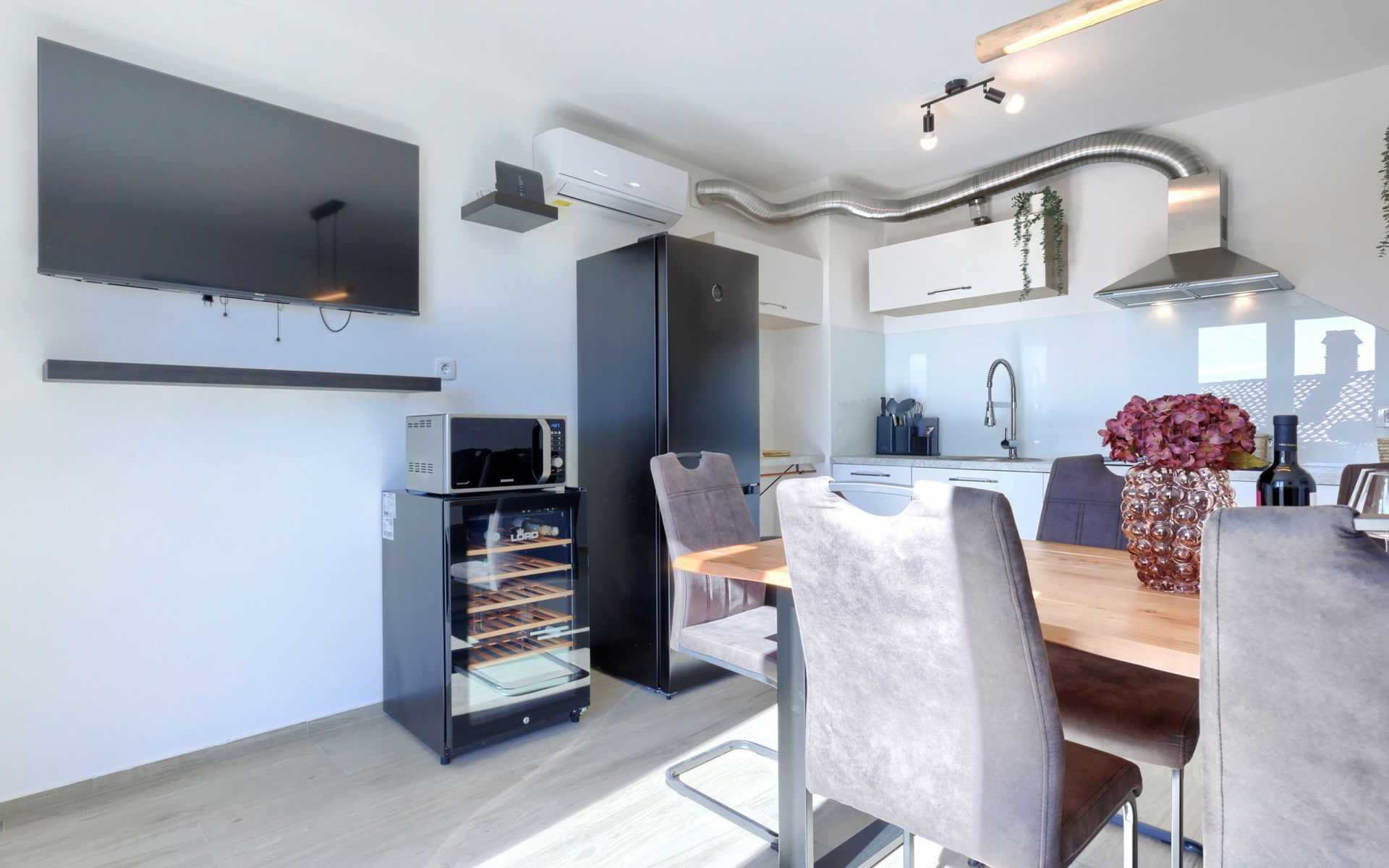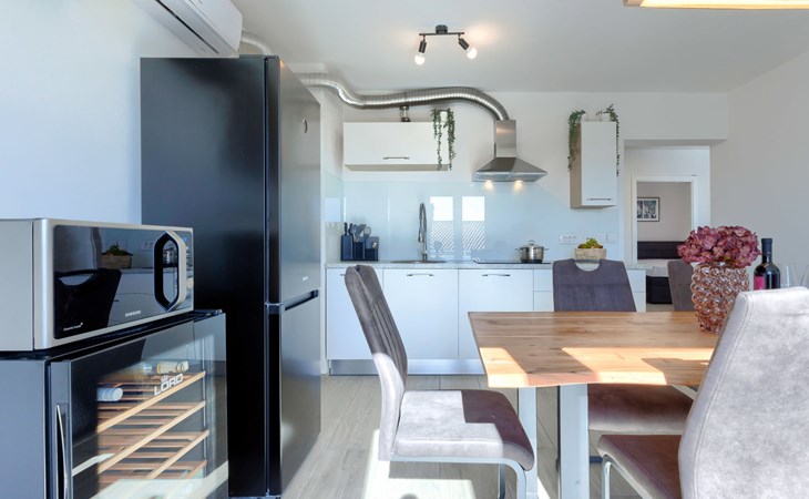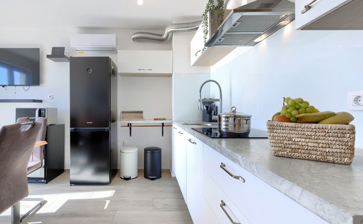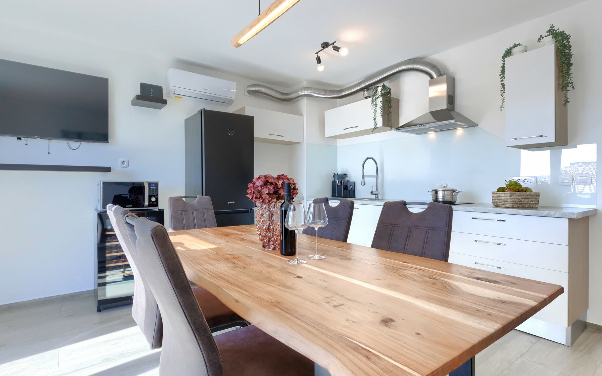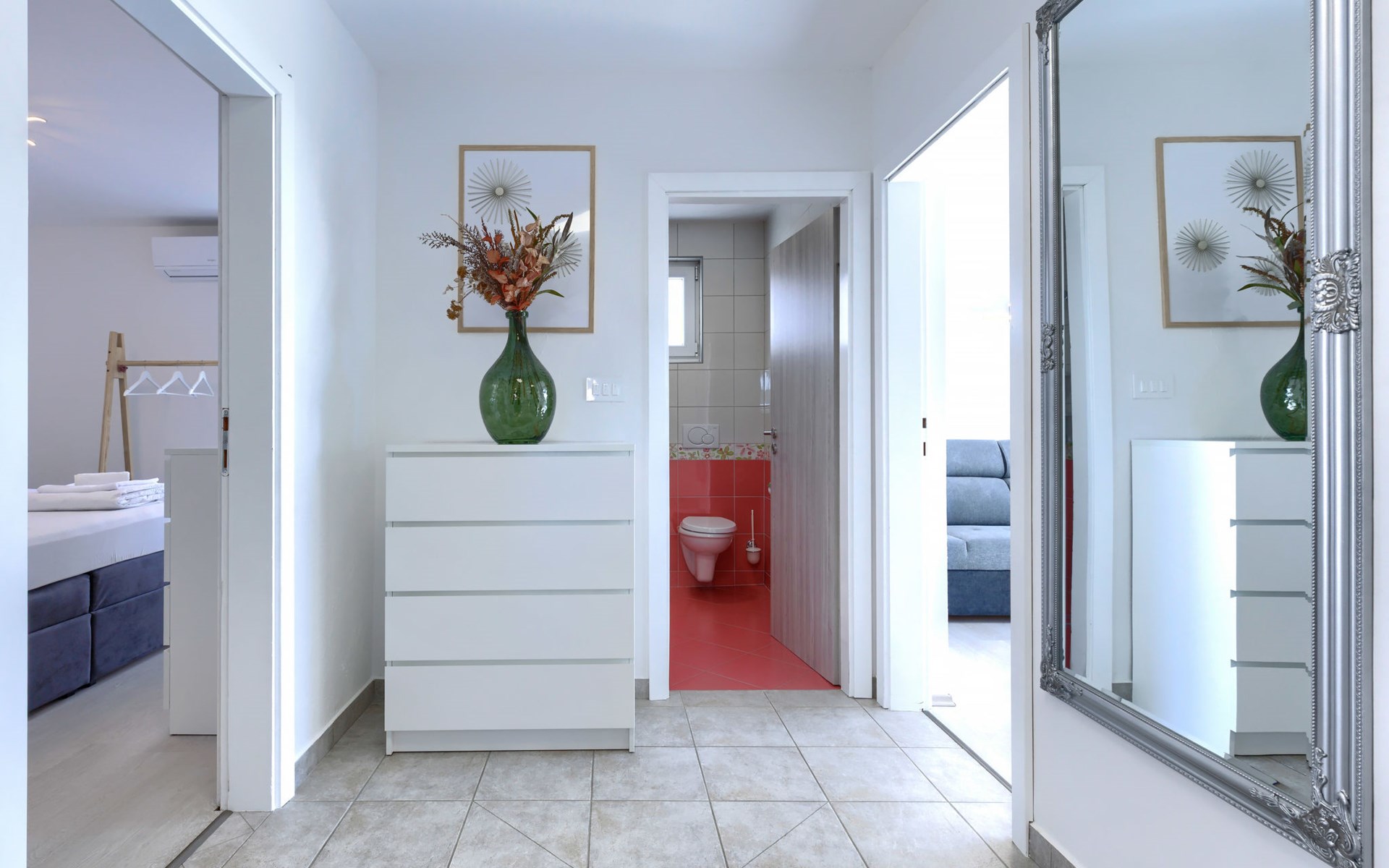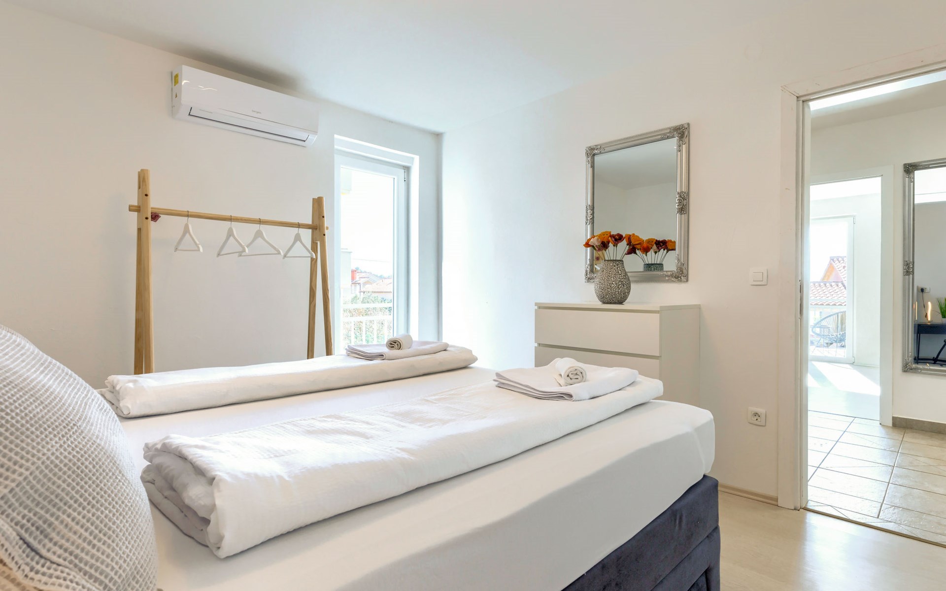 2-family house "Tatiana". 1.7 km from the centre of Rabac, 6 km from the centre of Labin, in a sunny position on a slope, 1.7 km from the sea, 1.7 km from the beach. Private: swimming pool angular (5 x 3 m, depth 140 cm, seasonal availability: 01.Jun. - 12.Oct.) with salt-electrolysis pool-cleaning system. Outdoor shower, terrace (20 m2), garden furniture, barbecue, pool maintenance by the owner/gardener. In the house: internet access. Parking (for 2 cars) at the house on the premises. Shop 1 km, supermarket 7 km, restaurant 1 km, bus stop 1.8 km, pebble beach 1.7 km. Please note: airfield 45 km from the property.