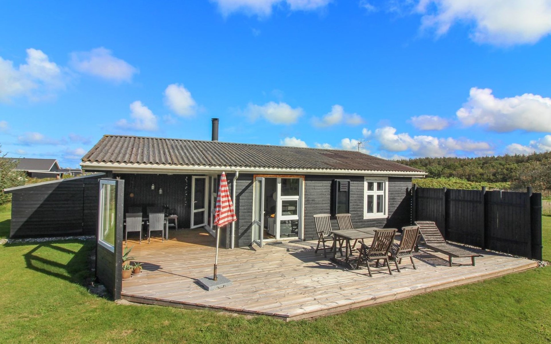 Single-family house, built in 1980. 650 m from the sea. Private: natural state property 1'200 m2. Terrace (44 m2). Grocery 1.2 km. The owner does not accept any youth groups.