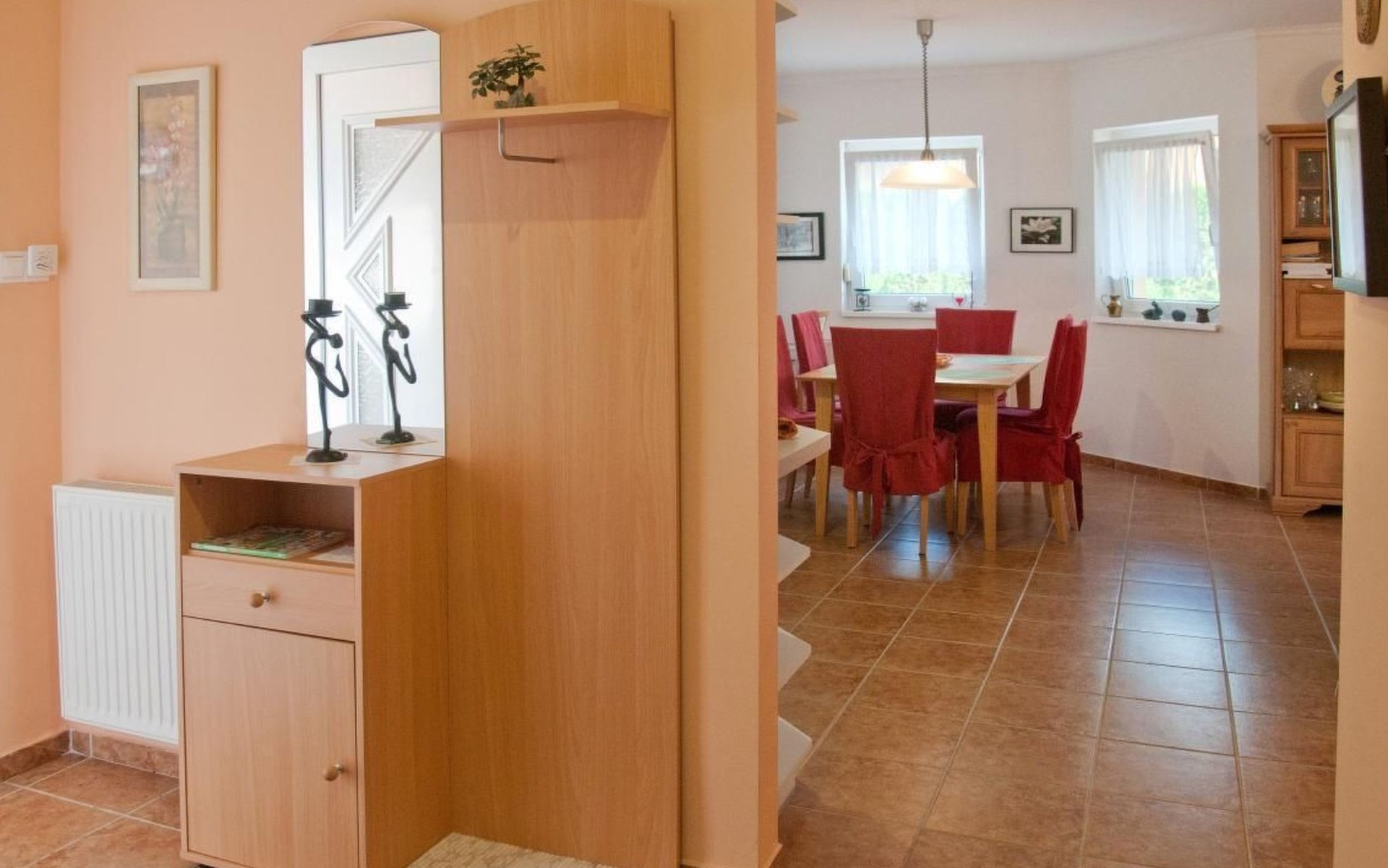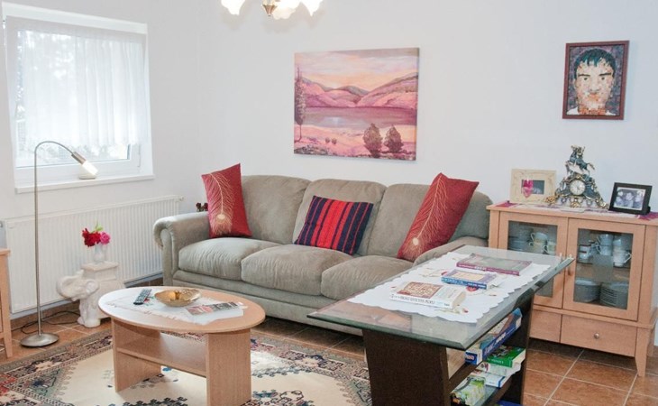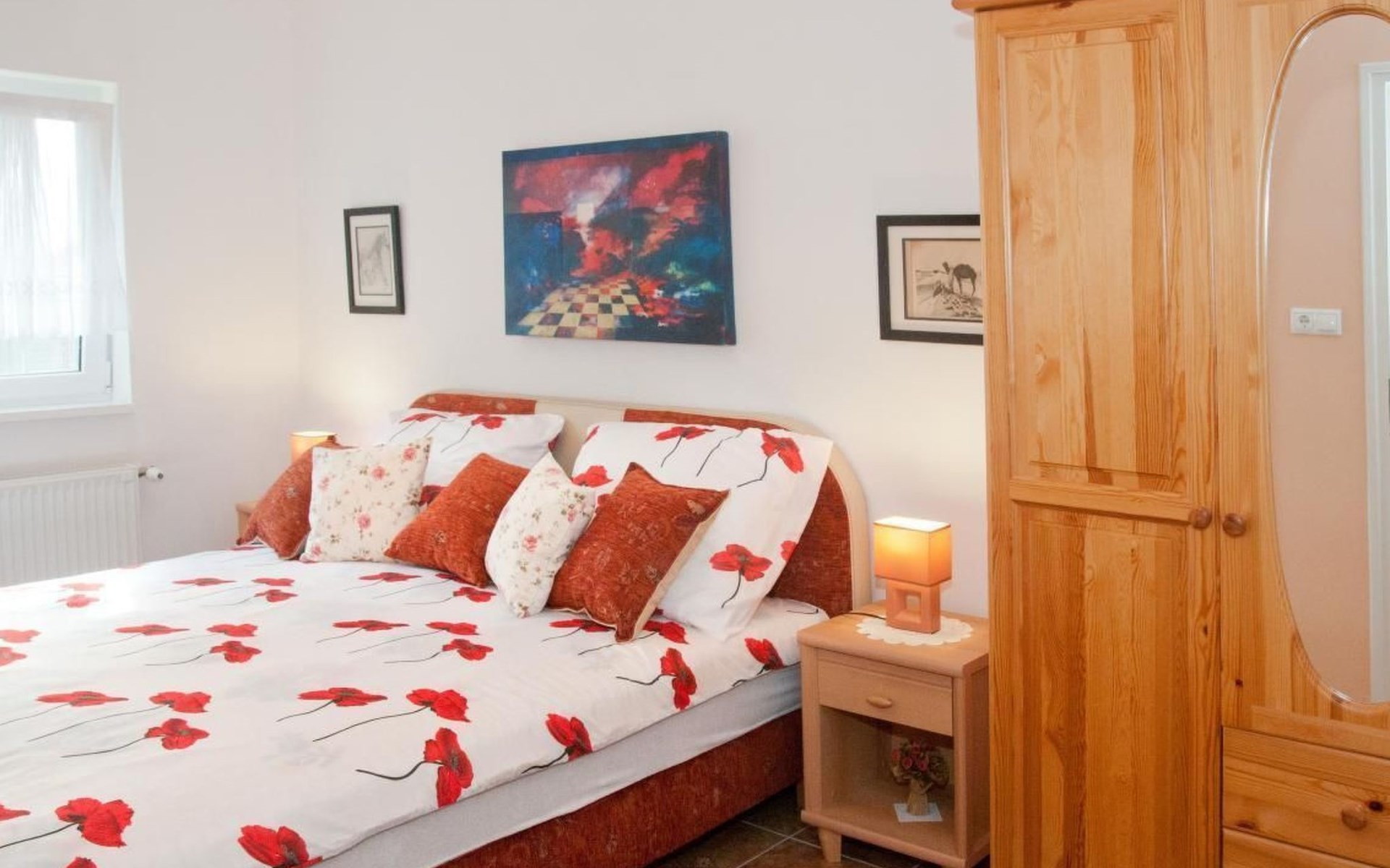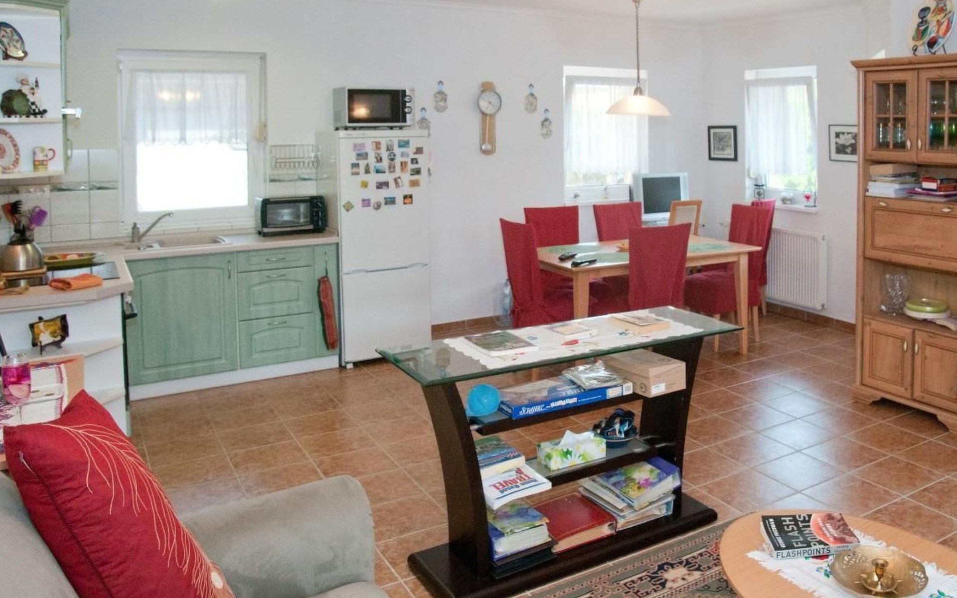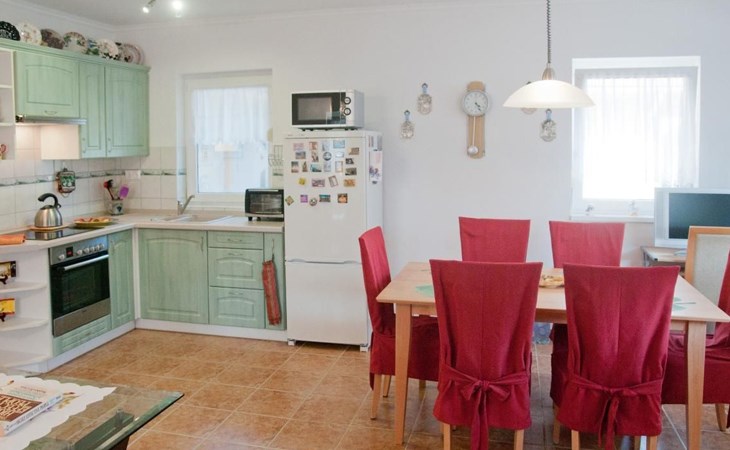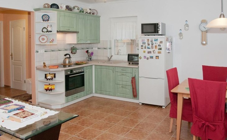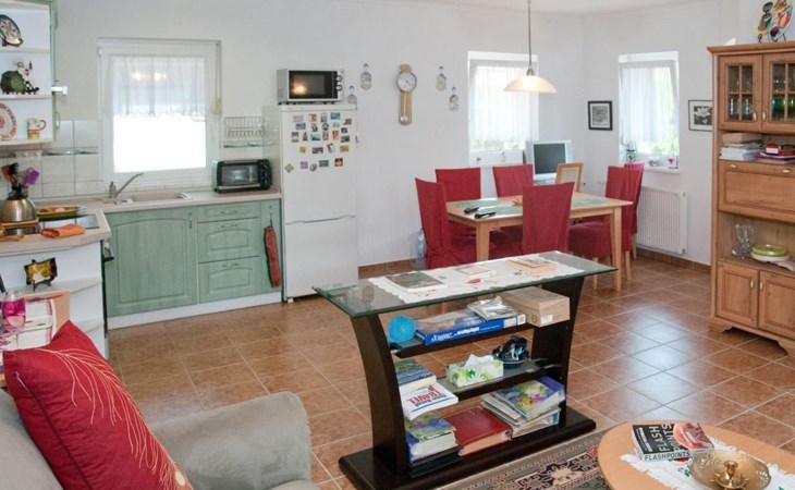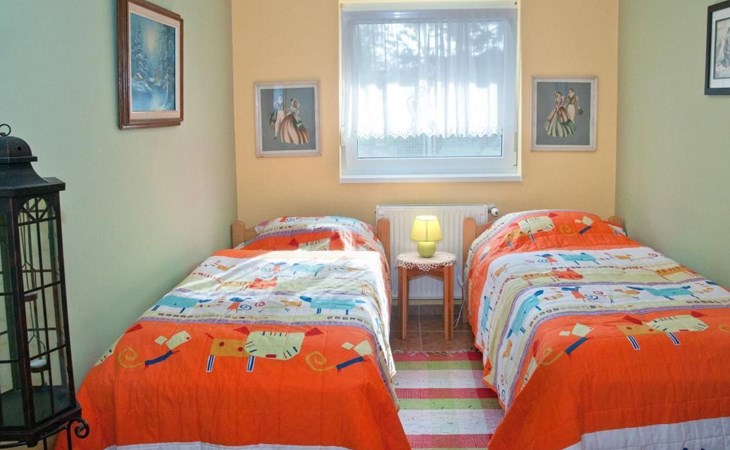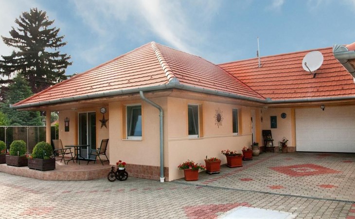 Are you looking for a high-quality holiday home for up to 6 people on the south side of Lake Balaton in Balatonbereny? Our holiday home "Steffi K" is the right place for you. Please note that normal beds are available for four people. A possible fifth and sixth person sleeps on a sofa bed in the living room, another person sleeps on a mobile travel cot in the living room. A cot for a small child is also available. The house is equipped with W-LAN. Please note that we have to charge a visitor's tax per person and day from the age of 18. We offer you a house without the stress of the surroundings and yet within a short distance of all the things you need for a good holiday, such as restaurants, shops for daily needs, post office, doctor, train, bicycle rental. Of course, there are also some bicycles and a children's trailer in your holiday home, which can be used depending on availability. You can also use a gas barbecue. For colder days, we have a wonderful barrel sauna in the garden for up to 8 people, which is very popular on cold days. Our manager manages the keys for this and will also provide you with the necessary sauna towels for a washing fee. Please do NOT make any infusions in the sauna. You only pay for electricity if the total electricity consumption during your holiday exceeds 200kwh. After that one kwh costs 20ct.On our property you will find a double swing for your children and also a trampoline. A table tennis table completes the offer. You will find a lido 1000 metres away and for those who like nude bathing there is a very nice lido 2 km away. The cycle path around Lake Balaton also leads through our village. Keszthely, the largest town on Lake Balaton, is 15 kilometres away. It offers a lot of sights, a very nice lido, a really beautiful boulevard and of course all the necessary shopping facilities you can think of for your holiday. There is also a hospital there. And of course a lot of restaurants. The world-famous Heviz thermal spa is about 17 kilometres from Balatonbereny. In 20km you will find another extremely beautiful thermal bath in Zalakaros and for friends of unspoilt nature the Kissbalaton area begins in 15km. You will find further suggestions in an information folder in the house on arrival. Your contact person, who will give you the keys, speaks German and will also answer any questions you may have. should you ever want to come to us with more than 6 people, there is the possibility of renting another, also very high quality holiday home for up to 8 people in the immediate vicinity of your house. Please note that according to EU law you must also carry a child's identity card for children of all ages. This may be required at borders and must also be available for registration with the tourist authorities. We wish you a relaxing and stress-free holiday with us. If you like it, please visit us again. We would be pleased.Short descriptionOther : Non-smoking houseShort description 1Number of kitchens : 1Living room 1Other living room equipment : can be equipped with additional guest bed for fifth personBedroom 1Other bedroom equipment : usual wardrobesBedroom 2Other bedroom equipment : usual wardrobesSurroundingsBicycle rentalSports facilities in the area : Bicycle toursSurrounding area 1Excursion possibilities : Bicycle circuit around Lake Balaton, boat trips on Lake Balaton, thermal baths Heviz and Zalakaros, Budapest, many museums in Keszthely, African Museum on the north side of the lake, all places around Lake Balaton as well as Budapest can be reached by trainLocation description : Balatonbereny is a holiday resort on the south side of Lake Balaton with a village character.Our house is located completely outside the noise of the Balaton railway in a very quiet side street, an oasis of peace for stressful people, in Balatonbereny you will find all necessary utilities within a short distance and the connection to other places is very good.garden and outdoor facilitiesRecreational facilities at the property : outdoor pool for shared use, swimming poolGarden equipment : garden furniture available, barbecue, gazebo, playground equipment