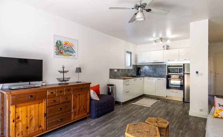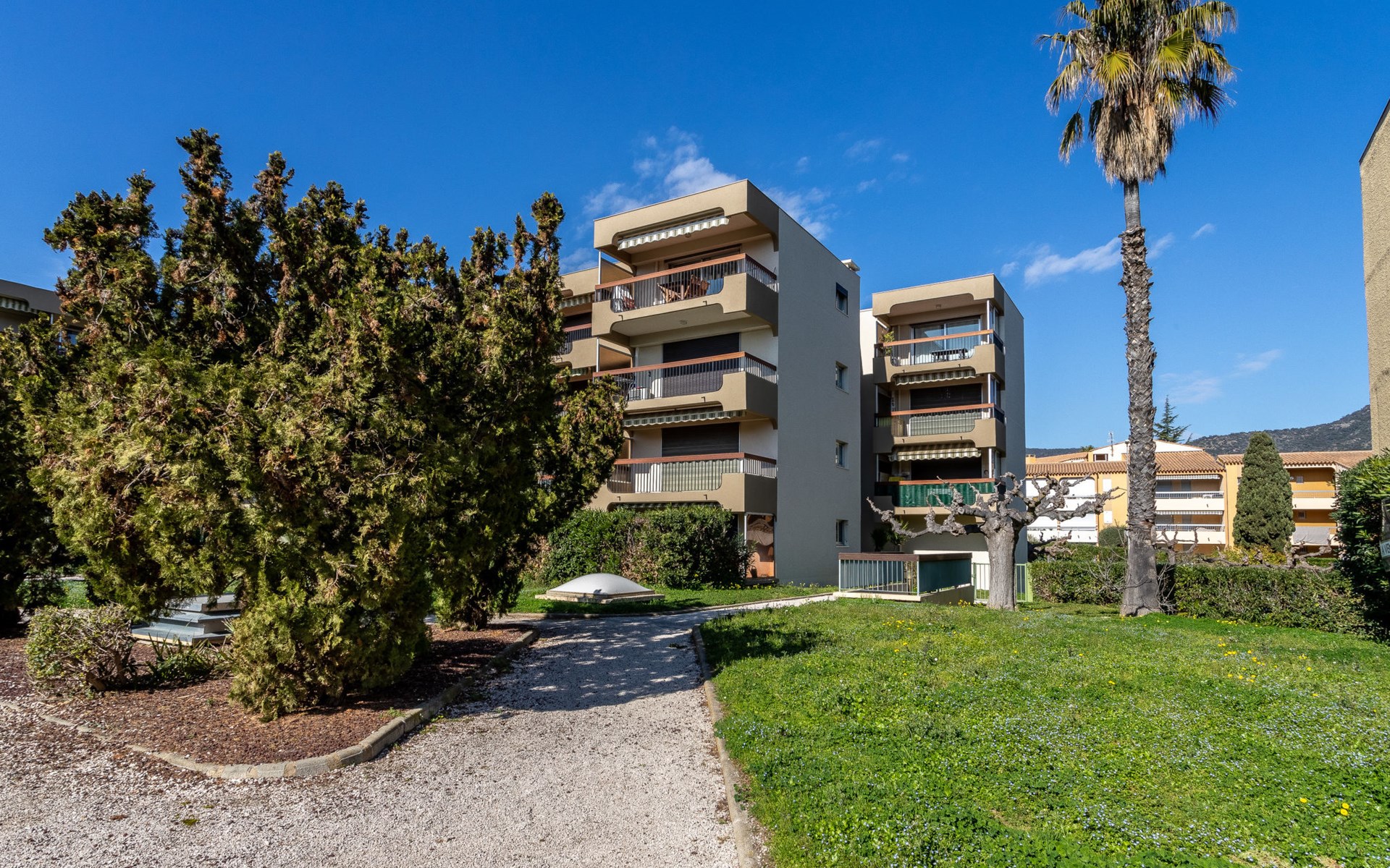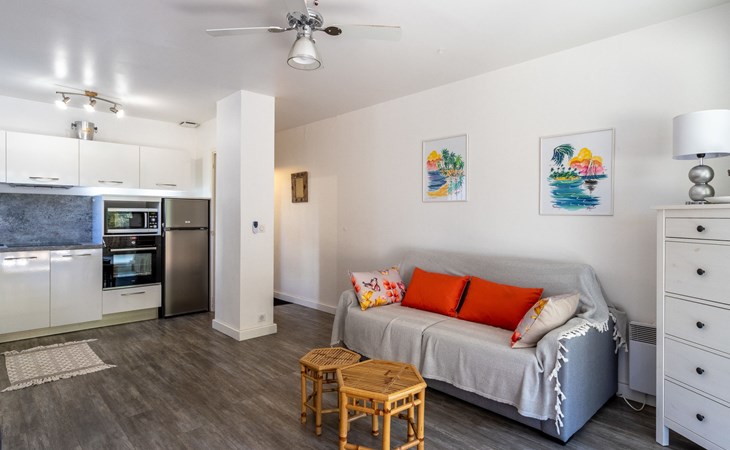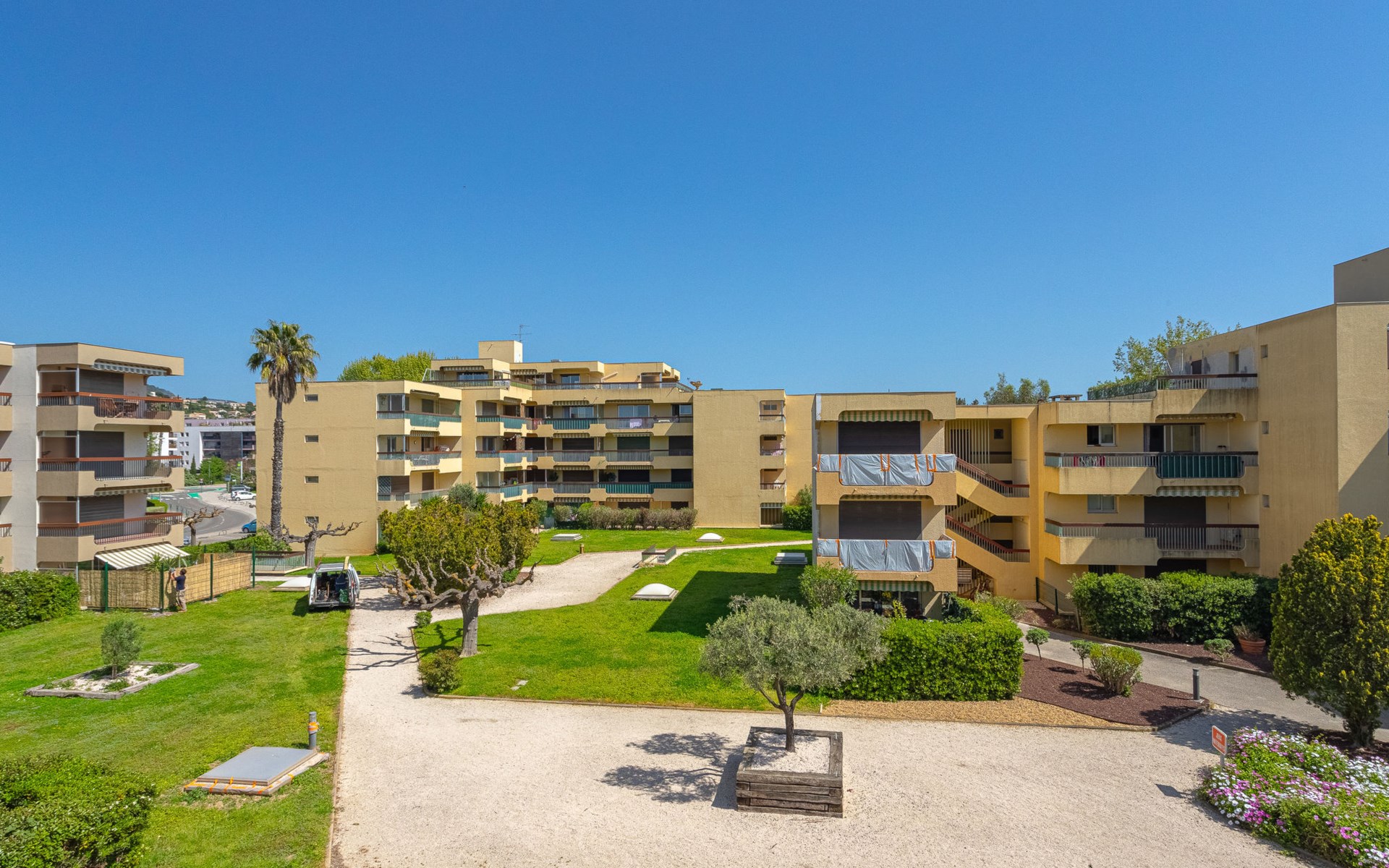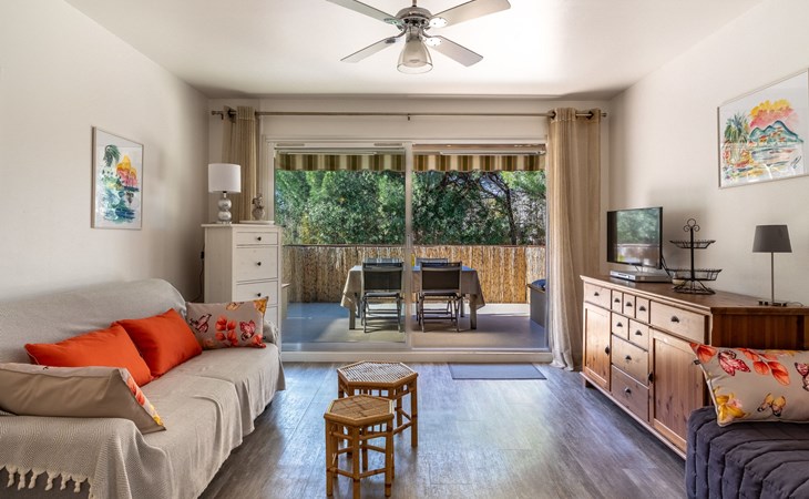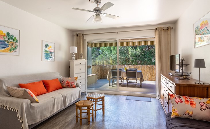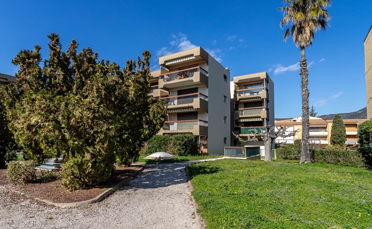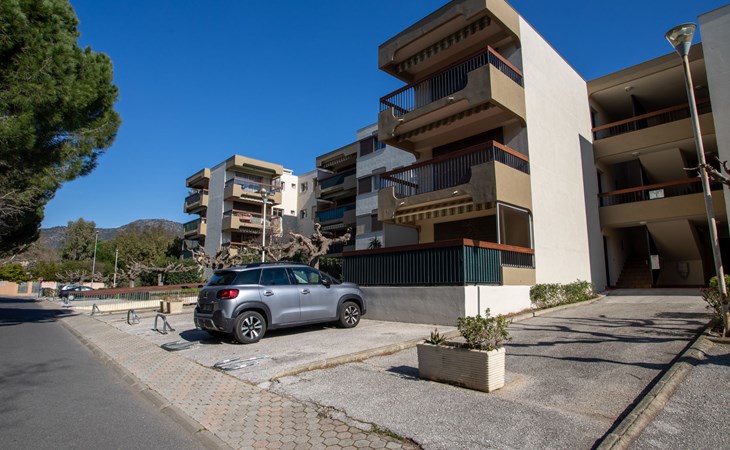 Residence "Parcs du Lavandou". On the outskirts, 700 m from the centre of Lavandou, in a quiet position, 800 m from the sea. For shared use: garden with lawn and plants, public parking on the road. Shop 800 m, supermarket 400 m, restaurant, bakery, café 800 m, bicycle rental 400 m, 15 minute walk to the centre, bus stop "Lavandou Gare routière" 800 m, sandy beach "Lavandou" 800 m. Nearby attractions: Saint Tropez 40 km, Magic World 26 km, Parc Olbius Riquier 21 km, Le Jardin des Méditerranées 15 km. Hiking paths: Sentiers du Littoral. The keys‘ handover takes place by the agency Interhome in Le Lavandou. parking available from 06/05/2021 to 08/28/2021.