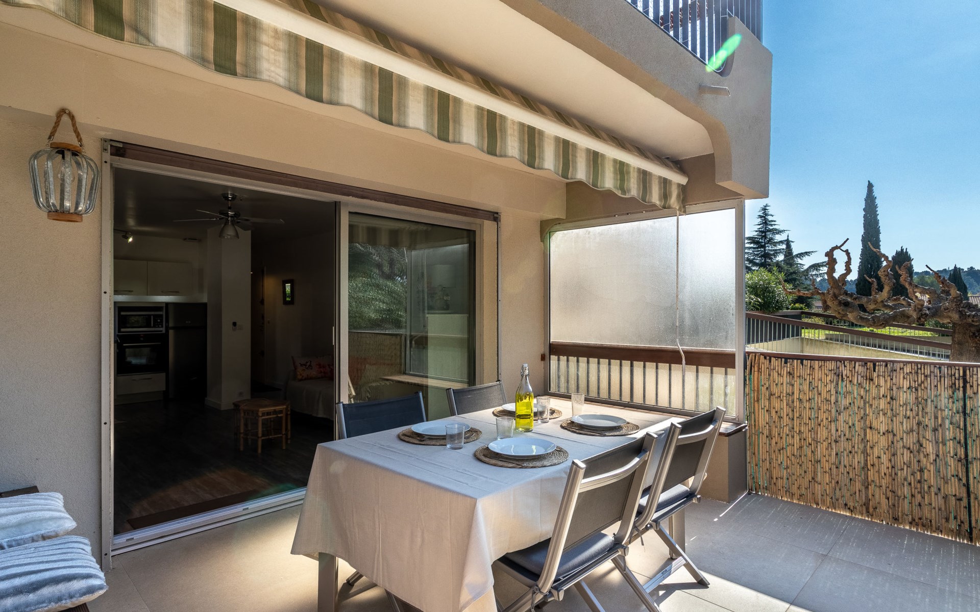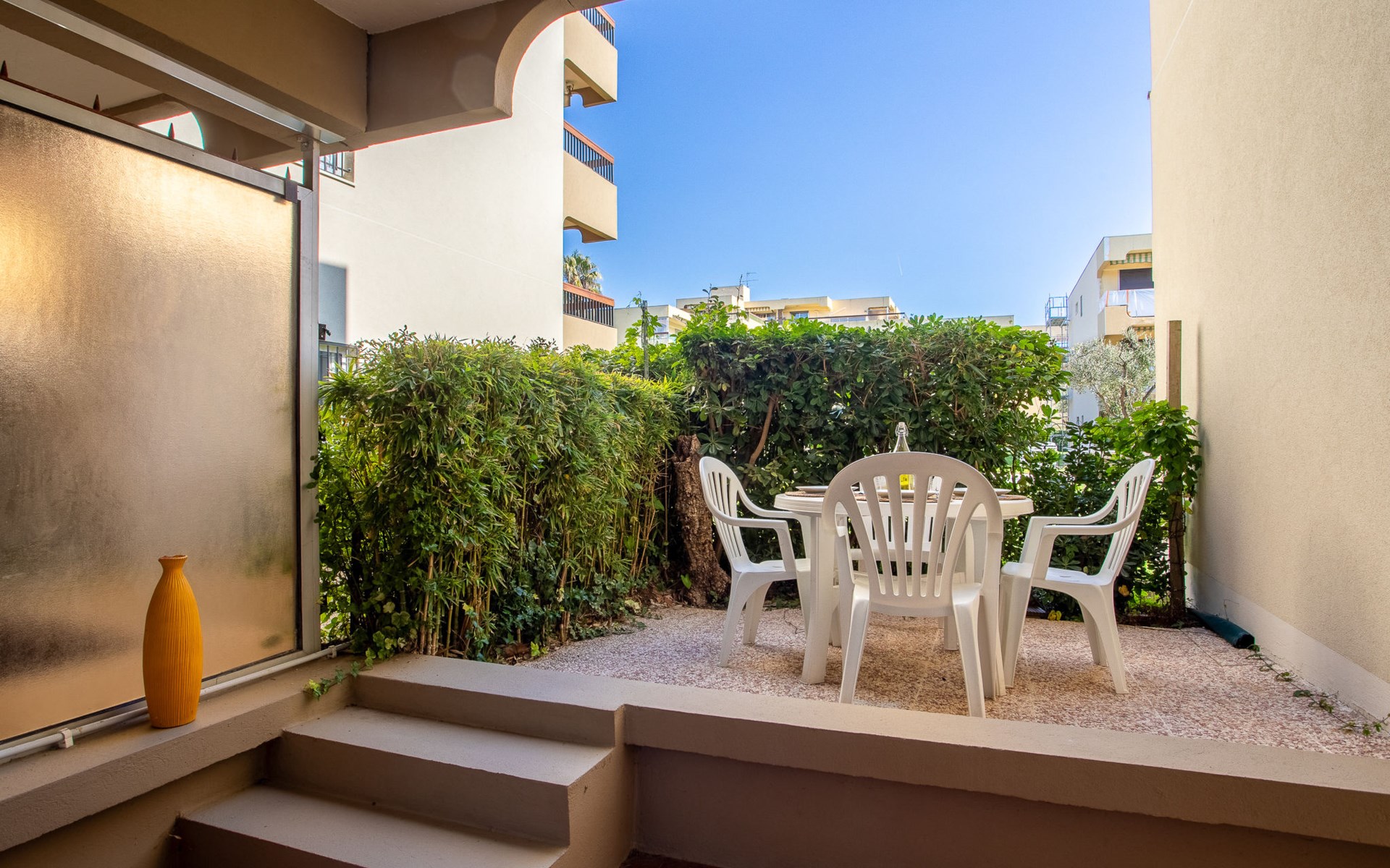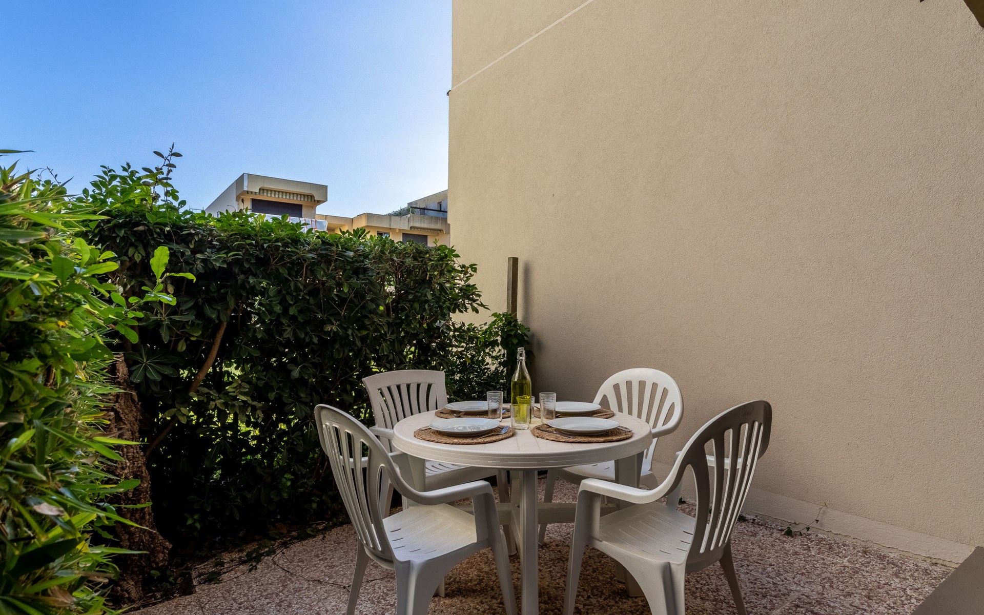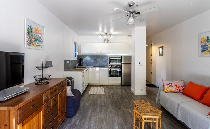 Residence "Parcs du Lavandou". On the outskirts, 700 m from the centre of Lavandou, in a quiet position, 800 m from the sea. For shared use: garden with lawn and plants, public parking on the road. Shop 800 m, supermarket 400 m, restaurant, bakery, café 800 m, bicycle rental 400 m, 15 minute walk to the centre, bus stop "Lavandou Gare routière" 800 m, sandy beach "Lavandou" 800 m. Nearby attractions: Saint Tropez 40 km, Magic World 26 km, Parc Olbius Riquier 21 km, Le Jardin des Méditerranées 15 km. Hiking paths: Sentiers du Littoral. The keys‘ handover takes place by the agency Interhome in Le Lavandou. parking available from 06/05/2021 to 08/28/2021.