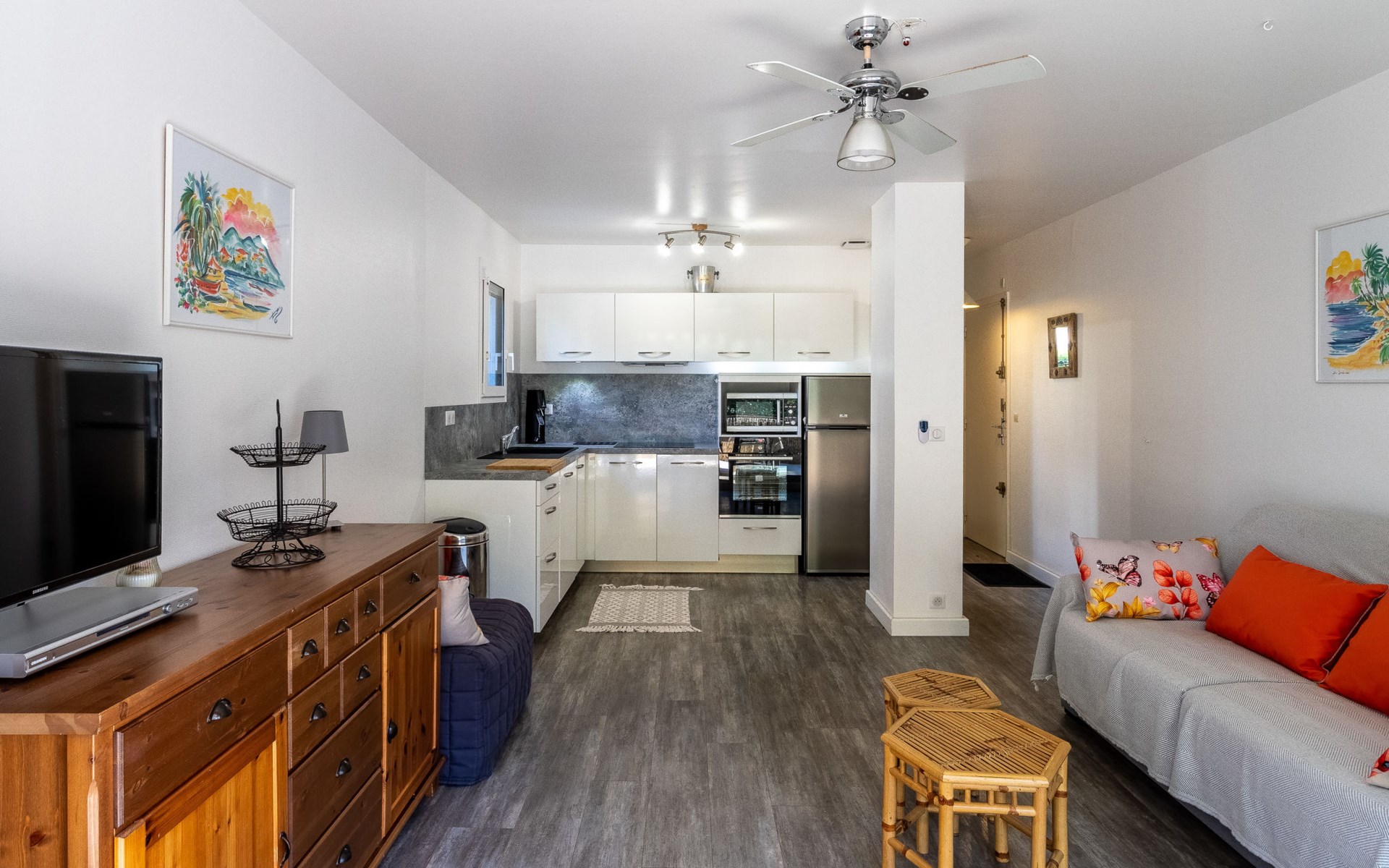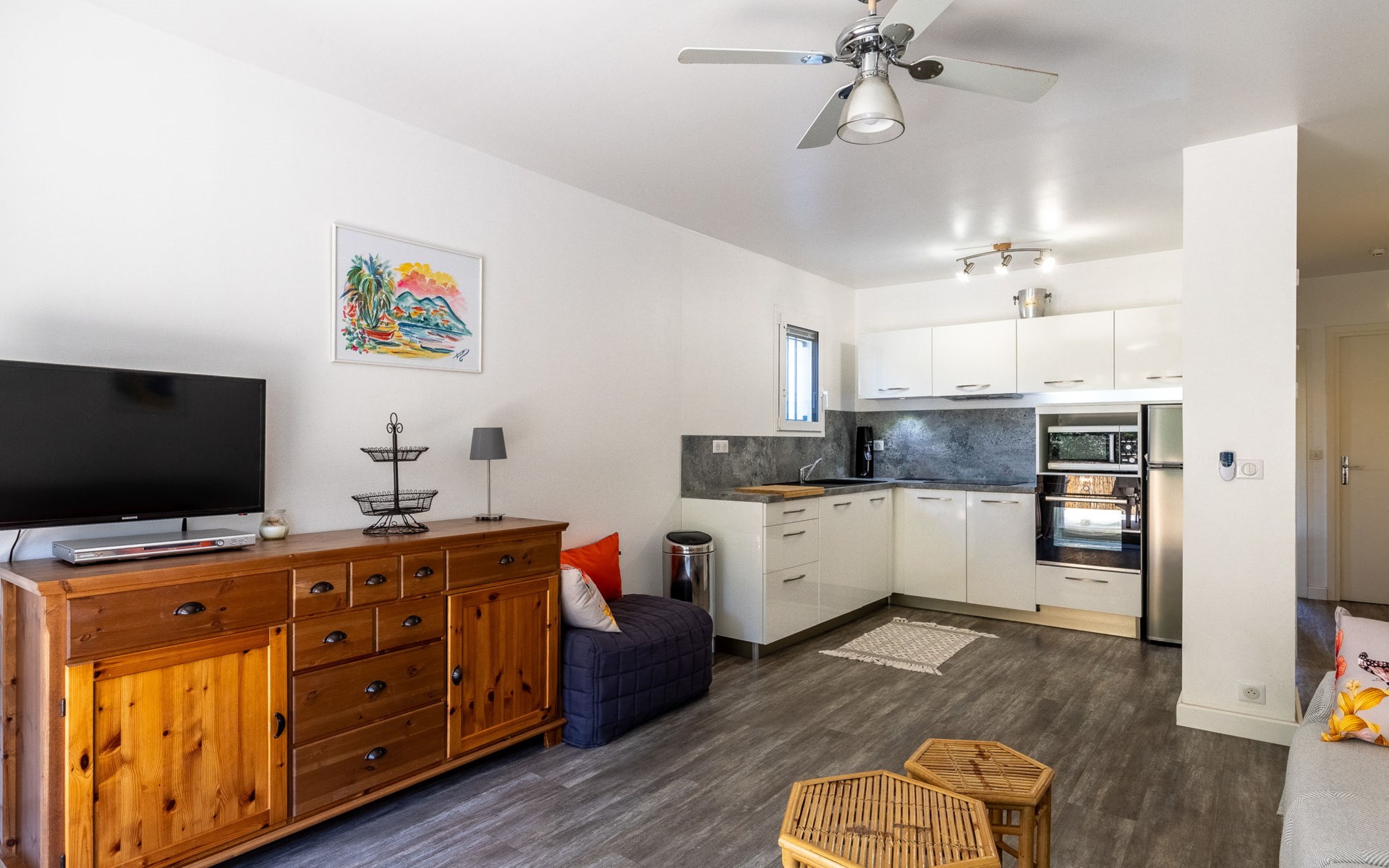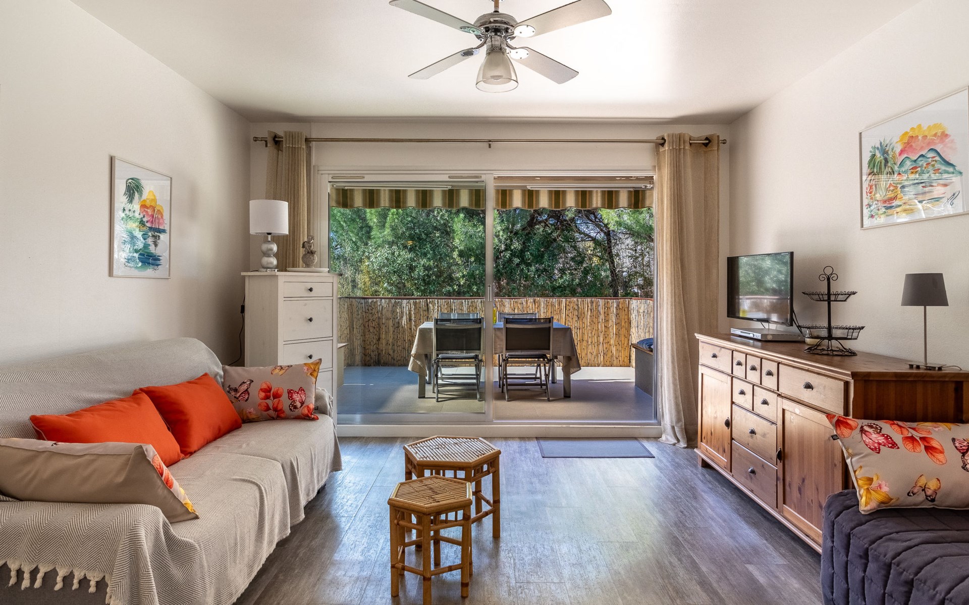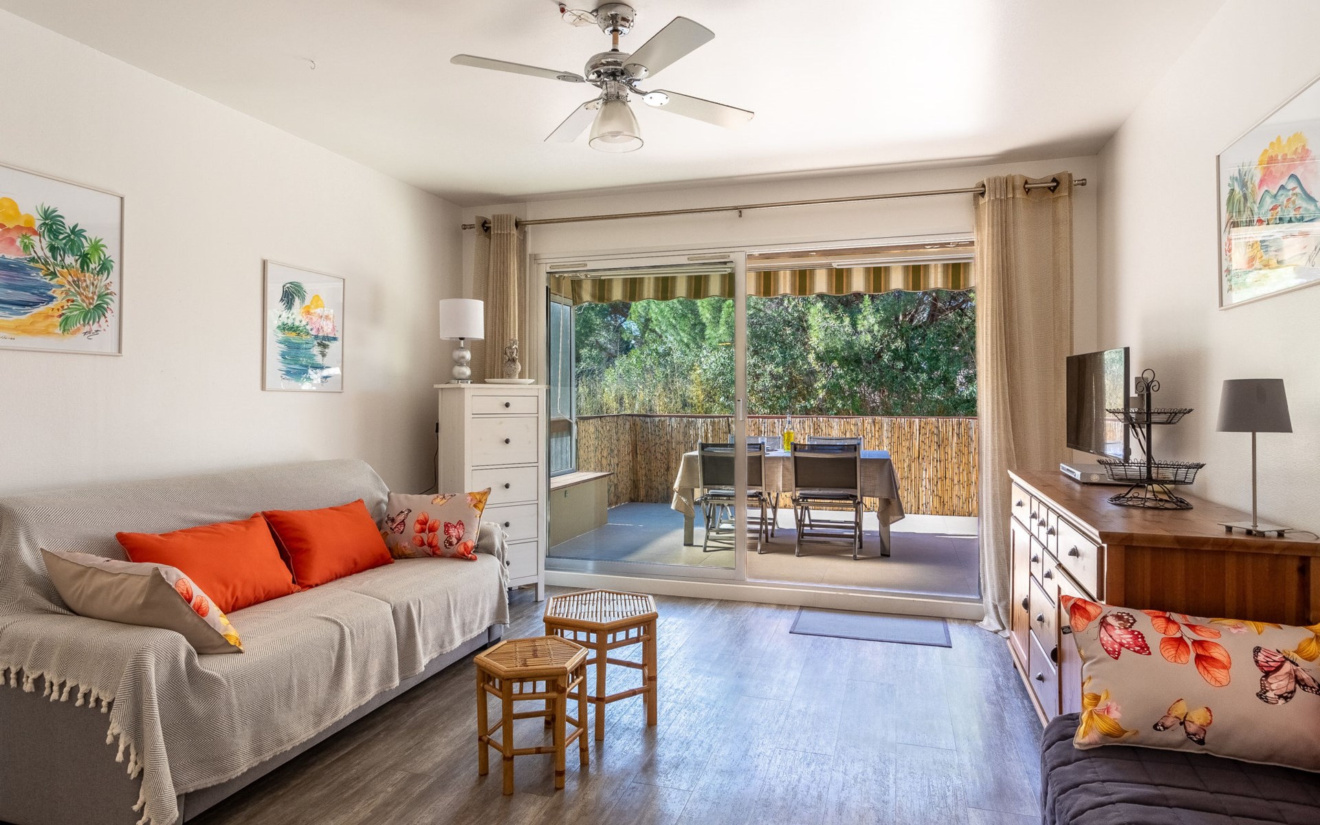 Residence "Parcs du Lavandou". On the outskirts, 700 m from the centre of Lavandou, in a quiet position, 800 m from the sea. For shared use: garden with lawn and plants, public parking on the road. Shop 800 m, supermarket 400 m, restaurant, bakery, café 800 m, bicycle rental 400 m, 15 minute walk to the centre, bus stop "Lavandou Gare routière" 800 m, sandy beach "Lavandou" 800 m. Nearby attractions: Saint Tropez 40 km, Magic World 26 km, Parc Olbius Riquier 21 km, Le Jardin des Méditerranées 15 km. Hiking paths: Sentiers du Littoral. The keys‘ handover takes place by the agency Interhome in Le Lavandou. parking available from 06/05/2021 to 08/28/2021.