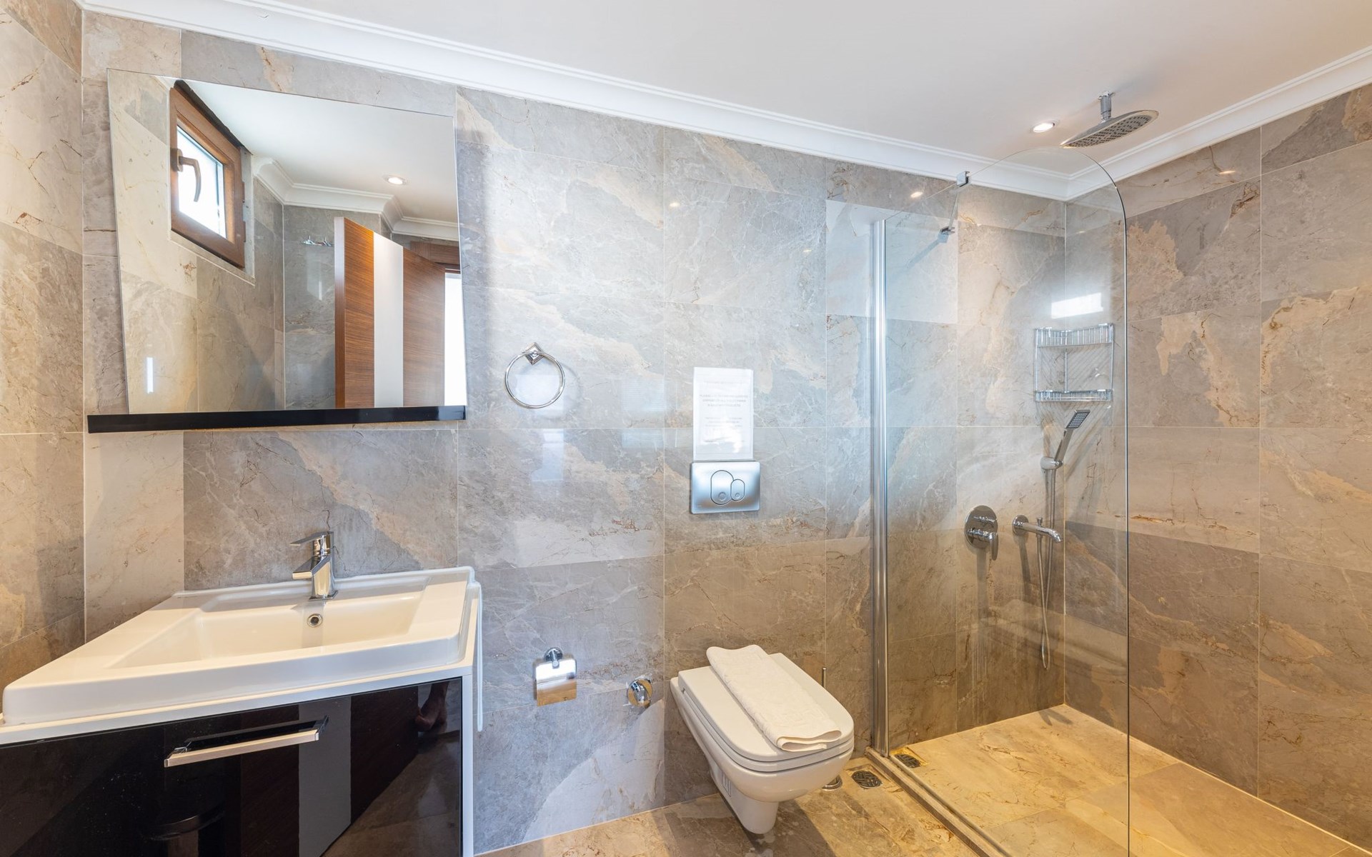 Inside, the house offers everything you need for a comfortable stay. Each of the six bedrooms has its own bathroom, ensuring maximum privacy for all guests. The air conditioning in all rooms ensures pleasant temperatures, regardless of the outside temperature. For your convenience, a washing machine, a gas cooker, a coffee machine, a dishwasher and a kettle are available. Thanks to solar energy, the accommodation is also energy-efficient.