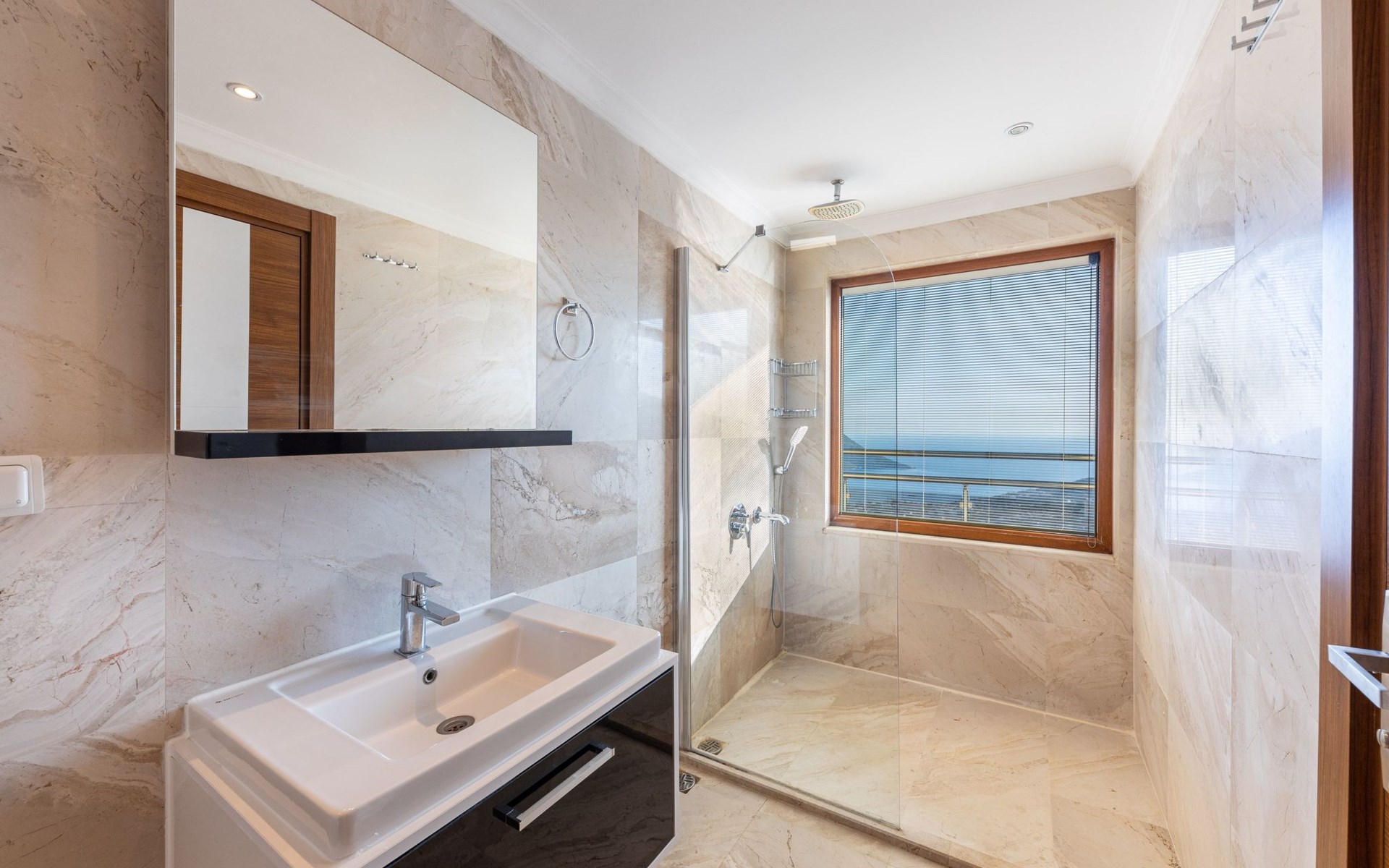 The outdoor area of our holiday home is just as impressive. A spacious terrace and balconies invite you to enjoy the fresh air and the fantastic sea view. The garden is for your exclusive use and offers ideal conditions for relaxing in a private atmosphere. Whether you want to sunbathe or simply dine al fresco, you will find the perfect place here.