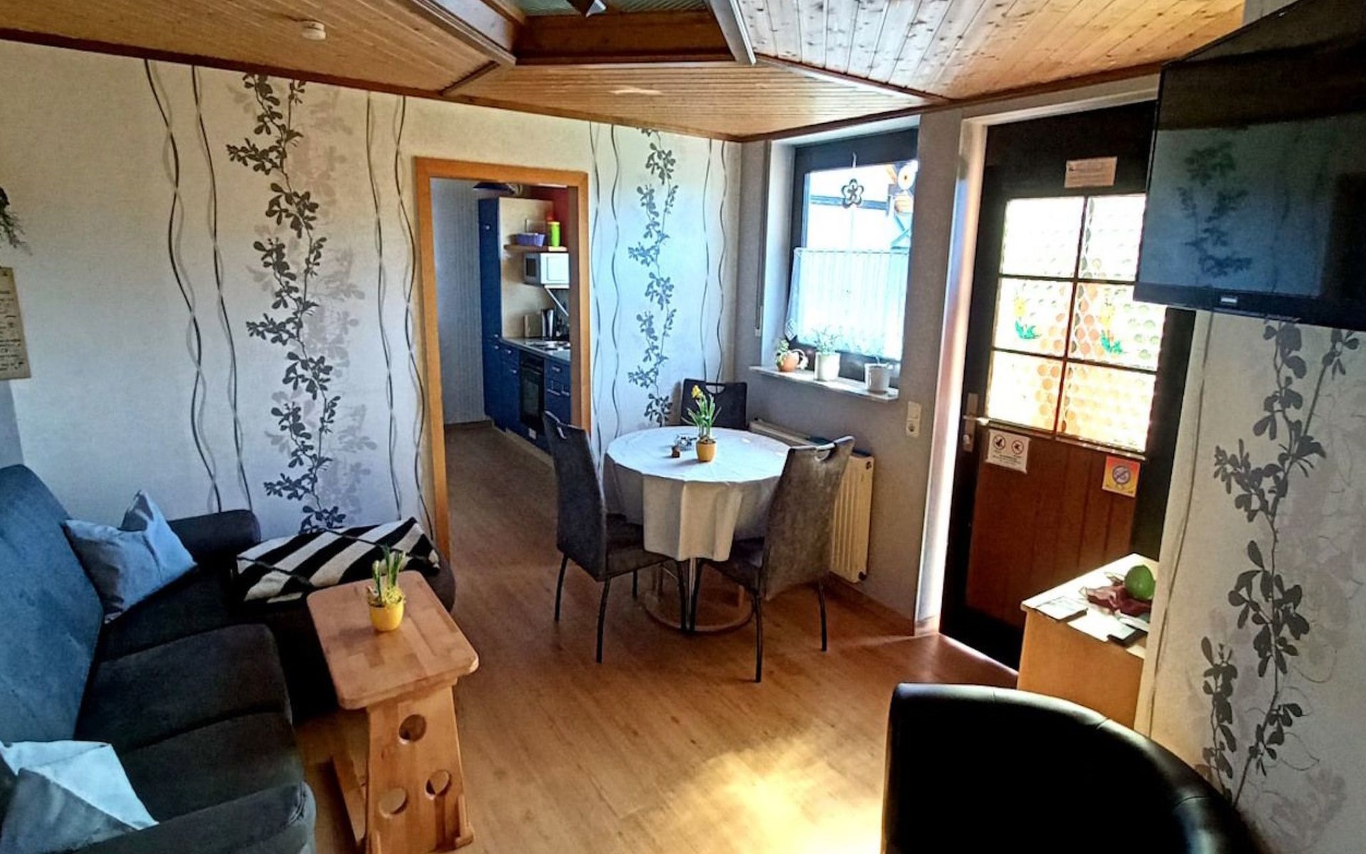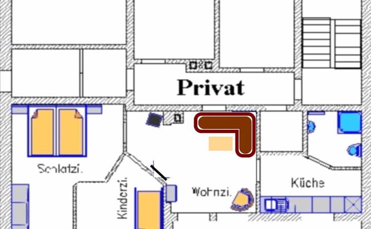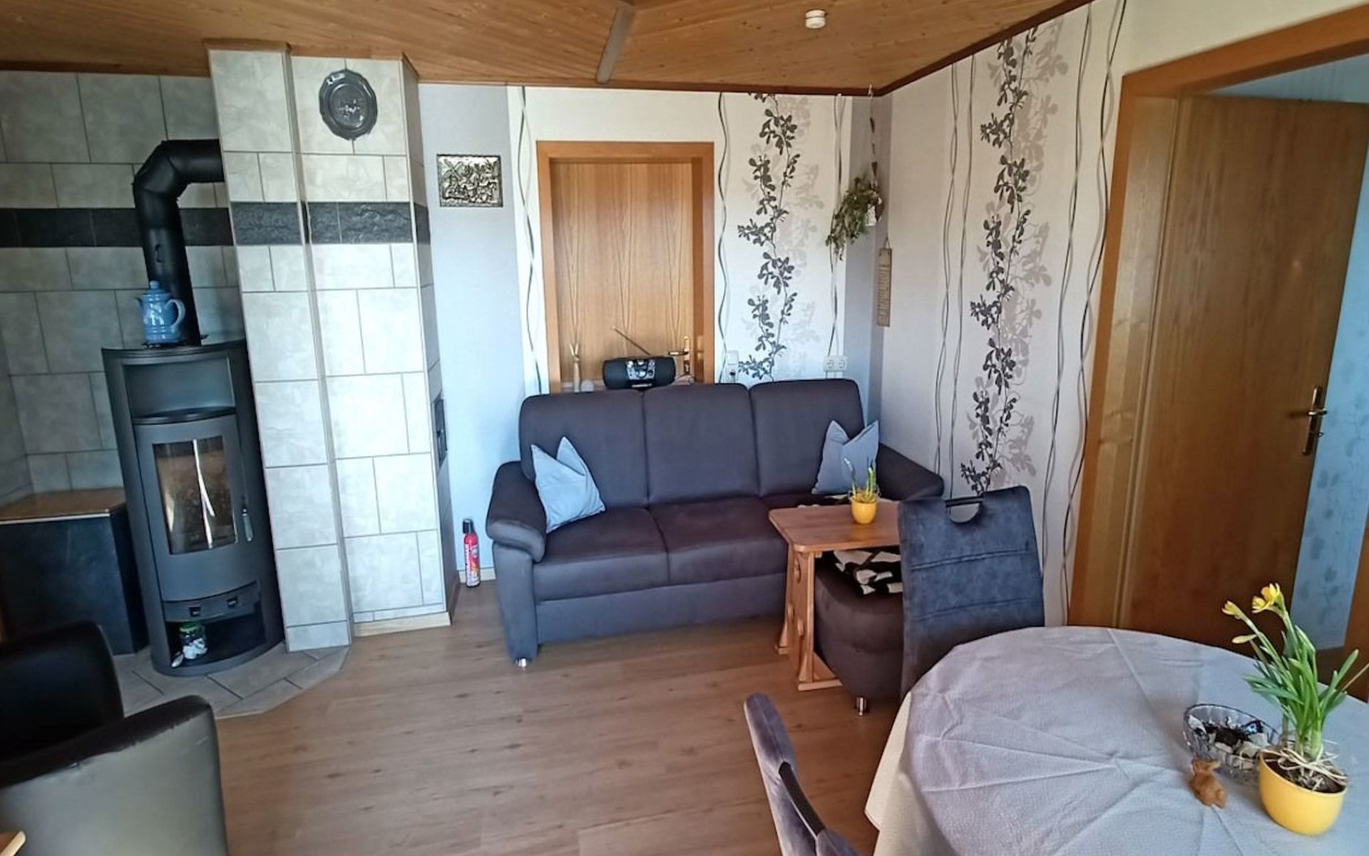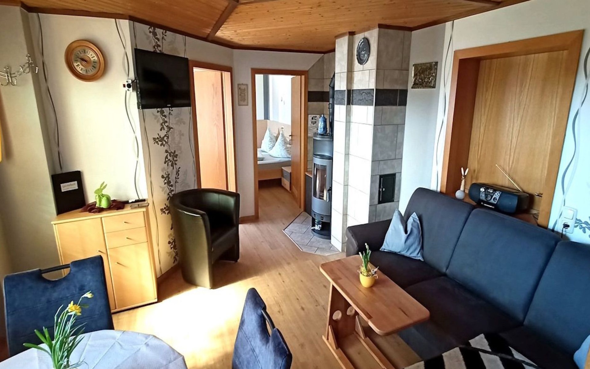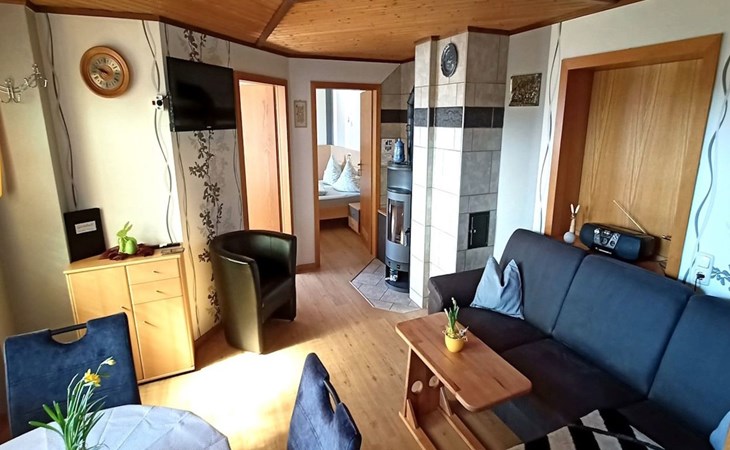 Inside the flat, you will find everything you need to make your stay both comfortable and cosy. A bedroom with a double bed, another with a single bed, a fully equipped kitchen, a living/dining room with a cosy wood-burning stove (firewood included) and a bathroom with shower and WC await you. The modern facilities also include satellite TV, radio, a telephone with its own number for your privacy and free WLAN for an undisturbed connection to the outside world.