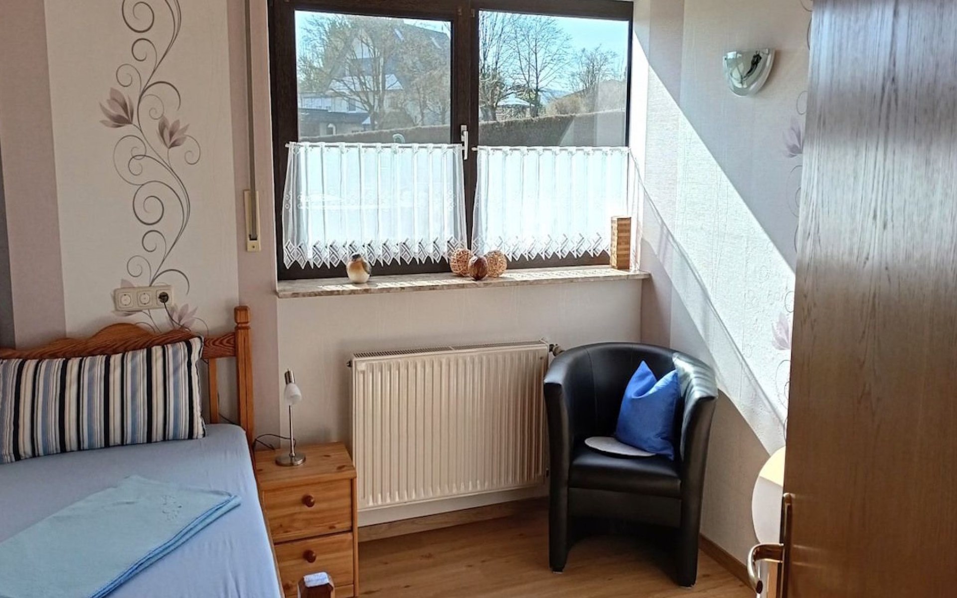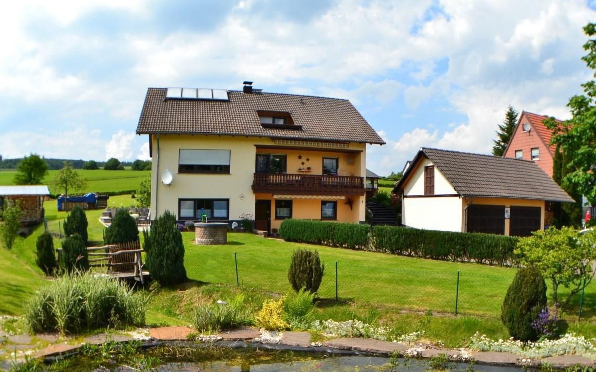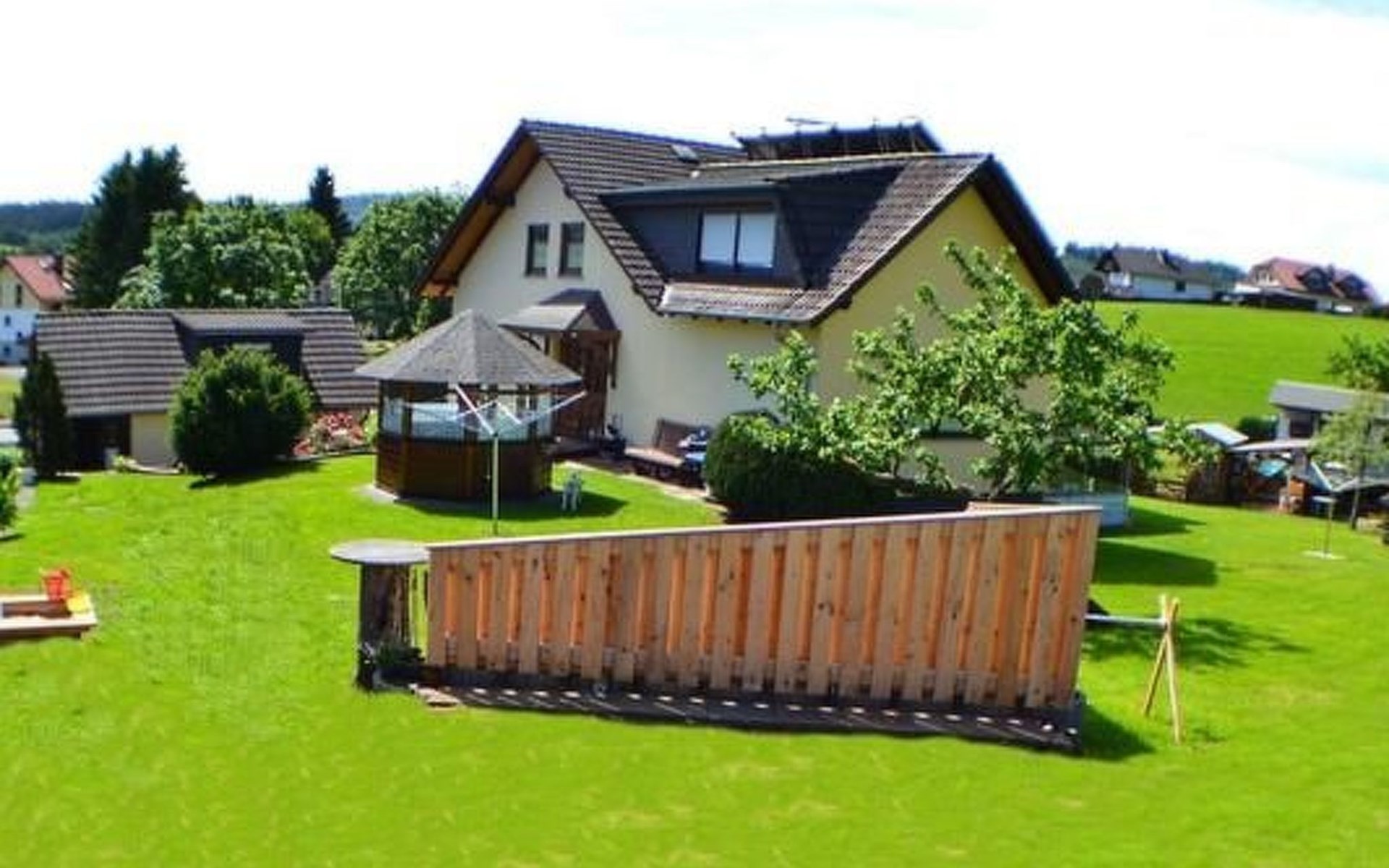 The outdoor area invites you to relax and linger with a garden, barbecue facilities and several seating areas as well as a pavilion. A particular advantage is the opportunity to enjoy breakfast outside under our balcony with awning - a wonderful way to start the day. The private car park also ensures a carefree arrival and mobility during your stay.