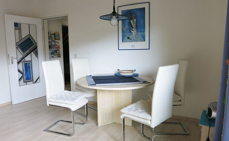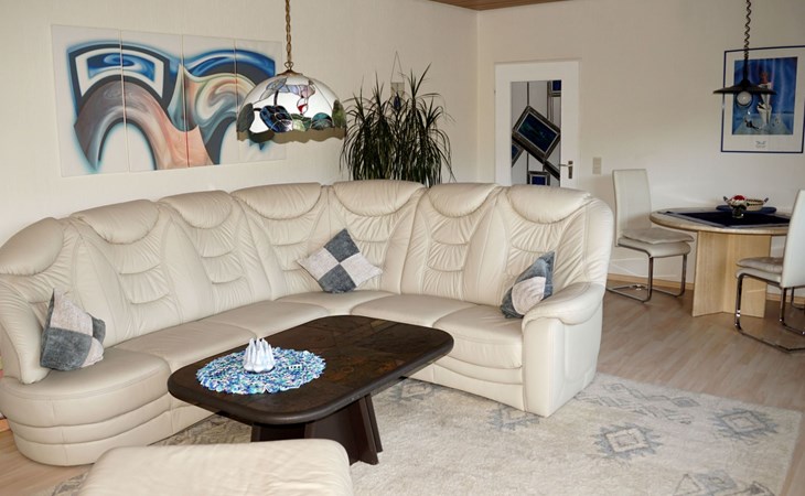 The outdoor area is characterised by an inviting terrace, which is directly accessible from the living/dining area. Here you can relax in peace and quiet and end your day in peace. As a detached holiday flat, this accommodation also offers an exclusive and undisturbed atmosphere, ideal for getting away from it all and enjoying the peaceful surroundings to the full.