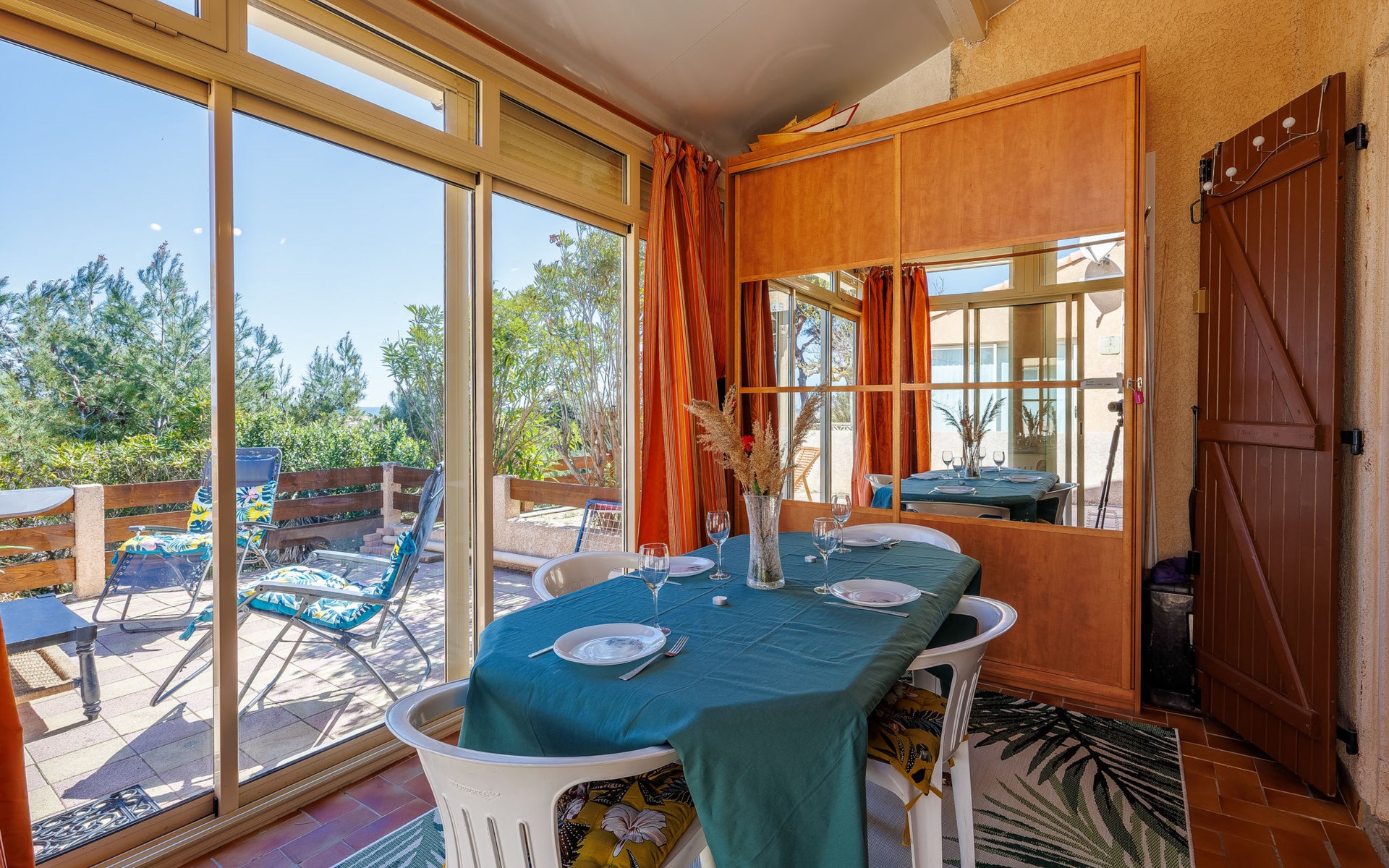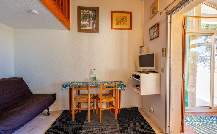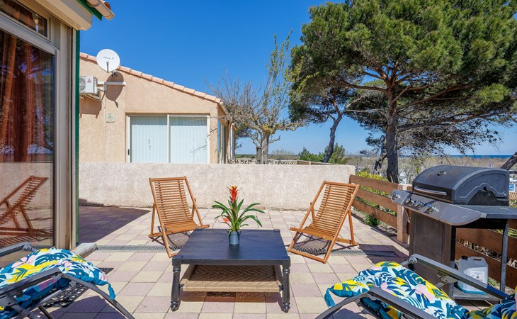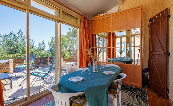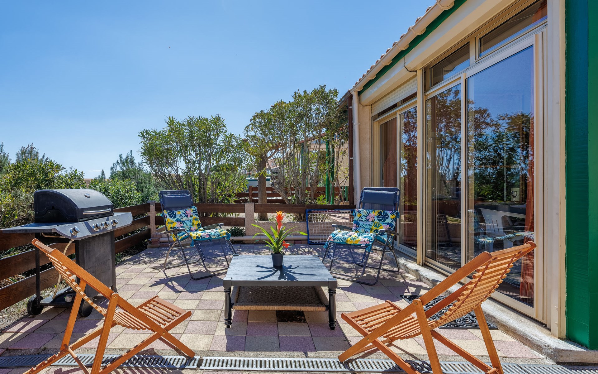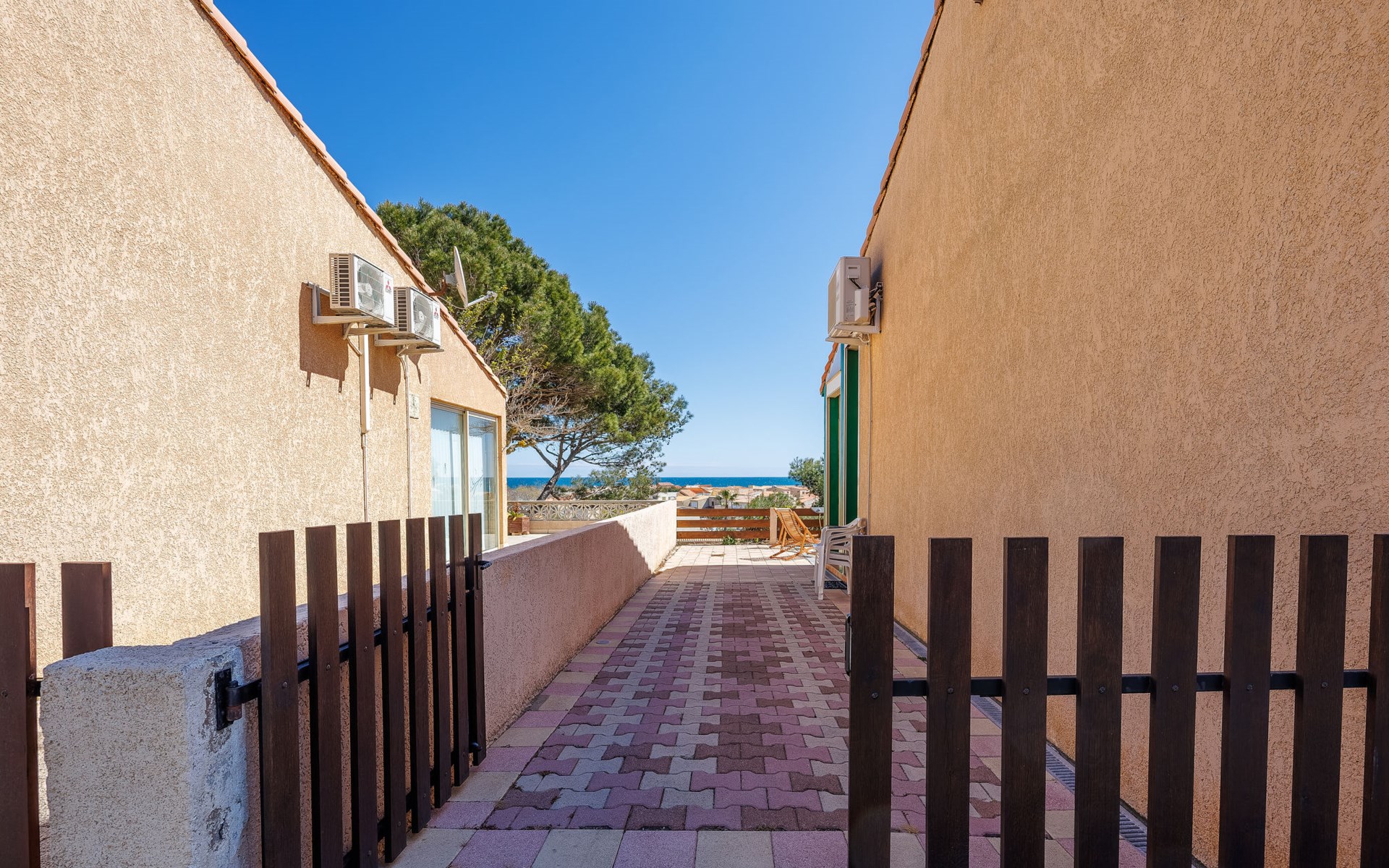 Holiday development "La Galion". 1 km from the centre of Saint Pierre-La-Mer, 20 km from the centre of Narbonne, 25 km from the centre of Béziers, 400 m from the sea, 400 m from the beach. Private: property 100 m2 (fenced), courtyard. Shop 1 km, grocery 1 km, supermarket 10 km, bakery 200 m, bus stop 450 m, railway station "Narbonne" 21 km, sandy beach 400 m. Nearby attractions: Ville de Narbonne 20 km, Ville de Carcassonne 78 km, Canal du Midi - Béziers 26 km, Wake Board - tyrelienne - voiles 4 km, Gruissan 12 km. Well-known lakes can easily be reached: Etang de Pissevaches 4 km. Hiking paths: Gouffre de l'Œil Doux 6 km, Massif de la Clape 10 km.
