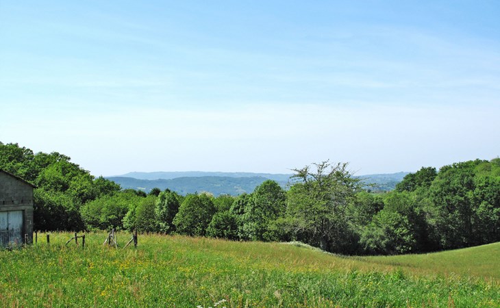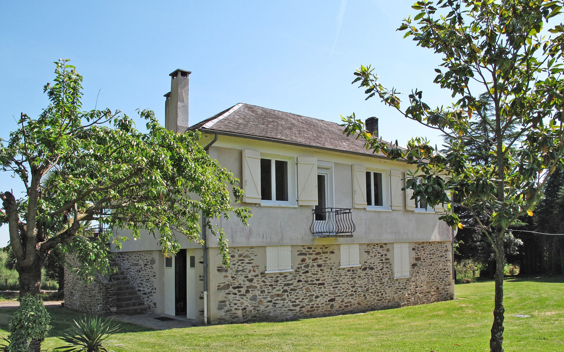 Single-family house "Freyssignes", 400 m a.s.l.. 5.6 km from the centre of Beaulieu-sur-Dordogne, 46 km from the centre of Brive, 60 km from the centre of Aurillac. Private: natural state property 2'300 m2 with trees, orchard. Stepped path (15 steps) to the house. Shop 4 km, supermarket 10 km, bus stop "Bretenoux - Biars" 9 km, outdoor swimming pool 5 km. Golf course (9 hole) 20 km.