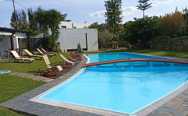 Outside, Casa da Boavista does not disappoint with its two swimming pools -one for adults and one for children-, terrace equipped with garden furniture, three sunbeds and a barbecue ideal for enjoying sunny days. The fully fenced grounds guarantee safety for children and pets, allowing everyone to freely enjoy the outdoor space. Furthermore, the covered bicycle parking and charging station for electric cars offer additional conveniences for environmentally-conscious guests.