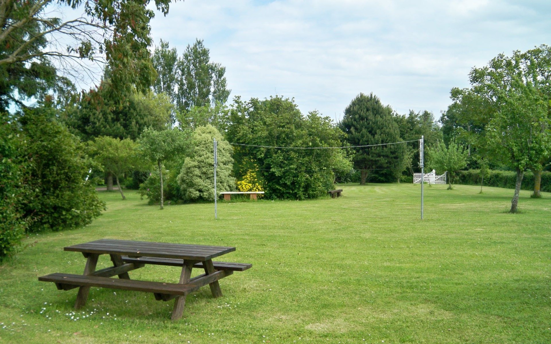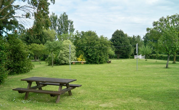 The holiday home is set in approx. 6,000 m² of fenced parkland, with many trees and plants. There is a parking space on the grounds. You can play a game of pétanque in the courtyard. There is also a net on the lawn for children to play volleyball or badminton. There are wooden picnic tables, a parasol and a barbecue.