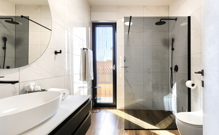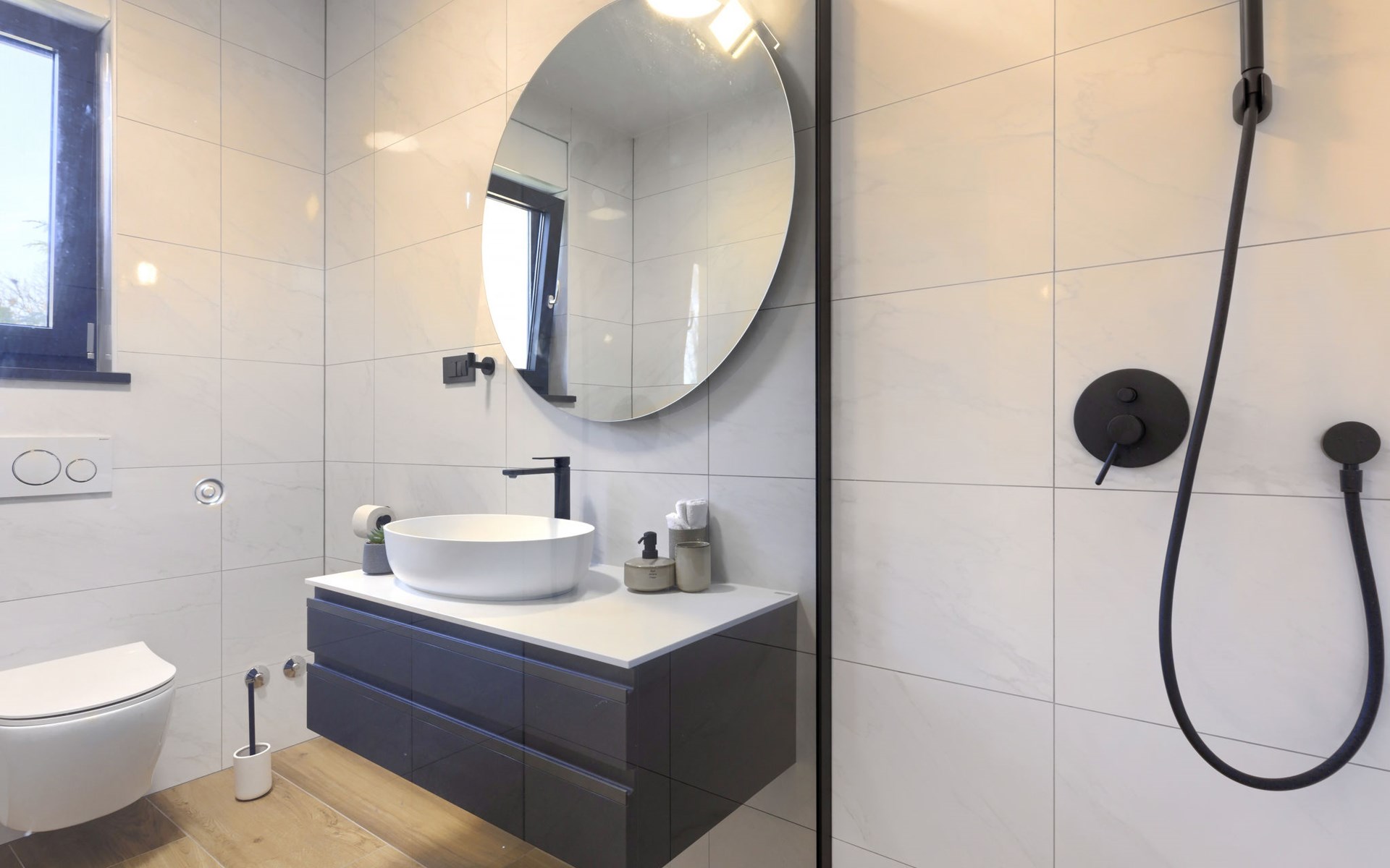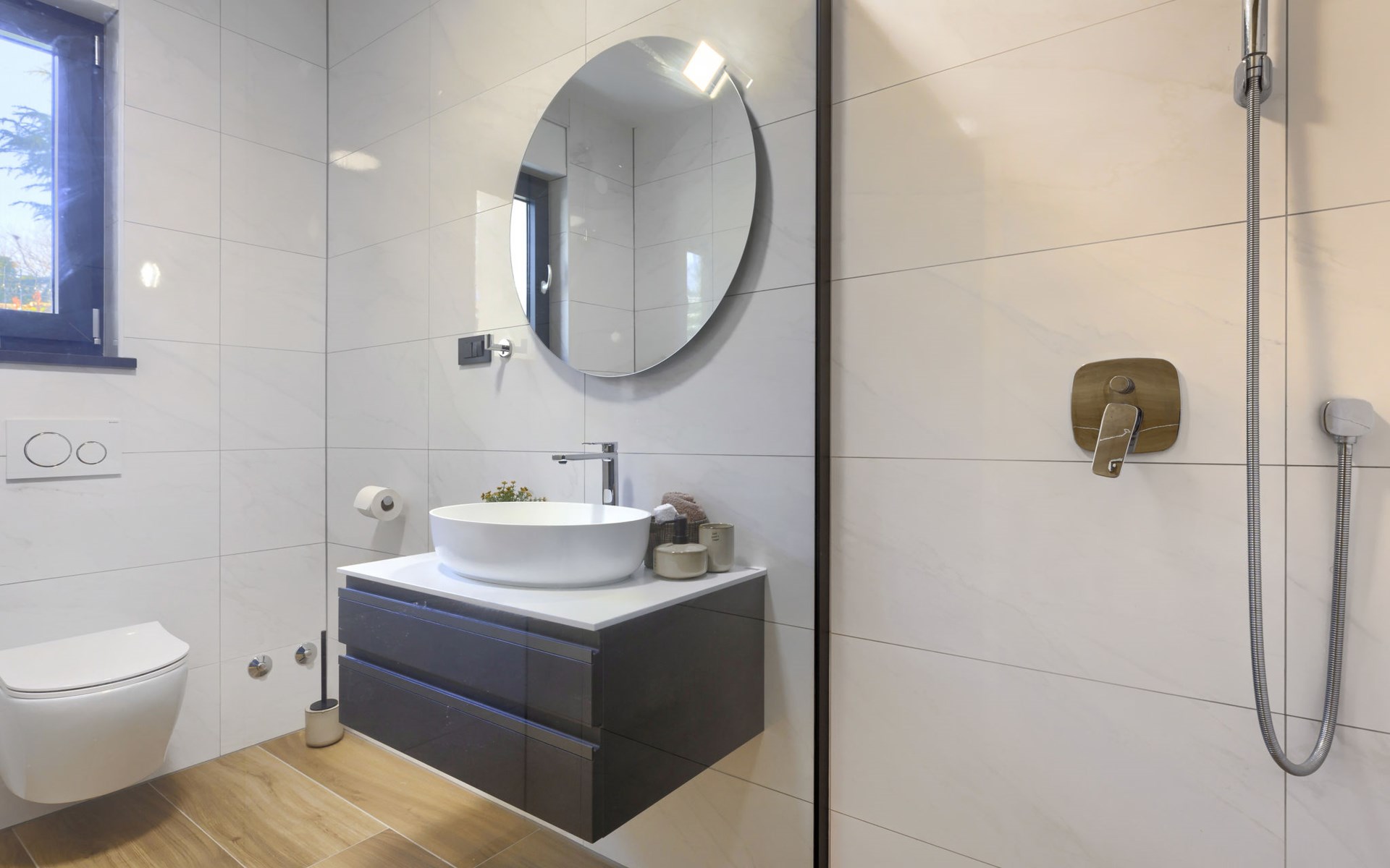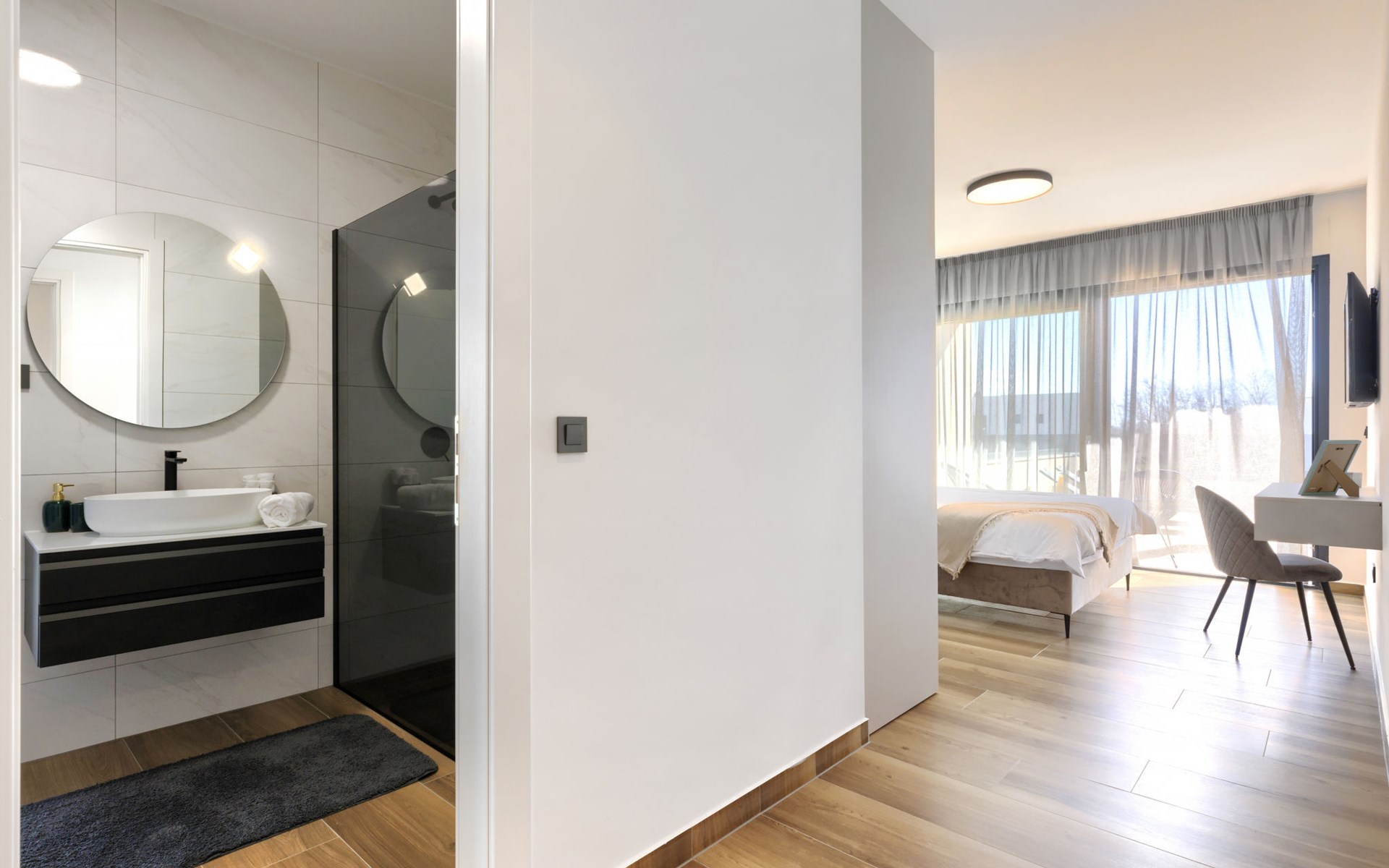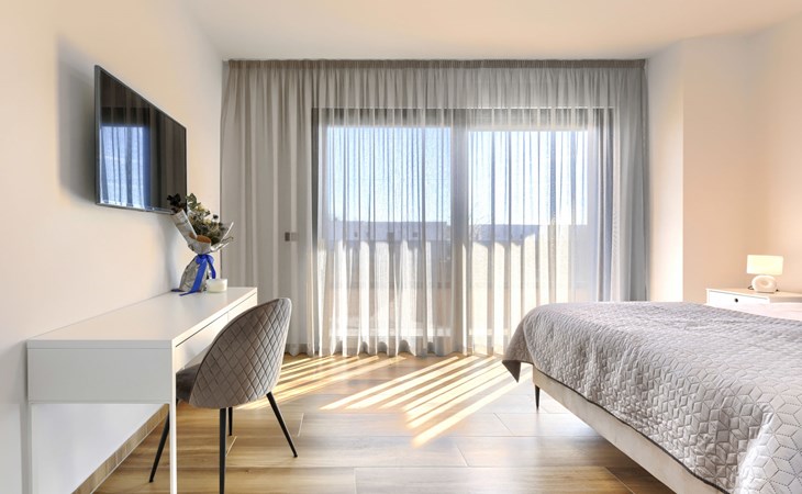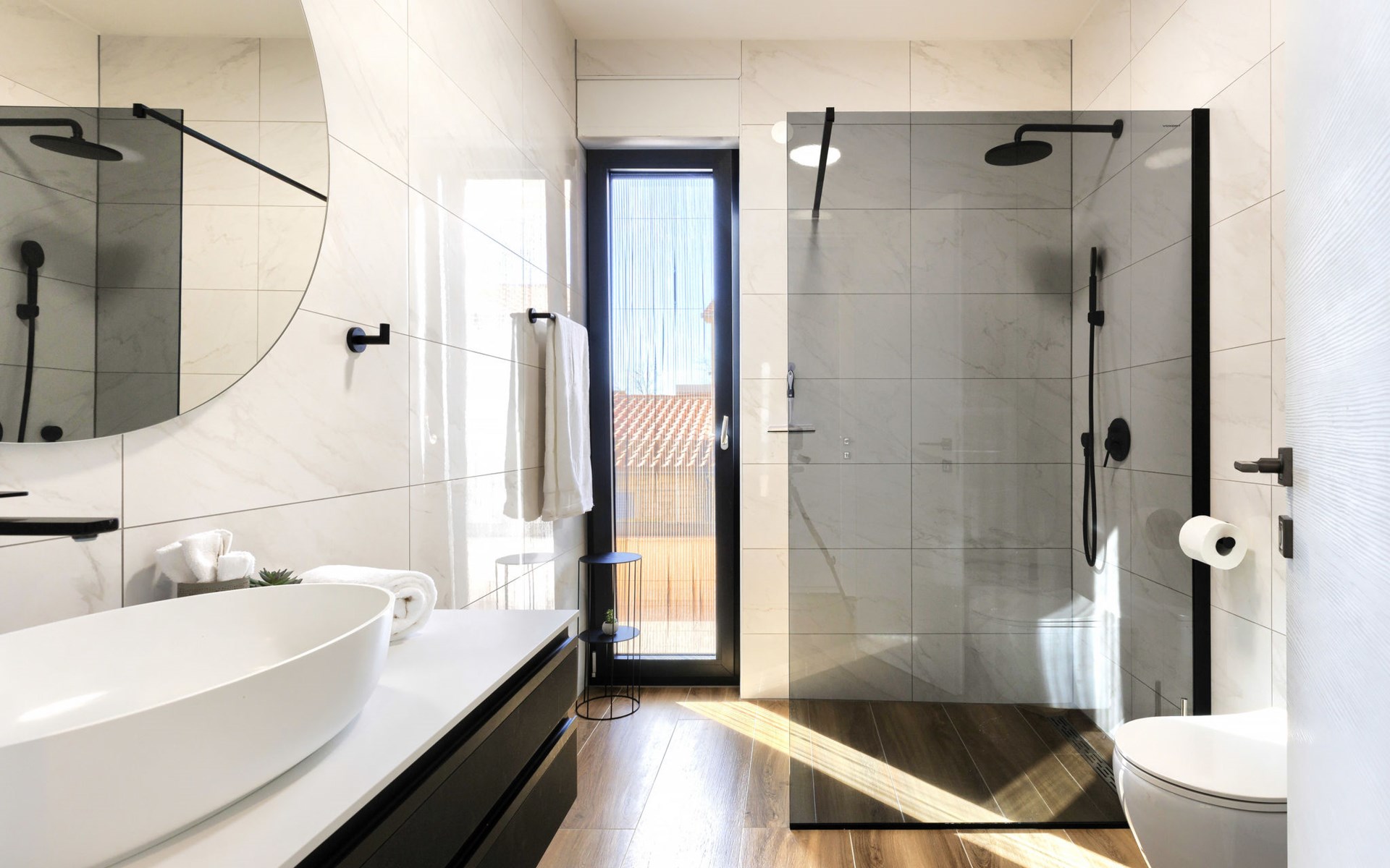 Kaštelir: Modern, luxurious villa "Prudensia", 2 storeys, built in 2022. In the hamlet Krančići 500 m from the centre of Kaštelir, 15 km from the centre of Poreč, in a sunny position, 10 km from the sea. Private: property 800 m2 (fenced), lawn, swimming pool angular, heated (10 x 4 m, depth 150 cm, seasonal availability: 01.Apr. - 30.Oct.) with internal staircase. Outdoor shower, hot tub, barbecue, pool maintenance by the owner/gardener. In the house: internet access, storage room for bicycles, washing machine, tumble dryer. Parking (for 3 cars) at the house on the premises. Shop 500 m, restaurant 2 km, bus stop 6 km, pebble beach 10 km, rocky beach 10 km. Walking paths from the house 100 m, cycle lane 150 m. Please note: suitable for families. The owner does not accept any youth groups. Neighbourhood highly sensitive to noise. Quietness and good behaviour expected. Video surveillance of the driveway and parking.