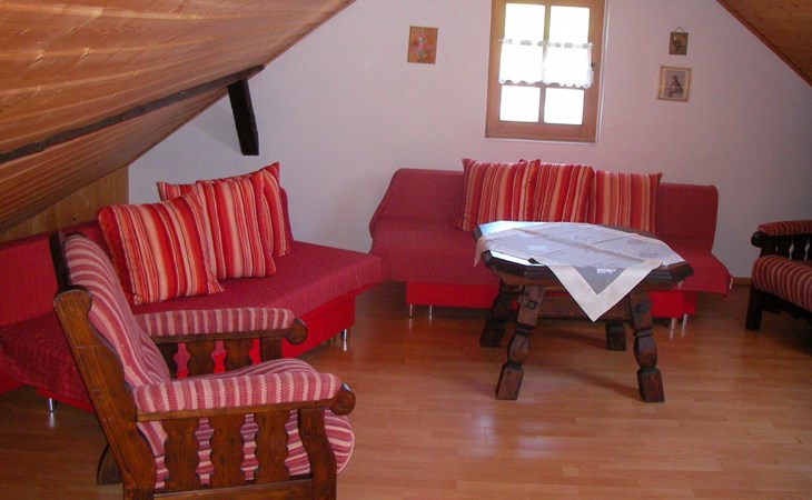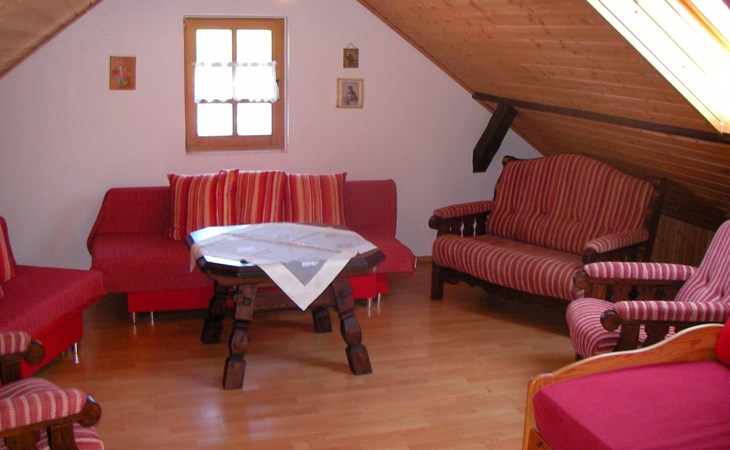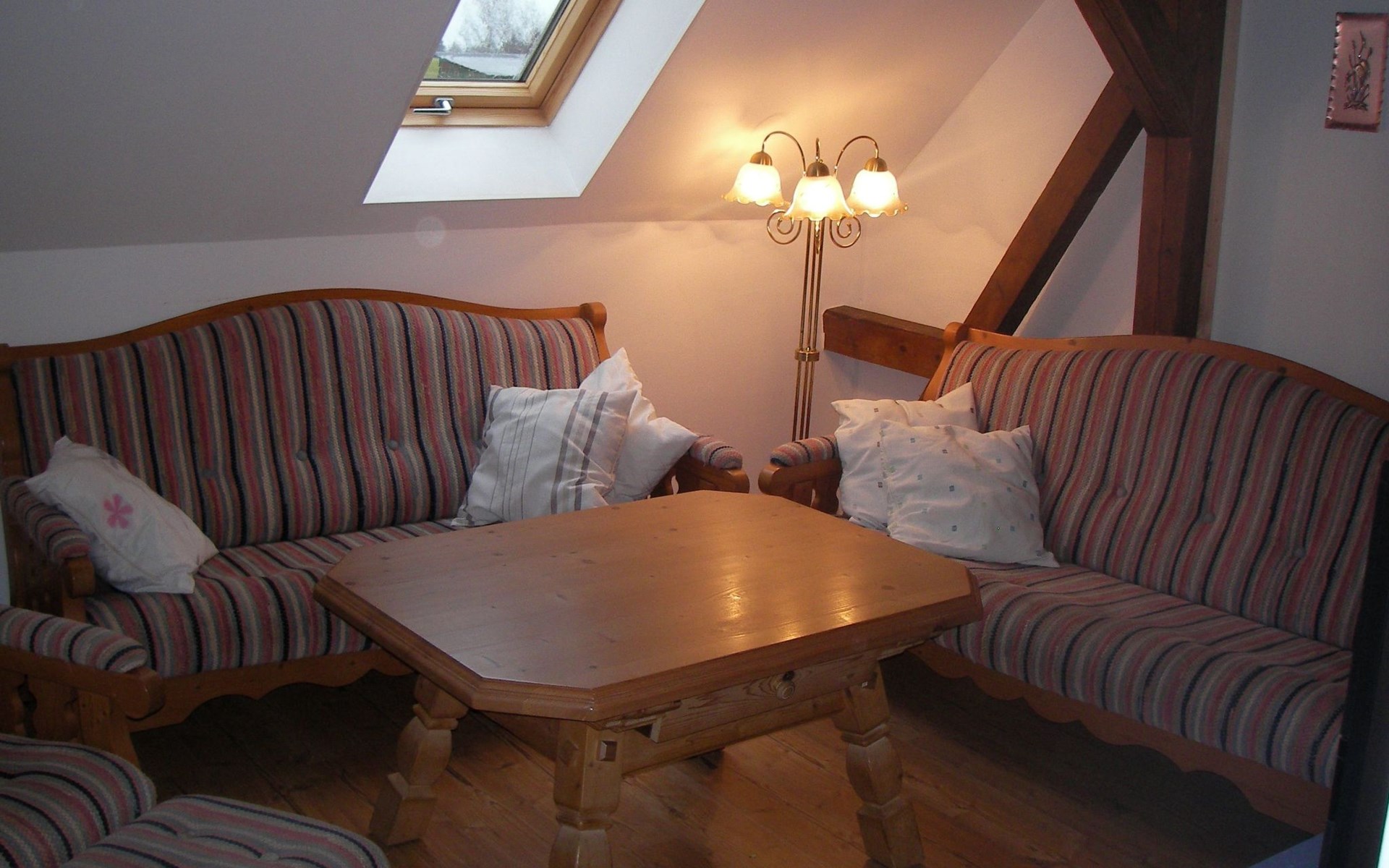 Living room also serves as a bedroom Radio/TV, W-Lan available Living room is furnished with 1x table+2-seater sofa+2x single armchairs. 2 sofa beds are also available.