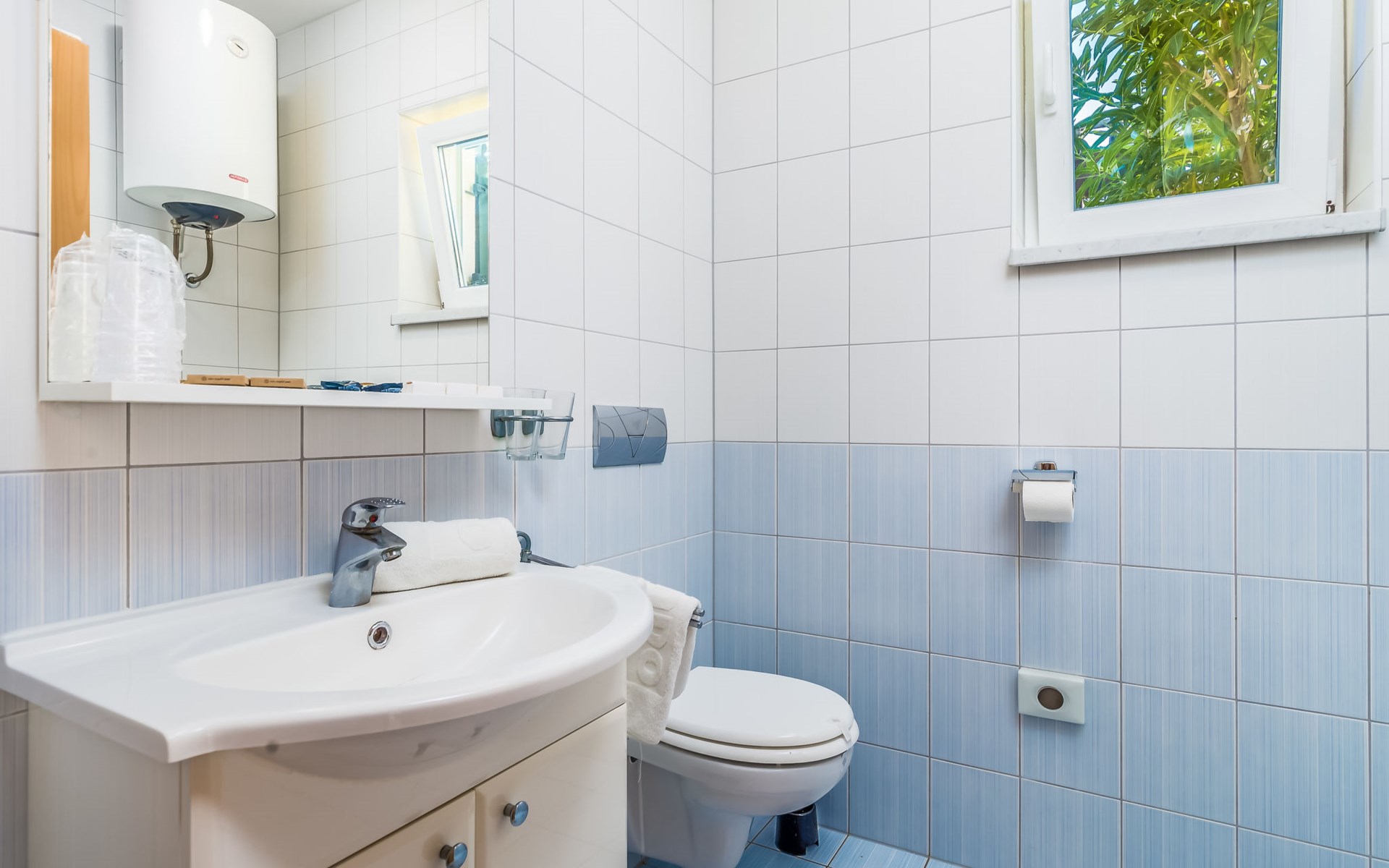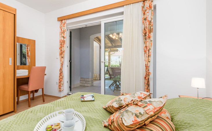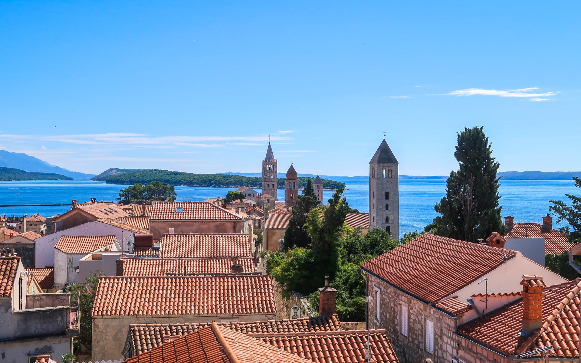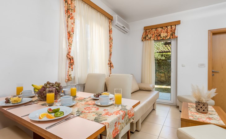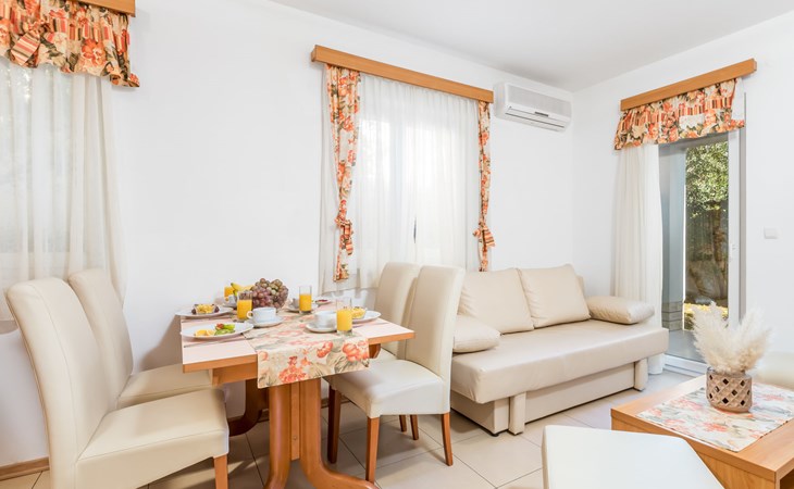 Beautiful apartment block. In the district of Palit 2 km from the centre of Rab, outside the resort, in a sunny, elevated position, 100 m from the sea, 250 m from the beach. For shared use: property (fenced), well-kept garden with lawn, swimming pool angular heated (9 x 4 m, depth 120 - 160 cm, seasonal availability: 13.May. - 30.Sep.) with internal staircase. Children's pool, outdoor shower, garden furniture, barbecue. In the house: internet access. Roofed, parking at the house. Shop 900 m, restaurant 1 km, bus stop 1.9 km, sandy beach, pebble beach 250 m, public bathing area 900 m. Tennis 2.5 km. Please note: the photograph shows a typical example. Additional accommodations can be booked. Property ref. HR3700.301, 304 is situated on the same property. The apartment house "Mihaela" is situated on the same grounds (1600 m2) with apartment houses "Ivan" and "Pavica", with swimming pool for shared use, with counterflow. One part of the pool is a paddling pool, depth 30 - 60cm. Deck chairs at disposal. The old town of Rab can be reached by a coastal promenade (20 minutes walk).