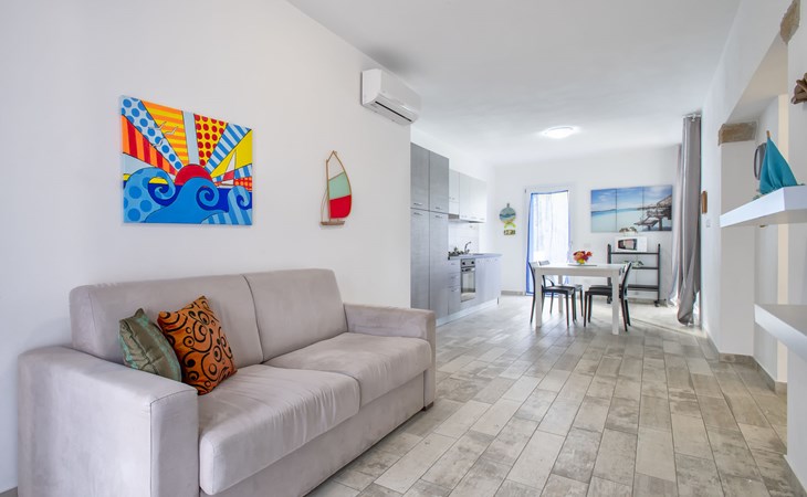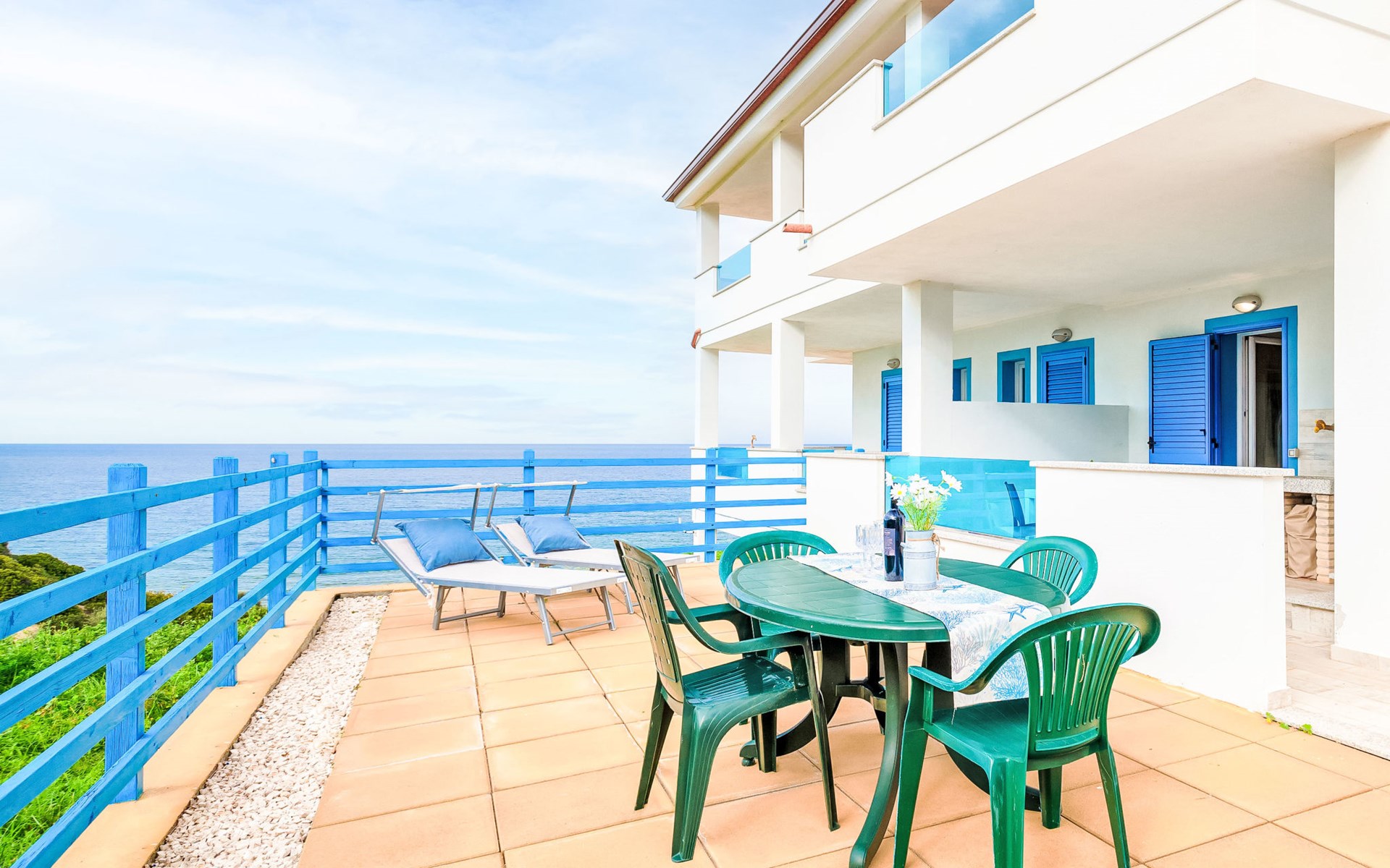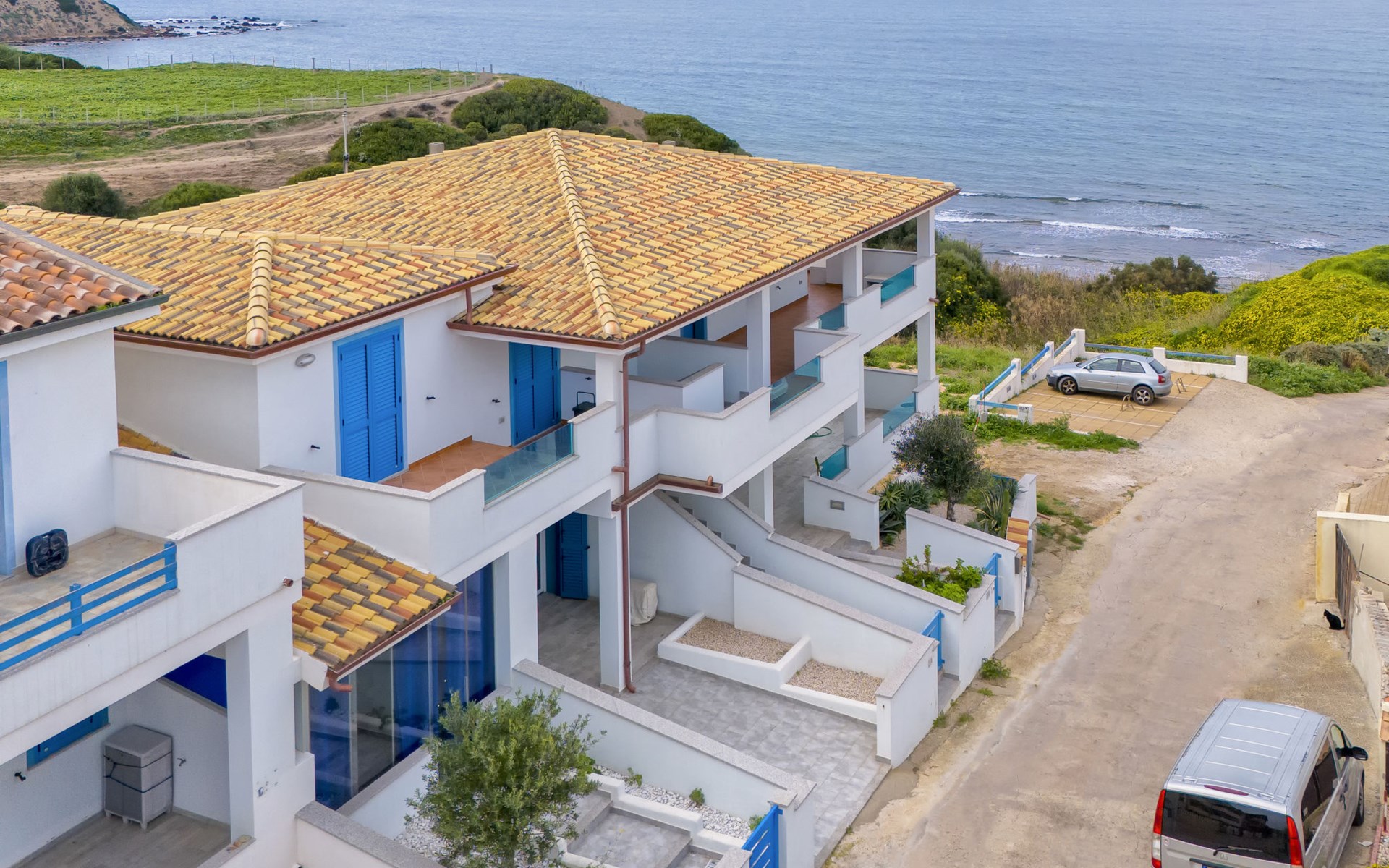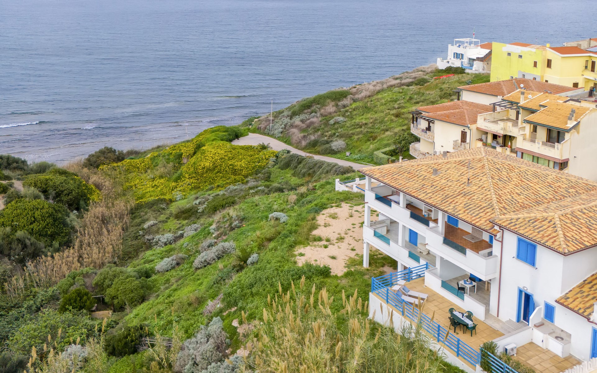 Modern 2-family house "La Gabbianella". 2 apartments in the property. La ciaccia, 3 km from the centre of Valledoria, in a sunny position in the residential district, 100 m from the sea, 100 m from the beach, in a cul-de-sac. Parking at the house. Supermarket 2 km, restaurant, bar 200 m, bus stop 3 km, sandy beach "Spiaggia la Ciaccia" 700 m pebble beach 100 m. Surf school 600 m, tennis 500 m. Nearby attractions: Castelsardo 13 km, Alghero 81 km, Costa paradiso 32 km, Olbia 89 km, Porto Cervo 86 km, Porto Rotondo 92 km. Please note: car recommended.