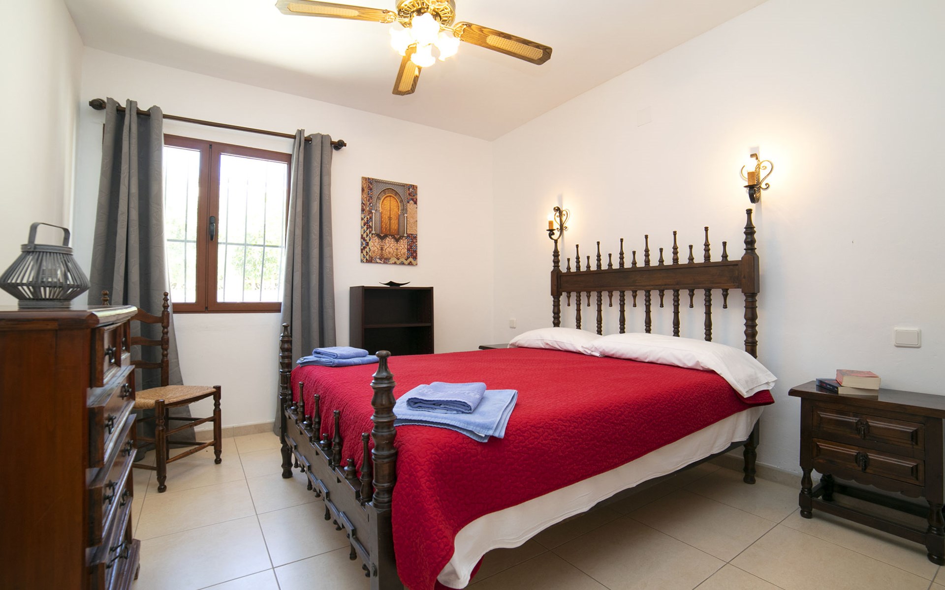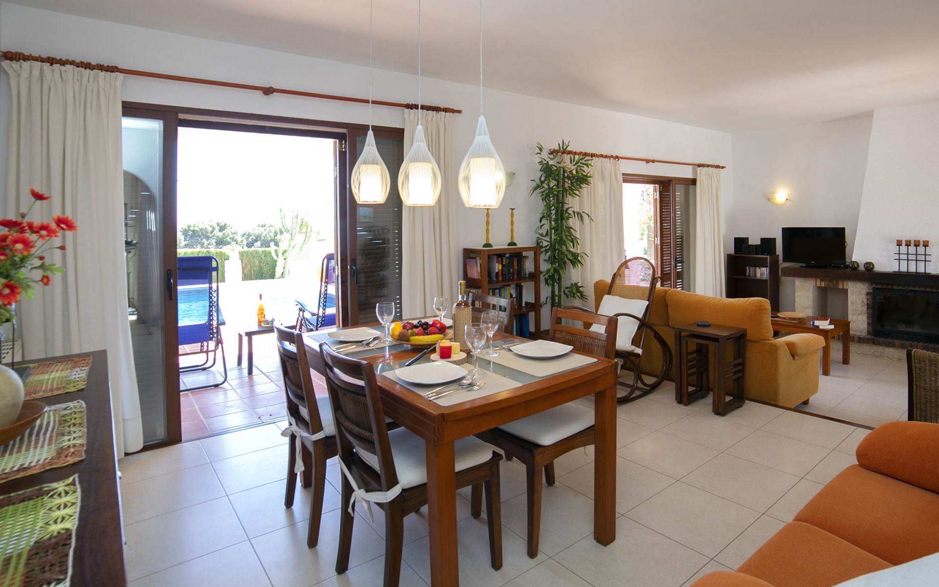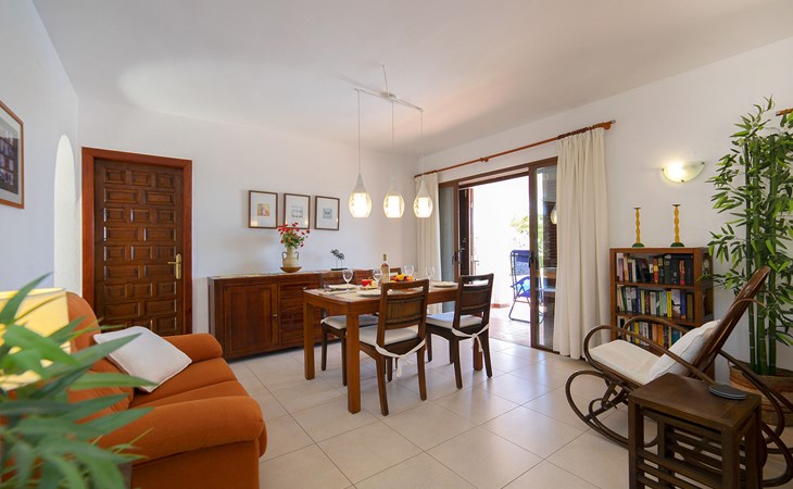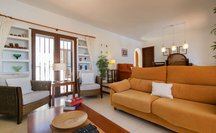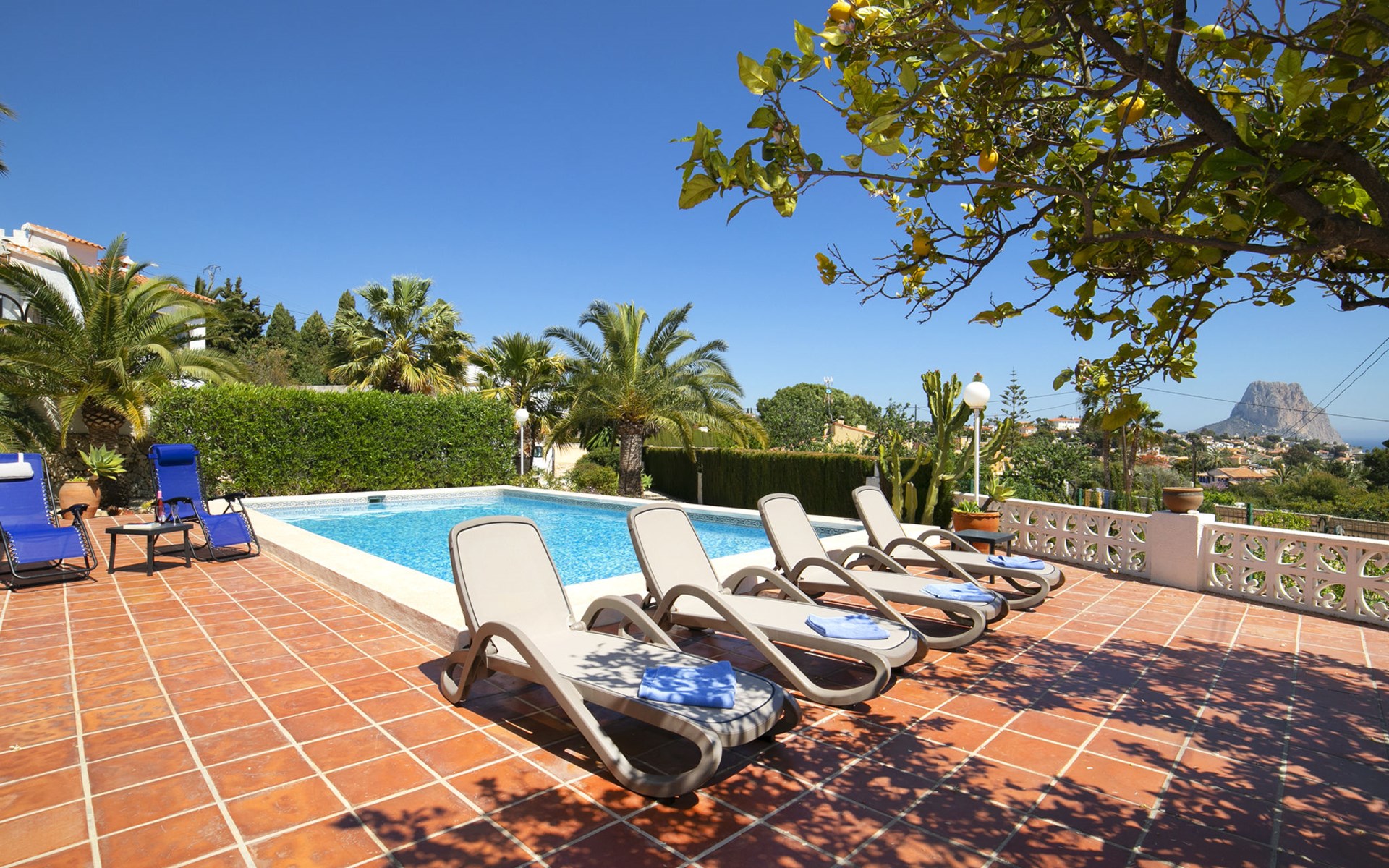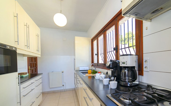 Canuta Ifach: Beautiful single-family house "Cecile". 2.2 km from the centre of Calpe, in a quiet position, 1.3 km from the sea, in a cul-de-sac. Private: property 1'100 m2 (fenced), garden, swimming pool (9 x 5 m, depth 90 - 170 cm, seasonal availability: 01.Jan. - 31.Dec.) with internal staircase. Outdoor shower, terrace, garden furniture, barbecue. In the house: central heating system, heating available only from 01.Nov. - 30.Apr.. Parking at the house. Supermarket 2.3 km, restaurant 500 m, bus stop 2 km, sandy beach 1.3 km. Sports harbour 1.3 km. Nearby attractions: Aqualandia, Mundomar, Terra MÃtica, Terra Natura, y Benidorm Palace (Benidorm). Terraces have both sun and shade.