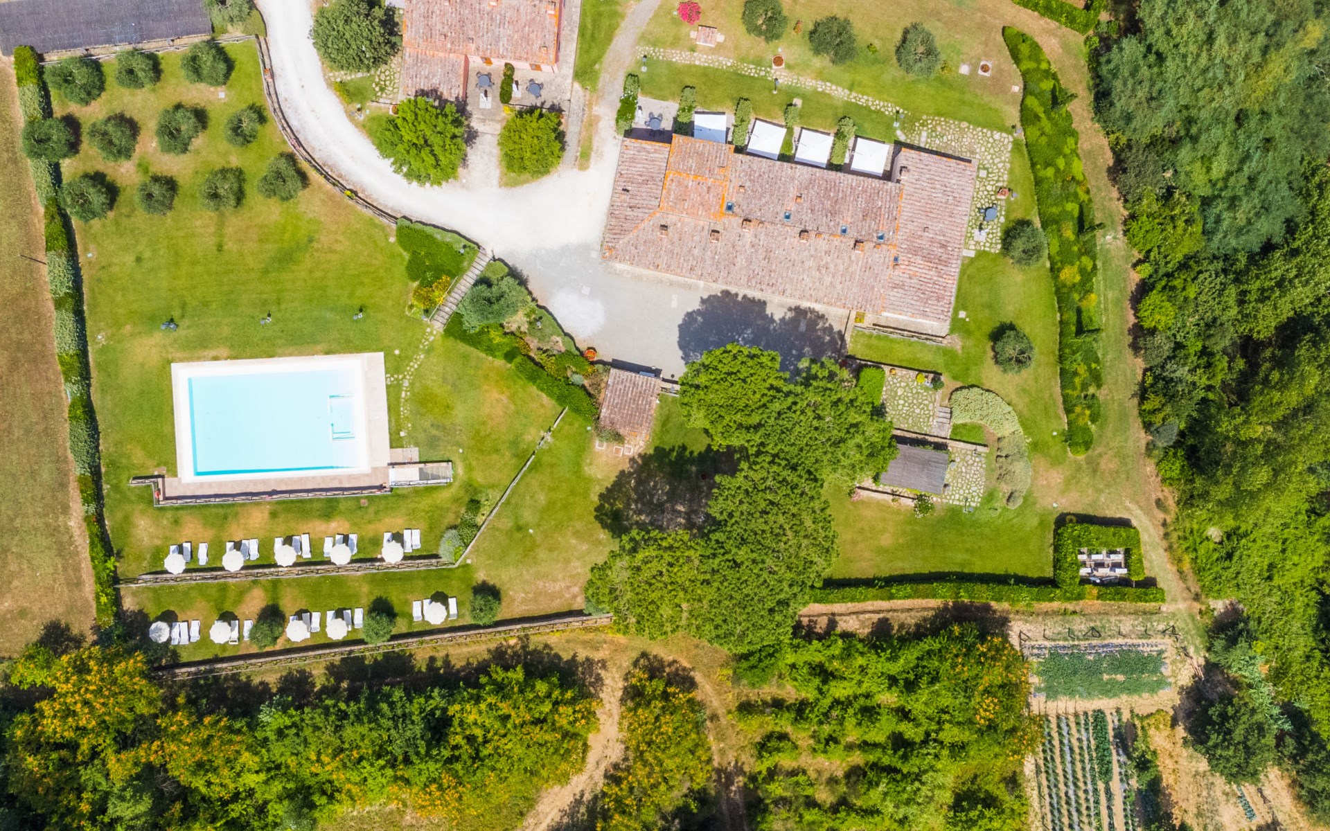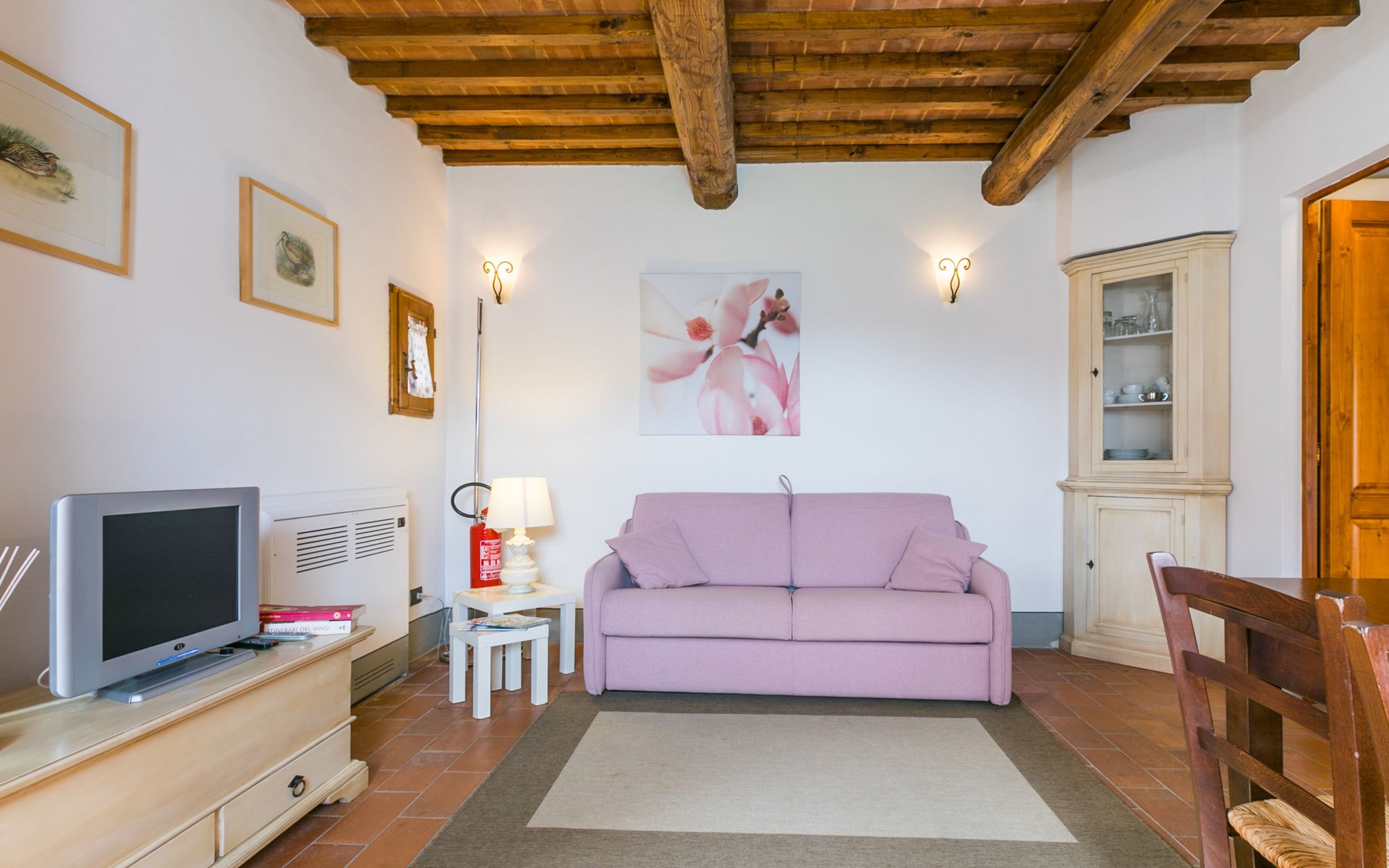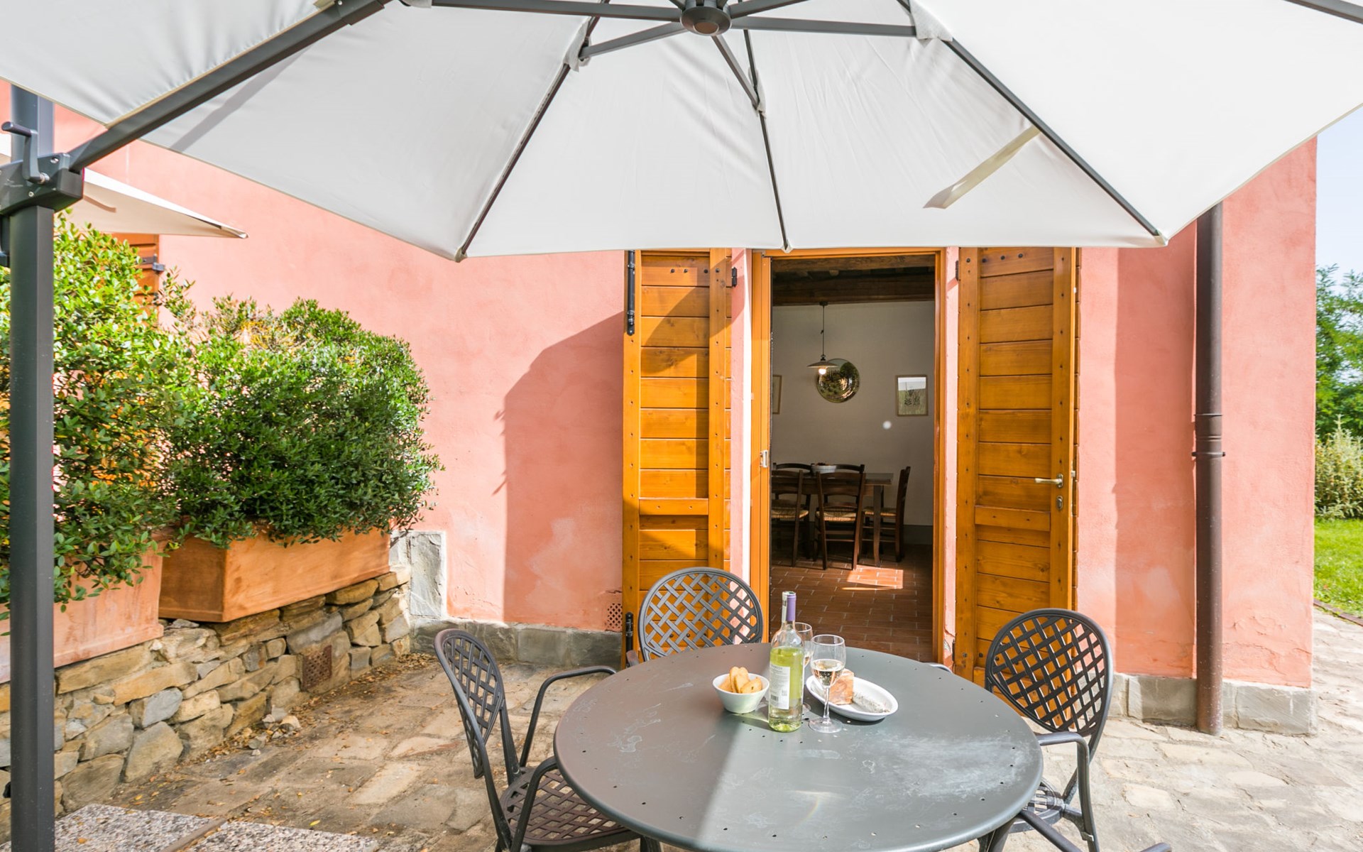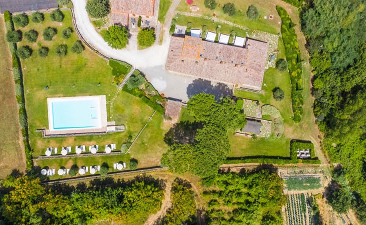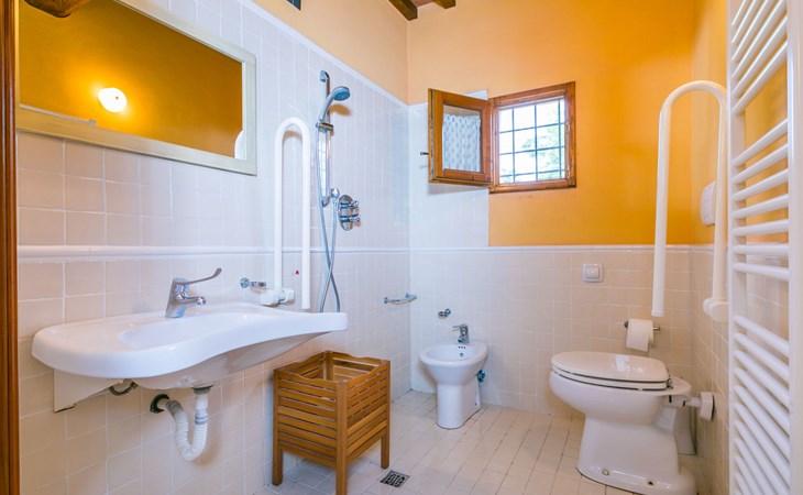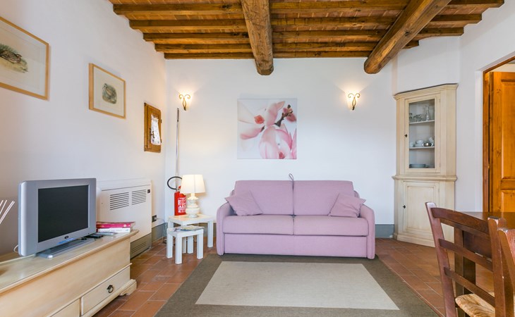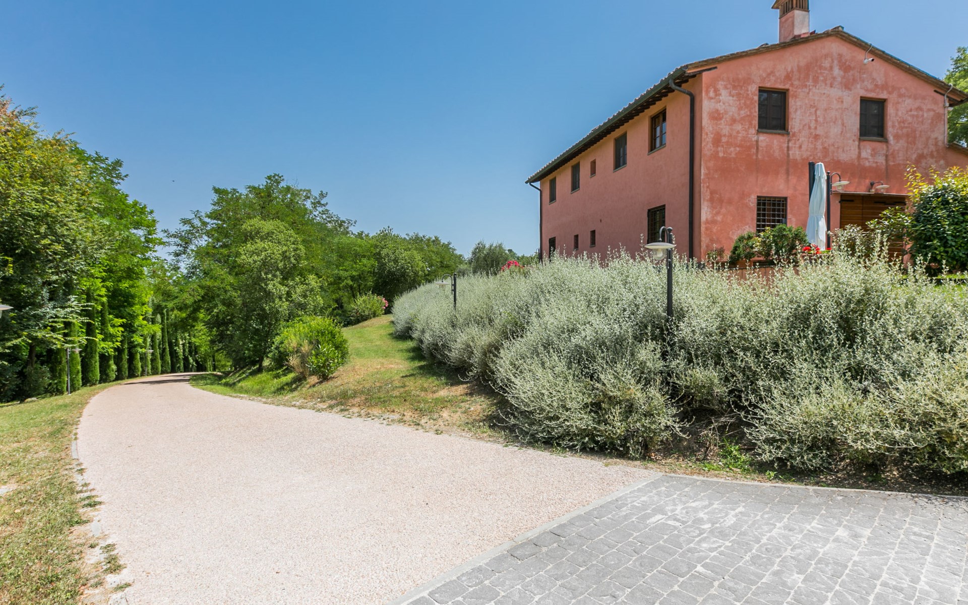 Beautiful, cosy country house "Francigena", surrounded by trees and fields. 9 apartments in the residence. 6 km from the centre of Castelfiorentino, 3 km from the centre of Castelnuovo d'Elsa, 30 km from the centre of San Gimignano, in a sunny position, 80 km from the sea, in the countryside. For shared use: property 20'000 m2, garden with lawn and trees, orchard (fenced), swimming pool fenced (15 x 9 m, depth 100 - 140 cm, seasonal availability: 01.Apr. - 31.Oct.). Outdoor shower, terrace, garden furniture, barbecue, pool maintenance by the owner/gardener. In the house: reception, washing machine, tumble dryer (for shared use, extra). Roofed, parking (for 12 cars) on the premises. E-charging station. Supermarket 6 km, bus stop 4 km, railway station "Castelfiorentino" 6 km, sandy beach "Calambrone" 80 km. Please note: car recommended. Baby equipment (included).