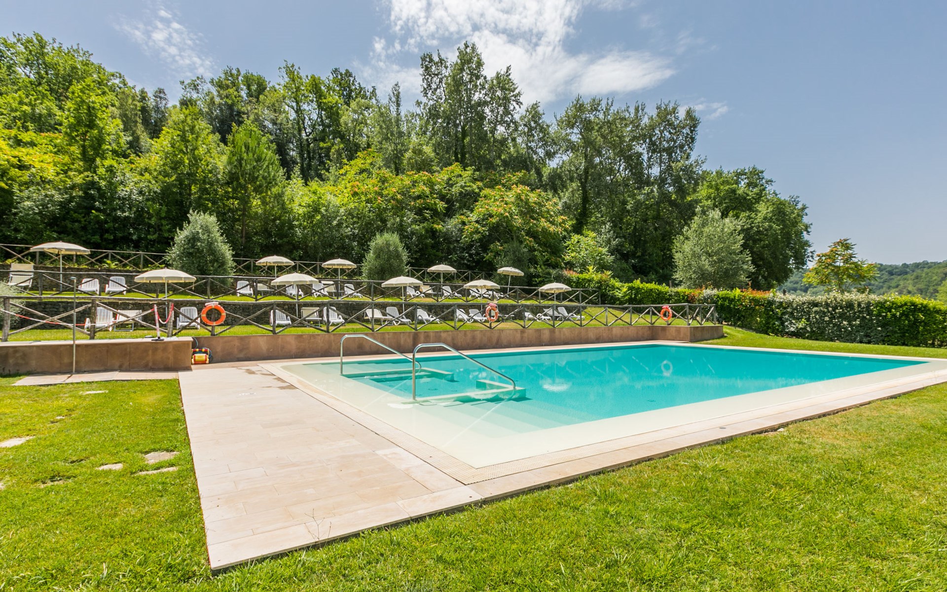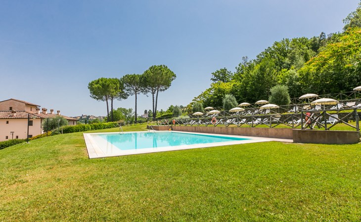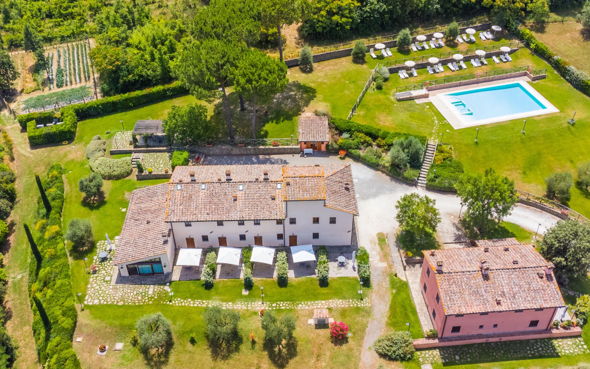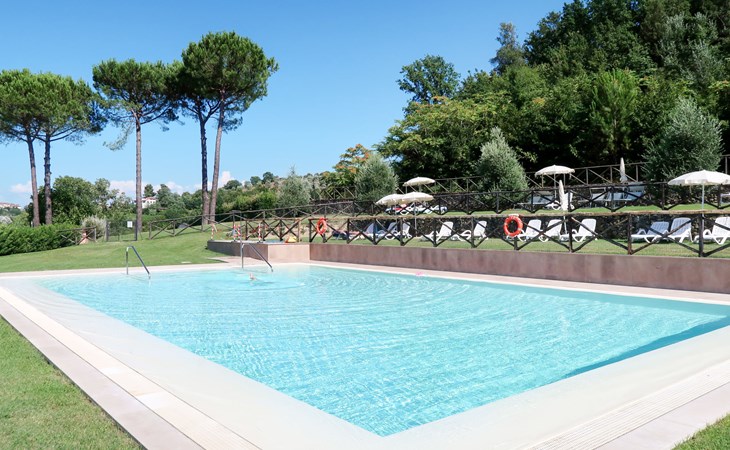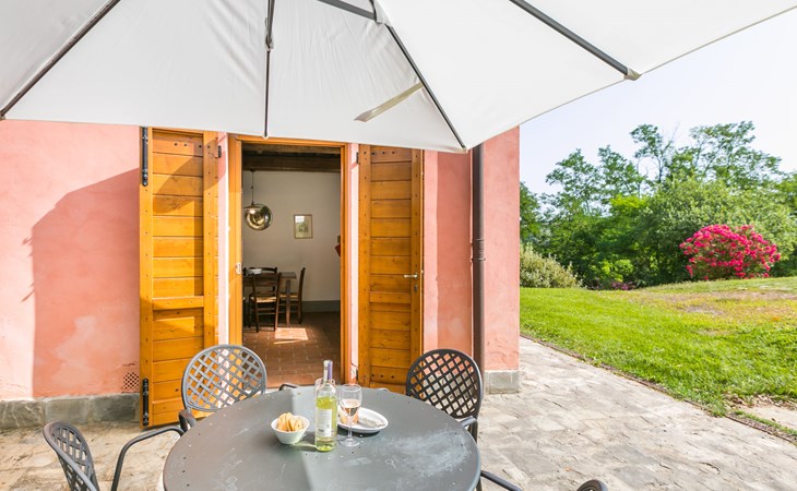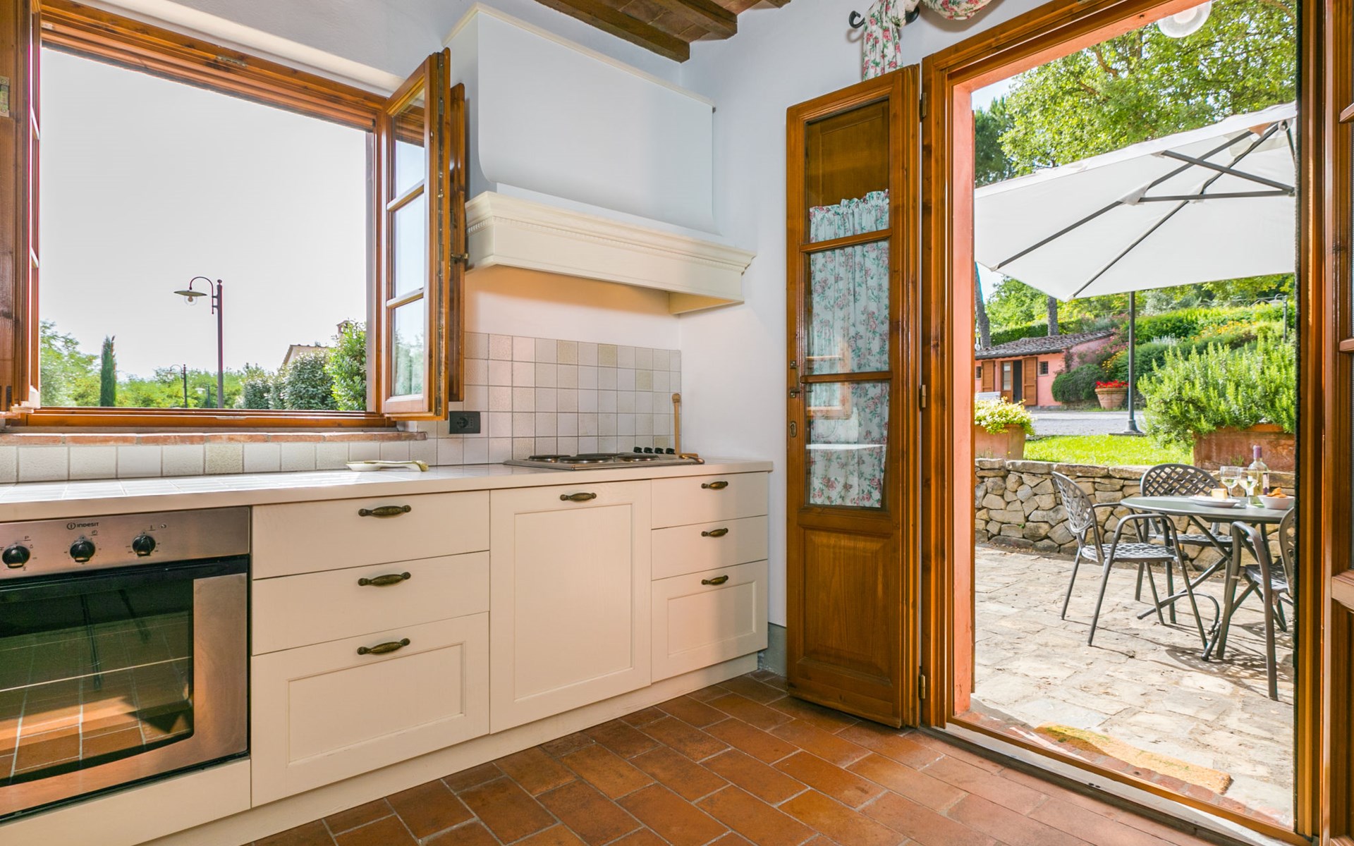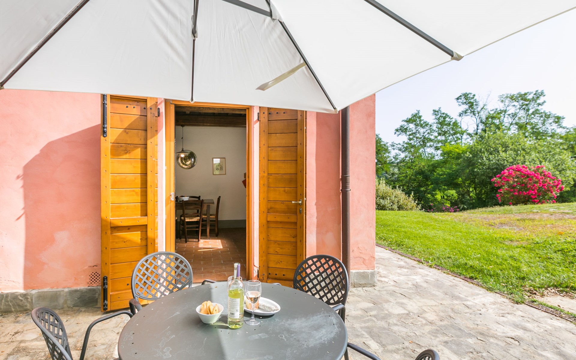 Beautiful, cosy country house "Francigena", surrounded by trees and fields. 9 apartments in the residence. 6 km from the centre of Castelfiorentino, 3 km from the centre of Castelnuovo d'Elsa, 30 km from the centre of San Gimignano, in a sunny position, 80 km from the sea, in the countryside. For shared use: property 20'000 m2, garden with lawn and trees, orchard (fenced), swimming pool fenced (15 x 9 m, depth 100 - 140 cm, seasonal availability: 01.Apr. - 31.Oct.). Outdoor shower, terrace, garden furniture, barbecue, pool maintenance by the owner/gardener. In the house: reception, washing machine, tumble dryer (for shared use, extra). Roofed, parking (for 12 cars) on the premises. E-charging station. Supermarket 6 km, bus stop 4 km, railway station "Castelfiorentino" 6 km, sandy beach "Calambrone" 80 km. Please note: car recommended. Baby equipment (included).