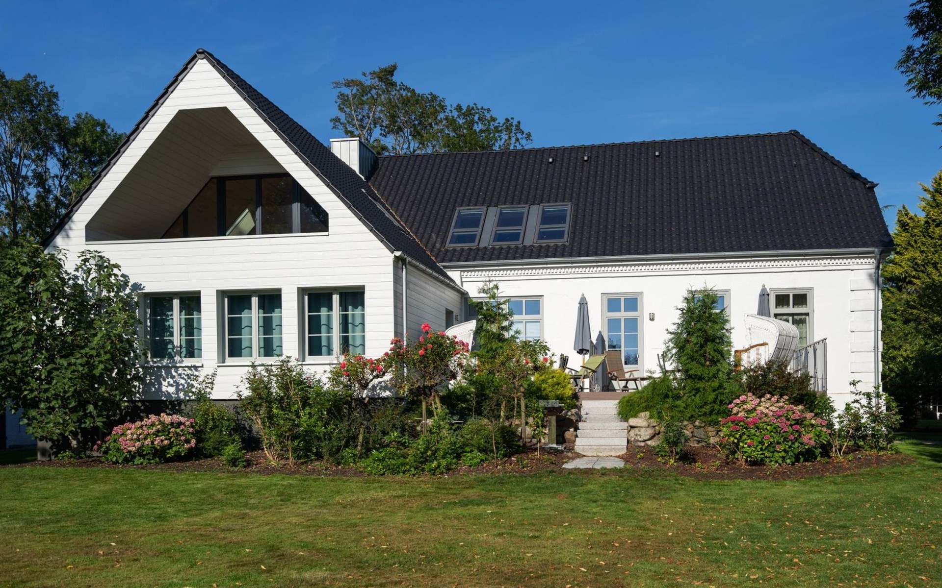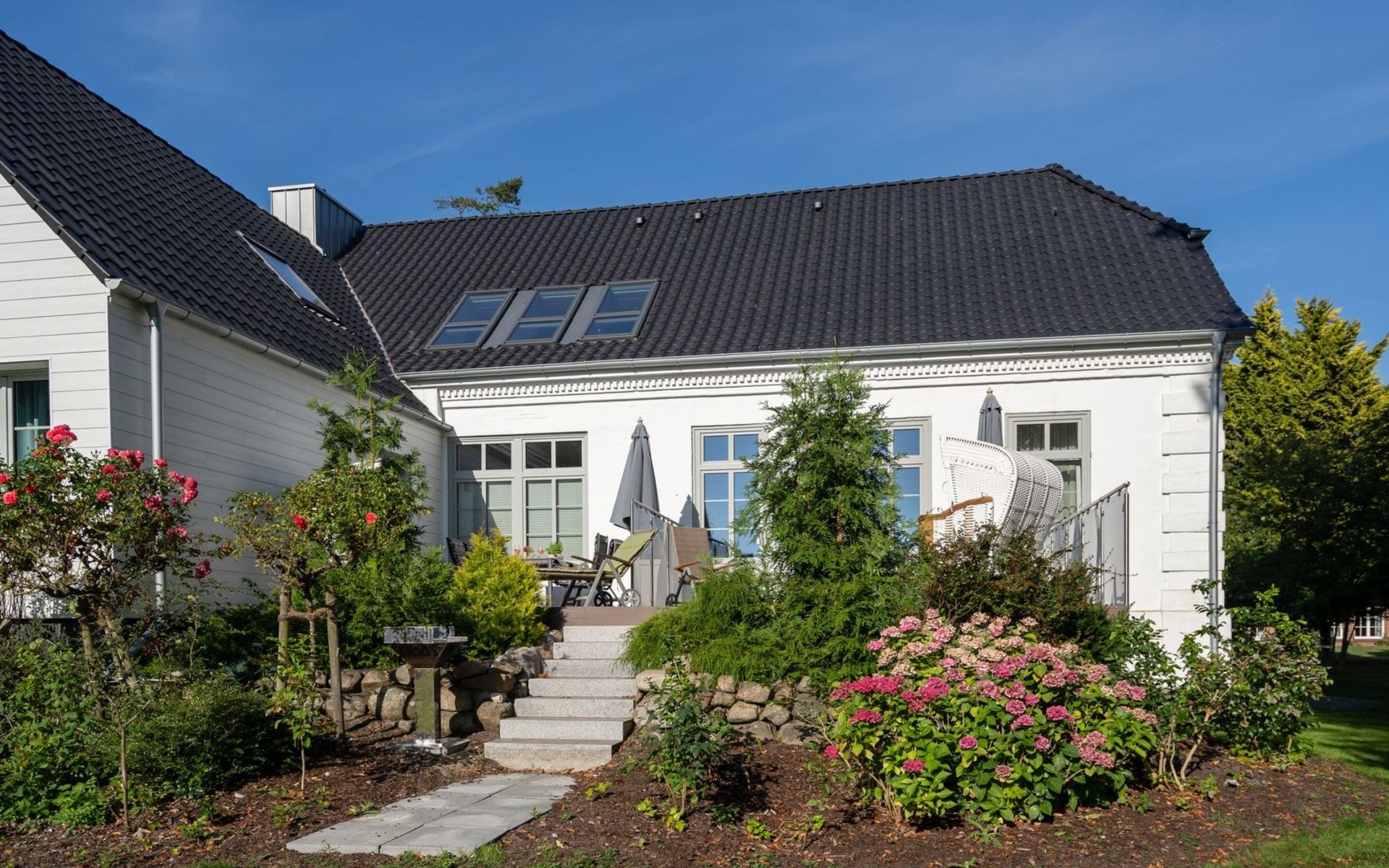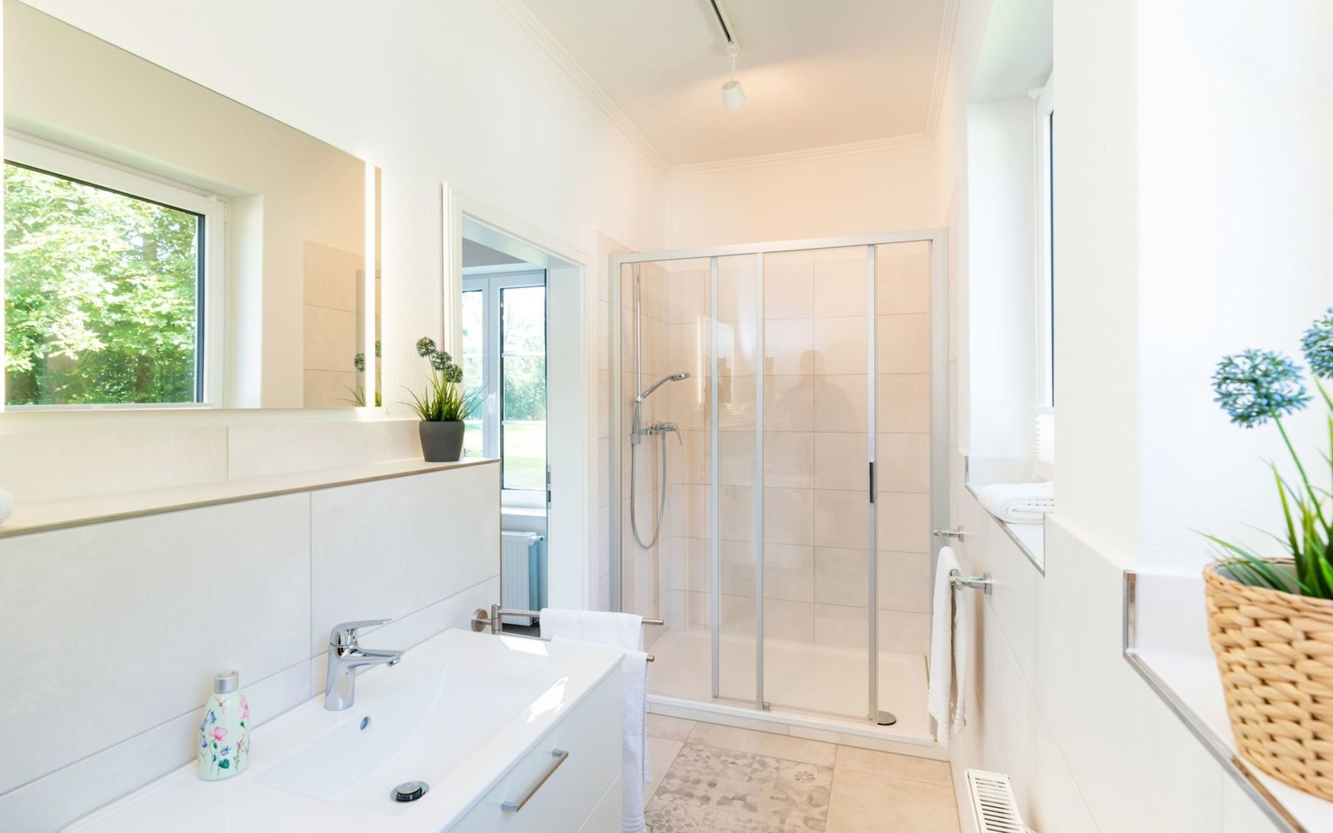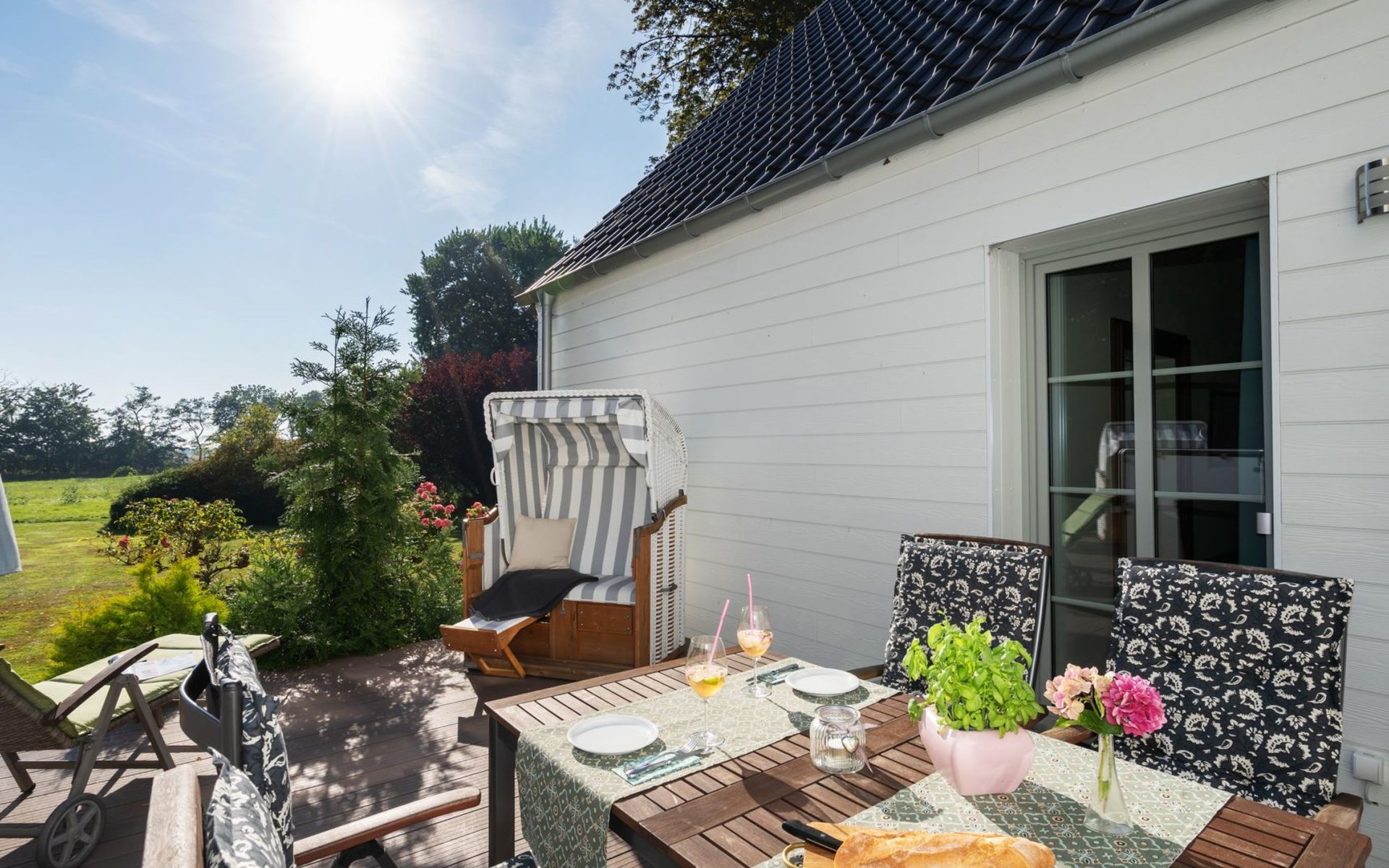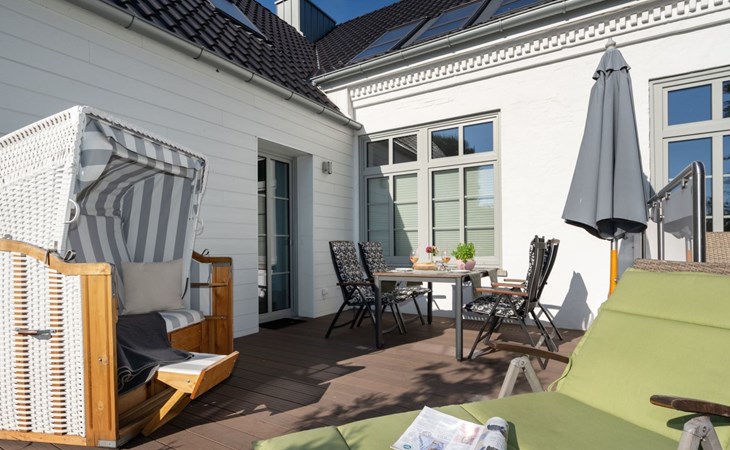 Outside, a terrace invites you to relax and enjoy. The garden, which you can use communally, offers plenty of space for your four-legged friend to run around or enjoy a relaxing sunbath. A charging station is available for guests travelling with an electric car, and you can safely store your bicycle in a covered and lockable bicycle storage area.