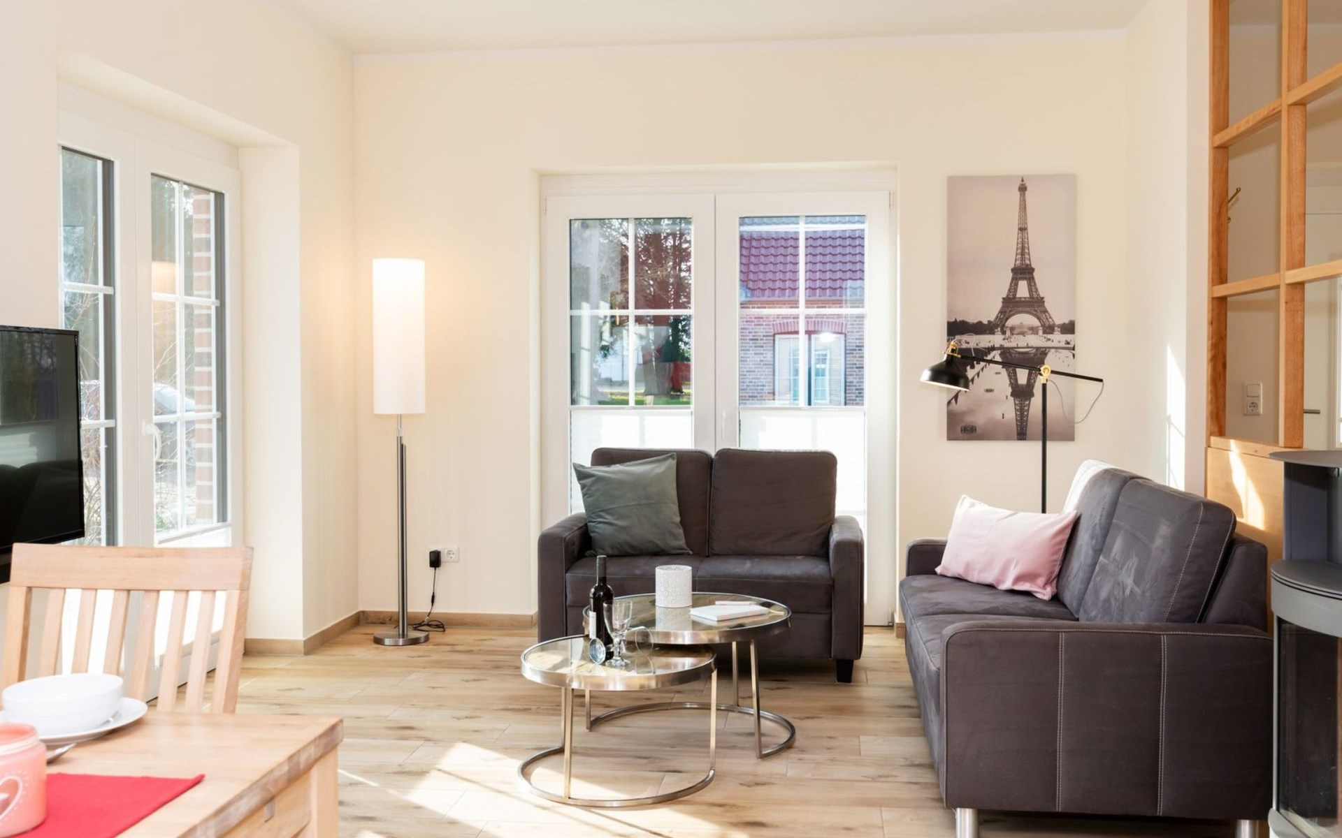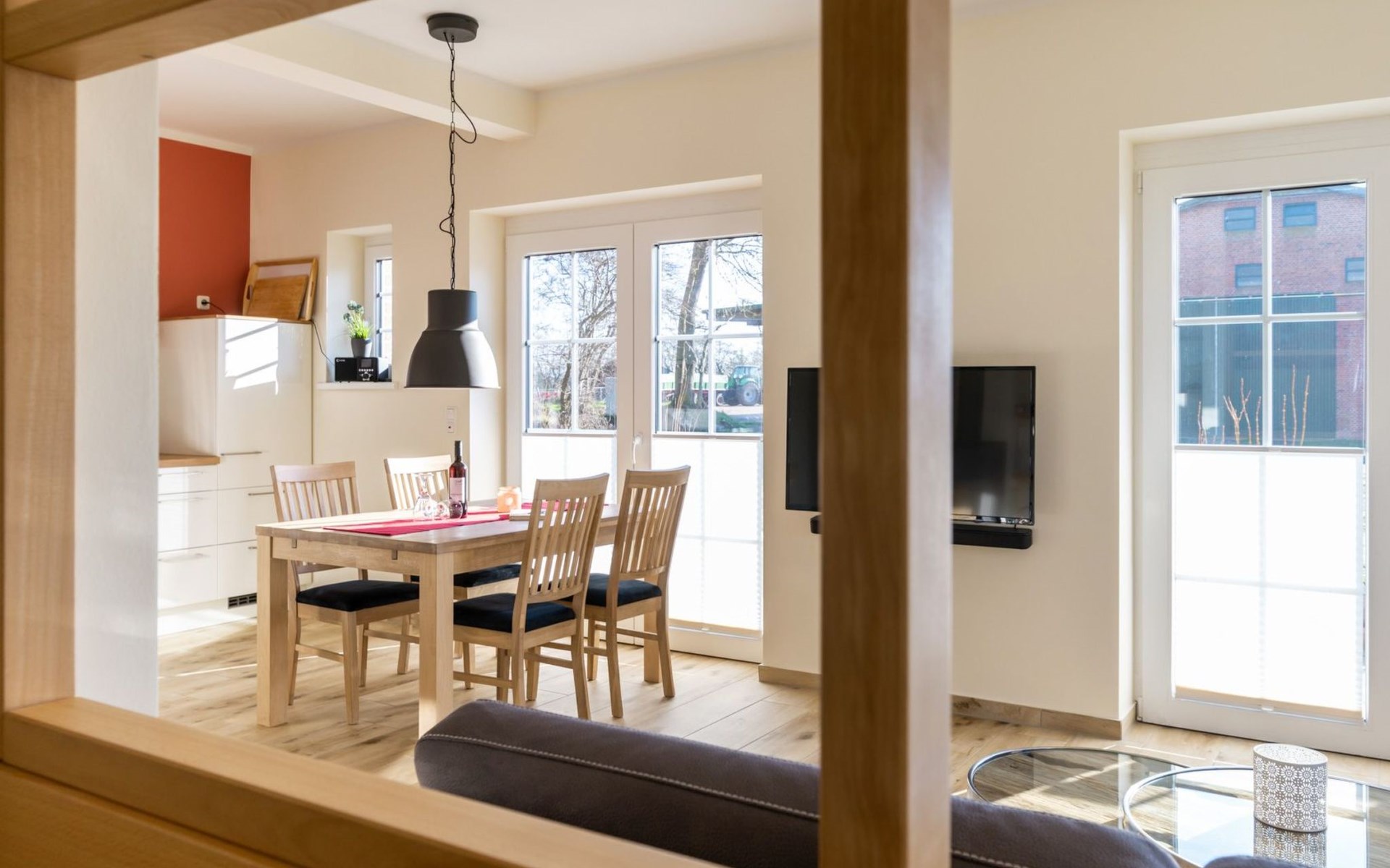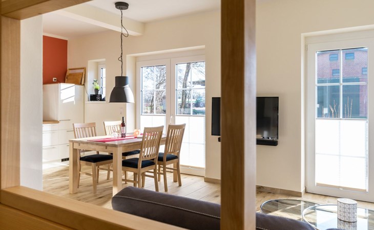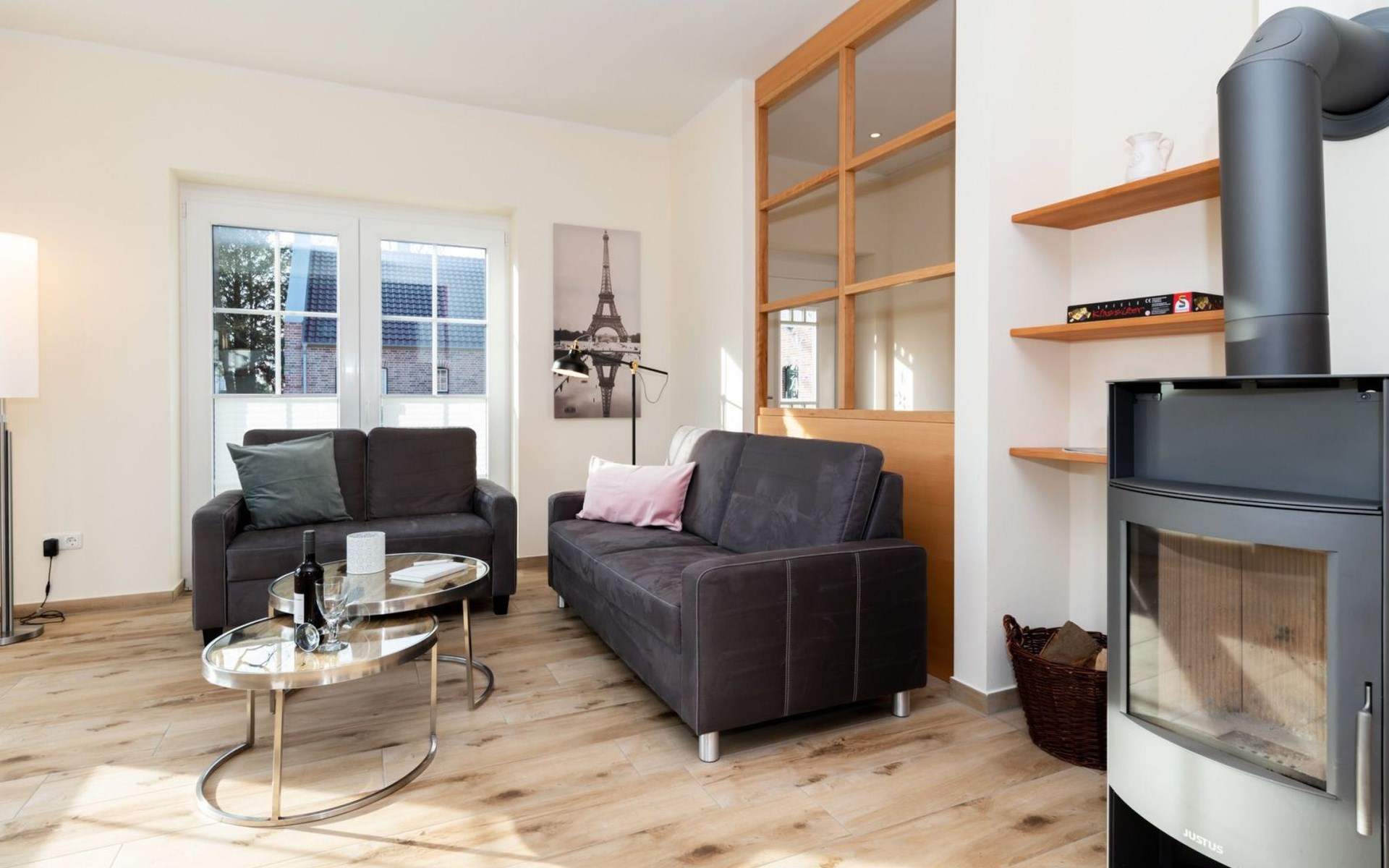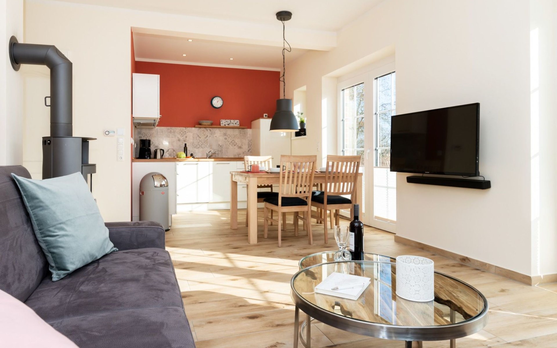 A cosy atmosphere awaits you inside the house, supported by the warming underfloor heating, which ensures comfort in every room. The technical equipment also leaves nothing to be desired: A Smart TV invites you to enjoy relaxing film evenings, while the washing machine for your sole use and a fully equipped kitchen with ceramic hob, dishwasher, filter coffee machine and kettle make your everyday life easier. Not forgetting the changing table, which is so important for child-friendly accommodation, and the inviting fireplace, which provides cosy warmth and comfort.