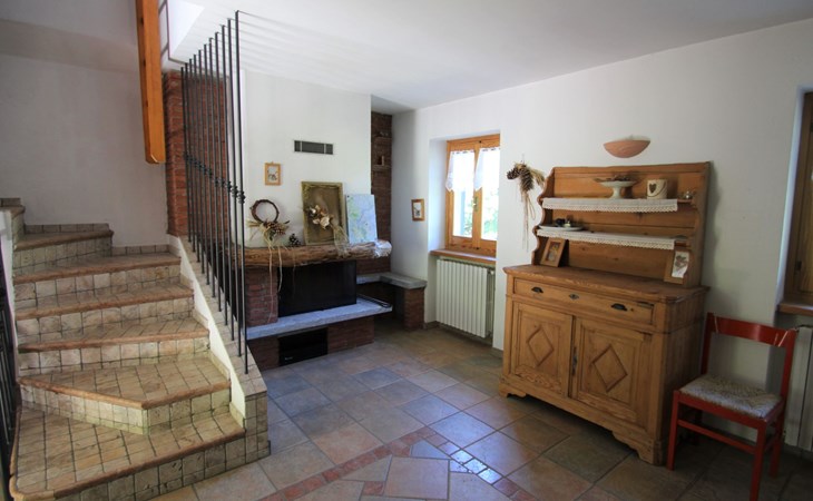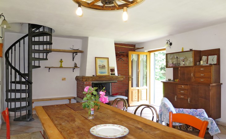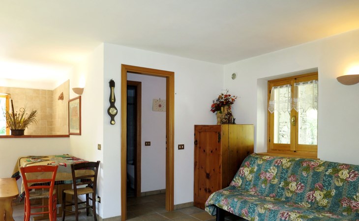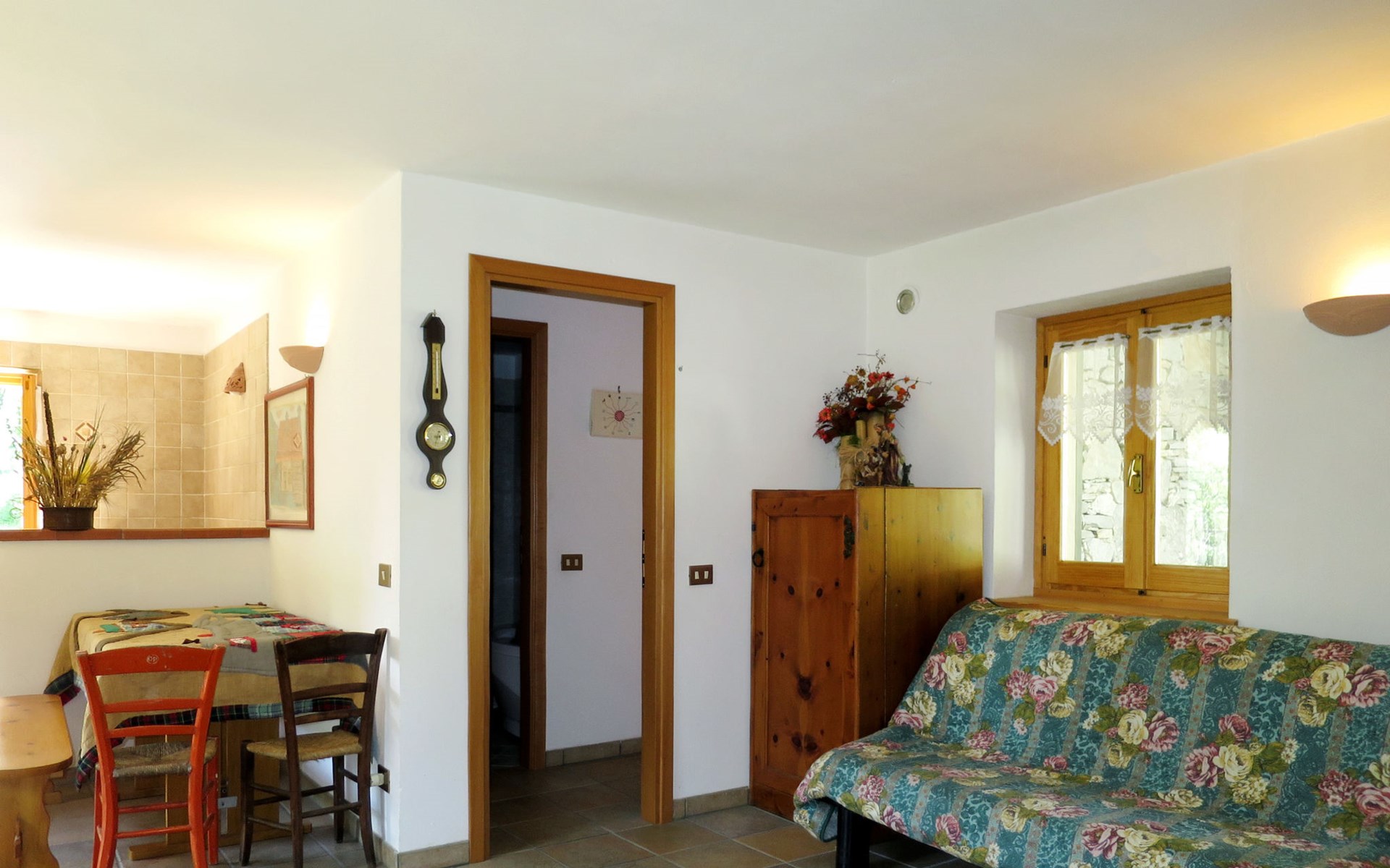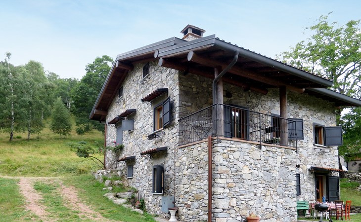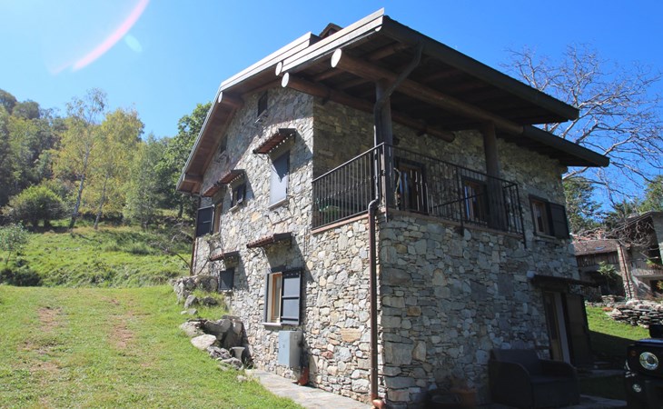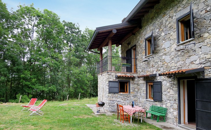 San Michele 9 km from Castelveccana: "rustico" cottage "Alpe", 820 m a.s.l.. In the hamlet San Michele 10 km from the centre of Porto Valtravaglia, in a quiet, elevated position, 10 km from the lake. Private: property 2'000 m2, terraced garden (not fenced). 9 km long narrow motor access (mountain road). Parking on the premises. Supermarket 8 km, restaurant 8 km, bar 300 m, bus stop 8 km, railway station "Porto Valtravaglia" 10 km, pebble beach "Caldè" 10 km. Hiking paths: San Michele 500 m. Please note: car recommended.