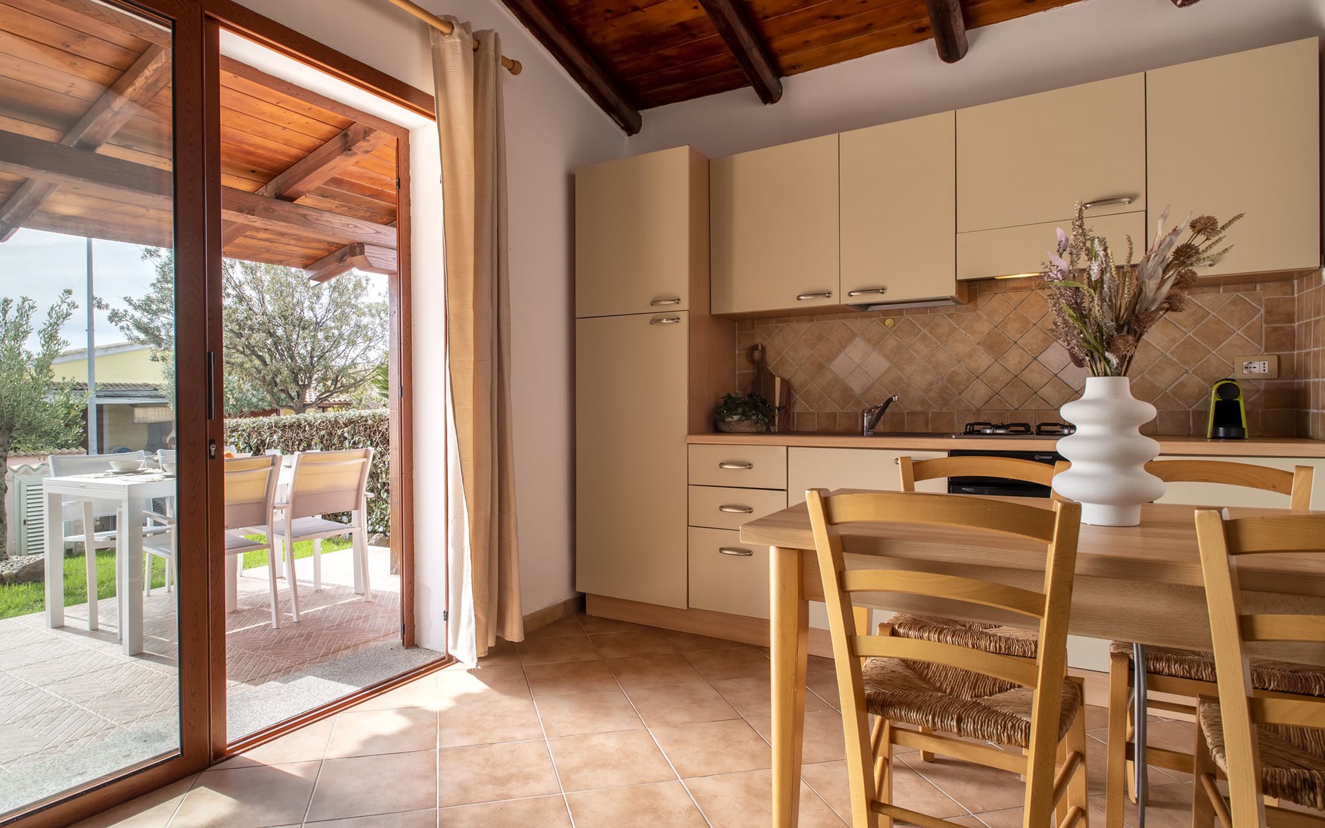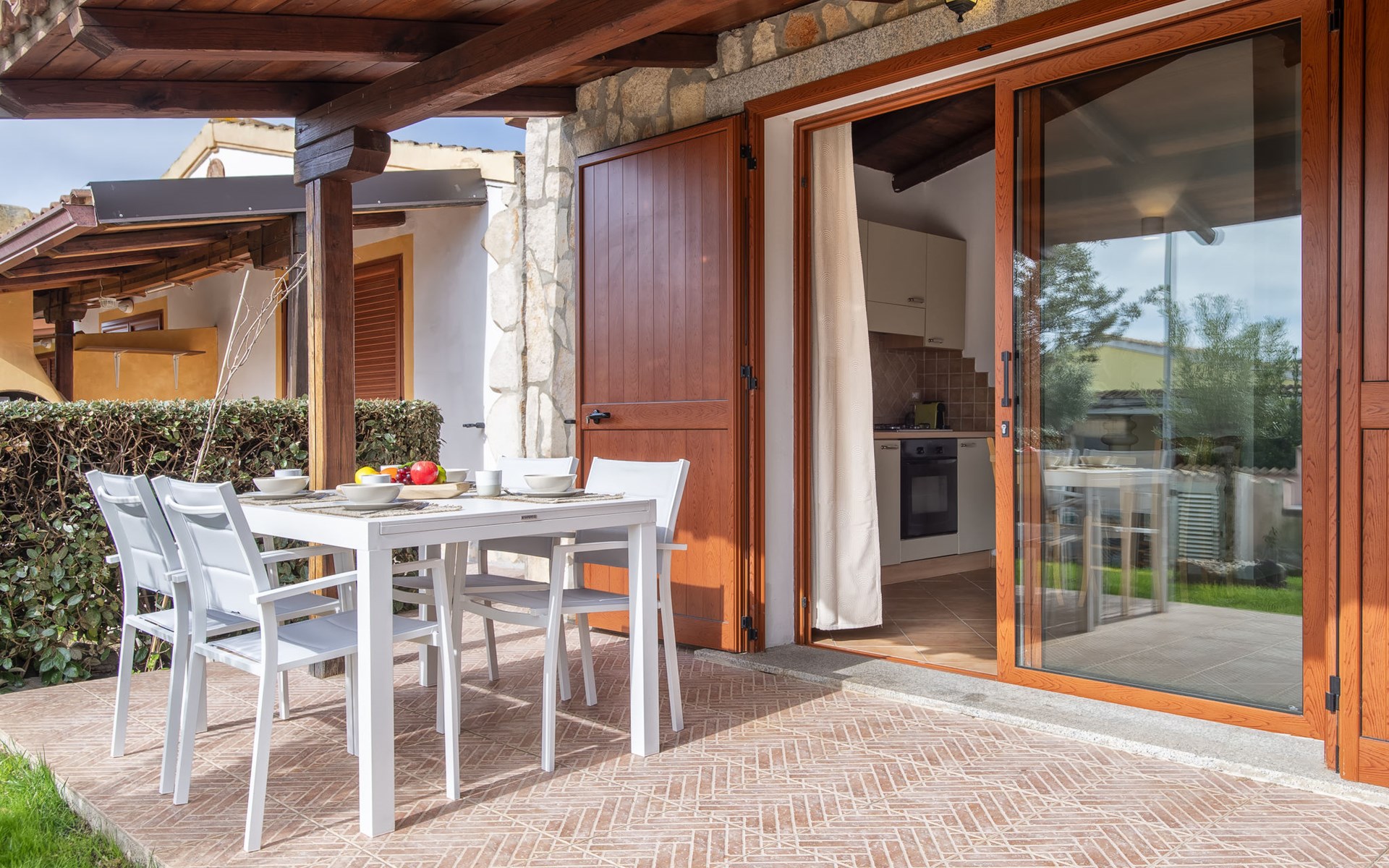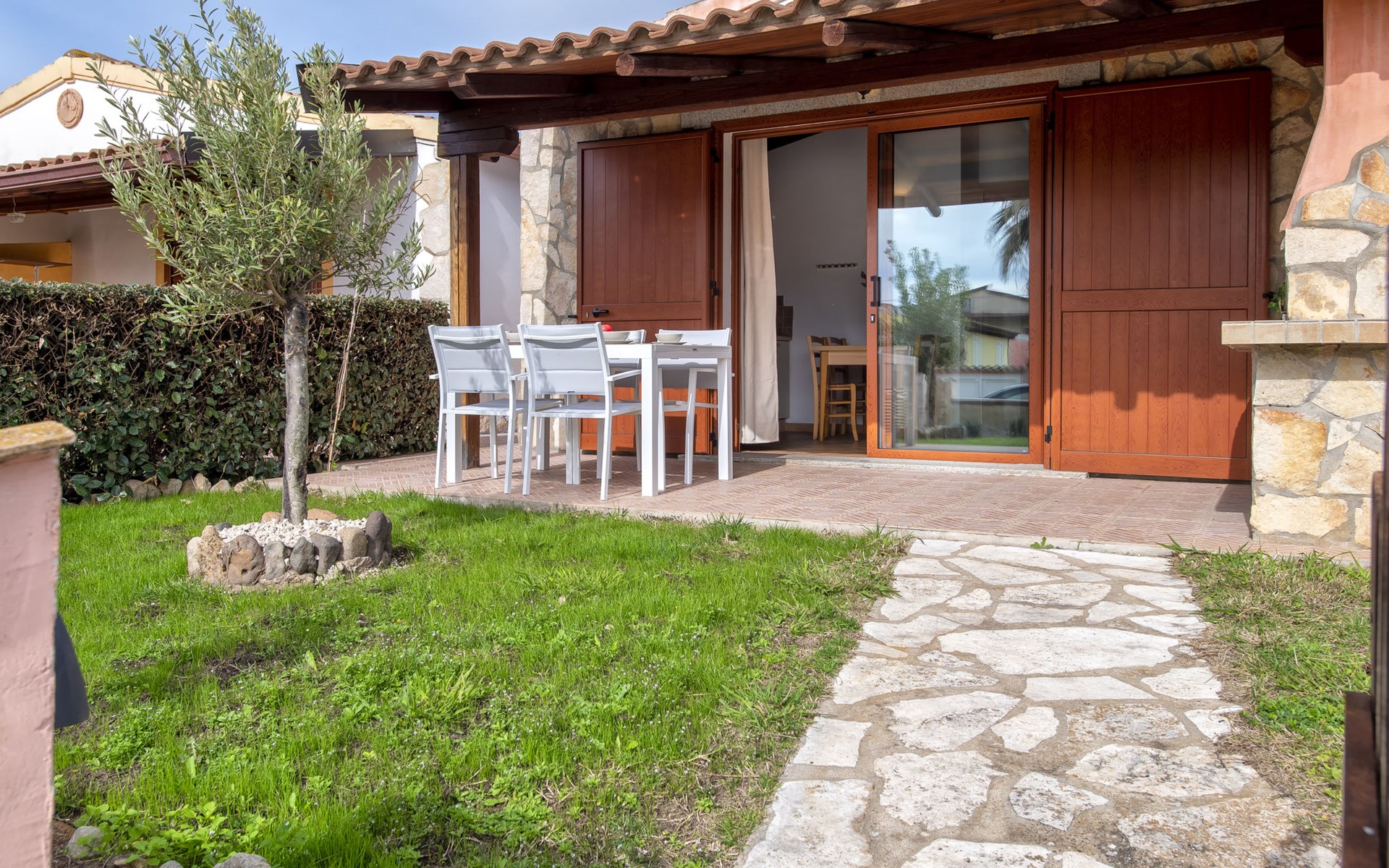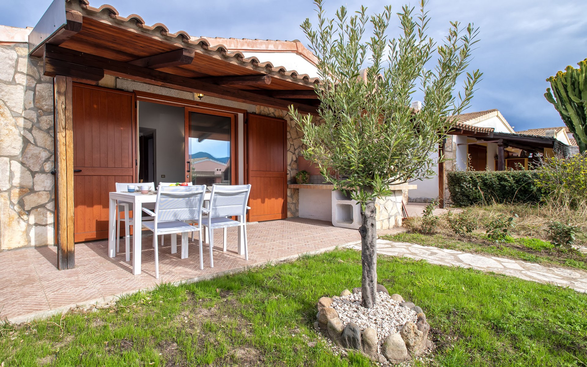 Cosy terraced house. 17 apartments in the property. In the resort Viddalba, in the residential district, 8.5 km from the beach. For shared use: swimming pool fenced (10 x 5 m, depth 100 - 200 cm, seasonal availability: 15.Jun. - 15.Sep. pool opening hours: 09:00-13:00 and 16:00-20:00). Outdoor shower, public parking on the road. Grocery 1.2 km, restaurant 550 m, bar 250 m, bus stop 9 km, sandy beach "Baia delle Mimose" 8.5 km. Nearby attractions: Olbia 75 km, Sassari 55 km, Castelsardo 24 km, Costa Paradiso 29 km, Porto Torres 54 km. Please note: car recommended. Neighbourhood highly sensitive to noise. Quietness and good behaviour expected.