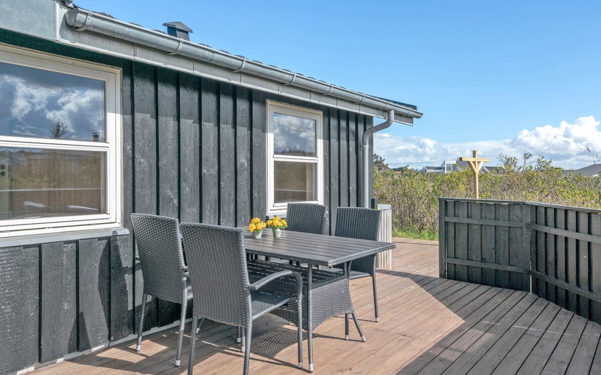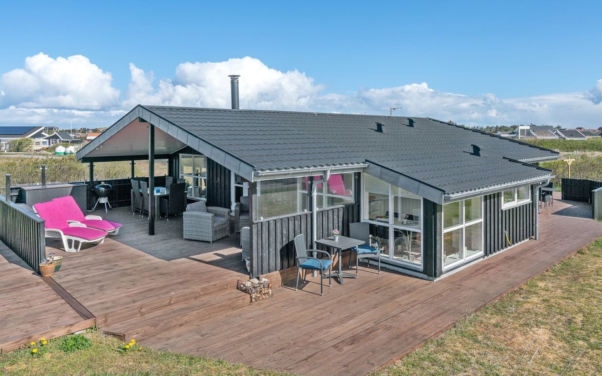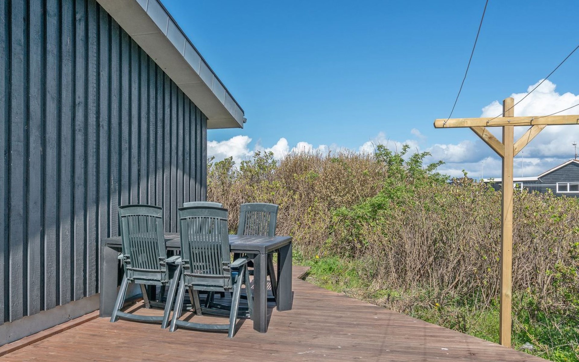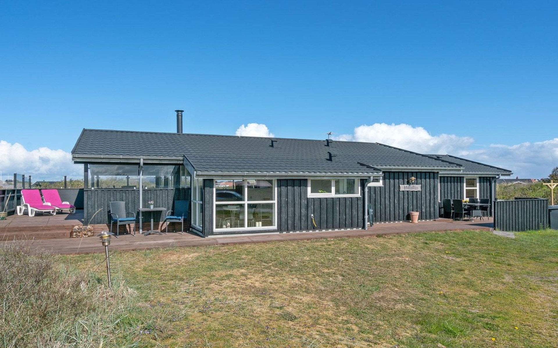 Single-family house, built in 1990. 400 m from the sea. Private: natural state property 1'935 m2. Outdoor shower, terrace (60 m2), children's playground (swing). In the house: washing machine. Grocery 600 m. The owner does not accept any youth groups.