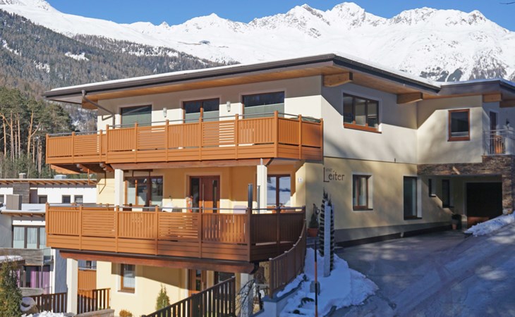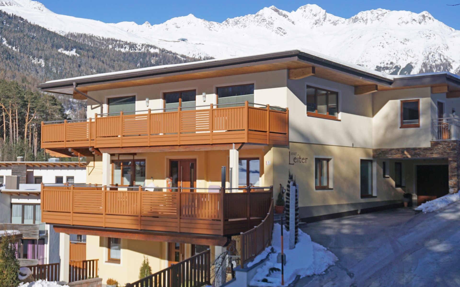 1 km from der Gaislachkogelbahn: Cosy, comfortable apartment block "Leiter", 4 storeys. 2 km from the centre, in a sunny position on a slope, 1 km from the skiing area. For shared use: patio, garden furniture. In the house: sauna (extra). Fitness room, storage room for bicycles, storage room for skis, central heating system, ski boot dryer. Bread roll service. Motor access to the house. Parking at the house. Shop 2 km, grocery 2 km, restaurant 1 km, bar 1 km, bus stop 20 m, indoor swimming pool 3 km, thermal baths 21 km. Golf course (18 hole) 40 km, tennis 3 km, cable car 1 km, gondola lift 1 km, ski bus stop 20 m, ski school 1 km, sled run 1 km, cross country ski track 1 km. Nearby attractions: Outdoor Park 'Area 47' in 39 km. Please note: ski bus (free of charge). The owner lives in the same residence. Additional accommodations can be booked. The house has a sauna area with massage and waterfall shower and a relaxation area. Weekly use of the sauna in winter is included in the price. Children’s bed and high chair must be specified on the reservation. The ski bus is available from December!