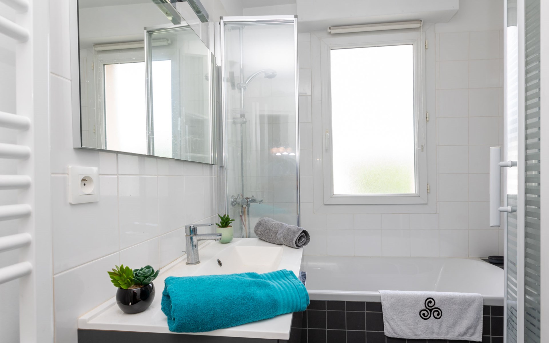 Apartment house "La Ville Allis", 5 storeys. In the district of La Découverte, in the residential district, 3 km from the sea, 3 km from the beach. For shared use: well-kept garden (not fenced) trees. In the complex: lift. Public parking. Supermarket 450 m, shopping centre 2 km, bakery 450 m, bus stop 150 m, railway station "Gare SNCF de Saint Malo" 2 km, ferry "gare maritime du Naye" 3 km, sandy beach "des Bas-sablons" 2 km, park "de la Briantais" 3 km, thermal baths "Thermes marins de Saint Malo" 4 km. Sports harbour 3 km, sailing school 3 km, indoor tennis centre 2 km. Nearby attractions: Intra-muros 3 km, le Grand Aquarium 2.7 km, Dinard 7 km, Cancale 14 km, Dinan 31 km, Le Mont Saint-Michel 42 km. The keys‘ handover takes place by the agency Interhome in Saint Malo, 2 km.