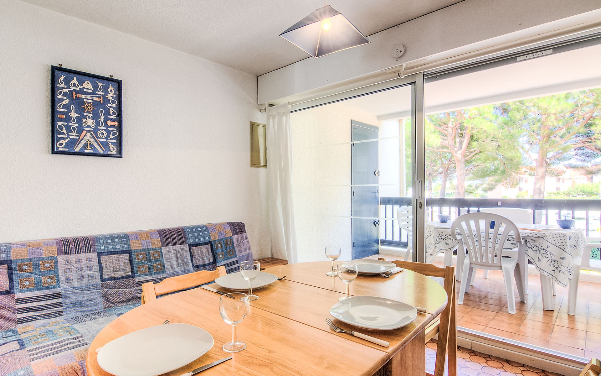 Residence "Port d'Attache", 2 storeys. 1.5 km from the sea, 1.5 km from the beach, direct access to the lagoon. Shop, grocery 500 m, supermarket 1.8 km, restaurant 500 m, bus stop 400 m, railway station "Elne" 7 km, sandy beach "Plage Sud" 1.5 km. Sports harbour 2 km, golf course (27 hole) 5.5 km, sailing school 2 km, minigolf 4.2 km, riding stable 2 km, sports centre 700 m. Nearby attractions: Aqualand 1.6 km.